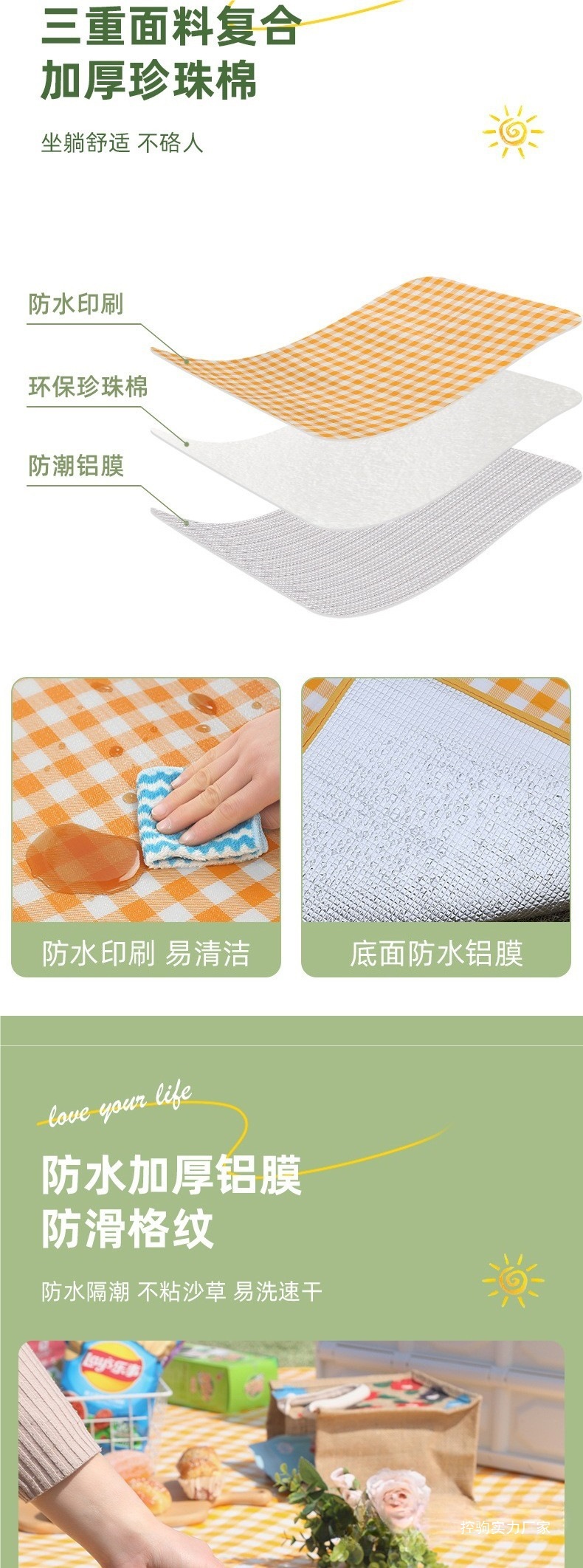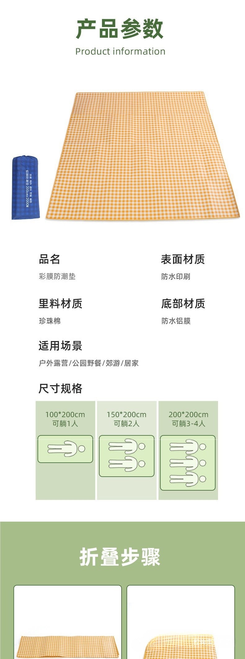 피크닉 매트 두꺼운 야외 캠핑 휴대용 텐트 바닥 매트 봄 나들이 쿠션 방수 매트 알루미늄 필름 방습 매트