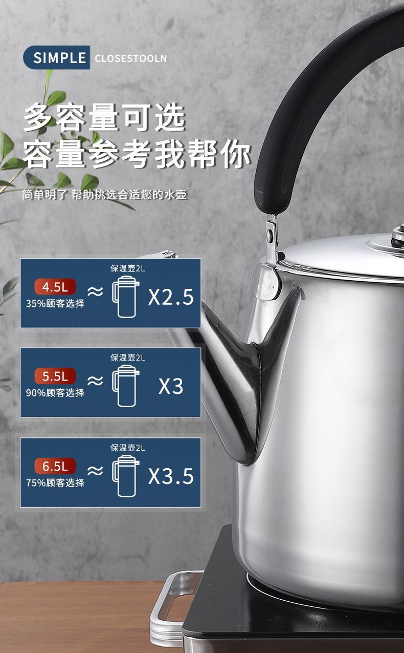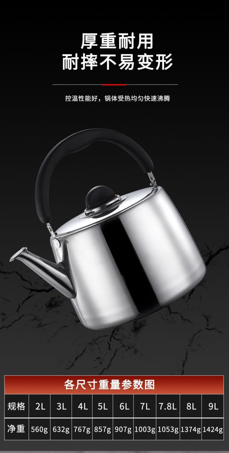 두꺼운 주전자 스테인레스 스틸 울리는 주전자 가스 가스 인덕션 쿠커 범용 가정용 대용량 주전자