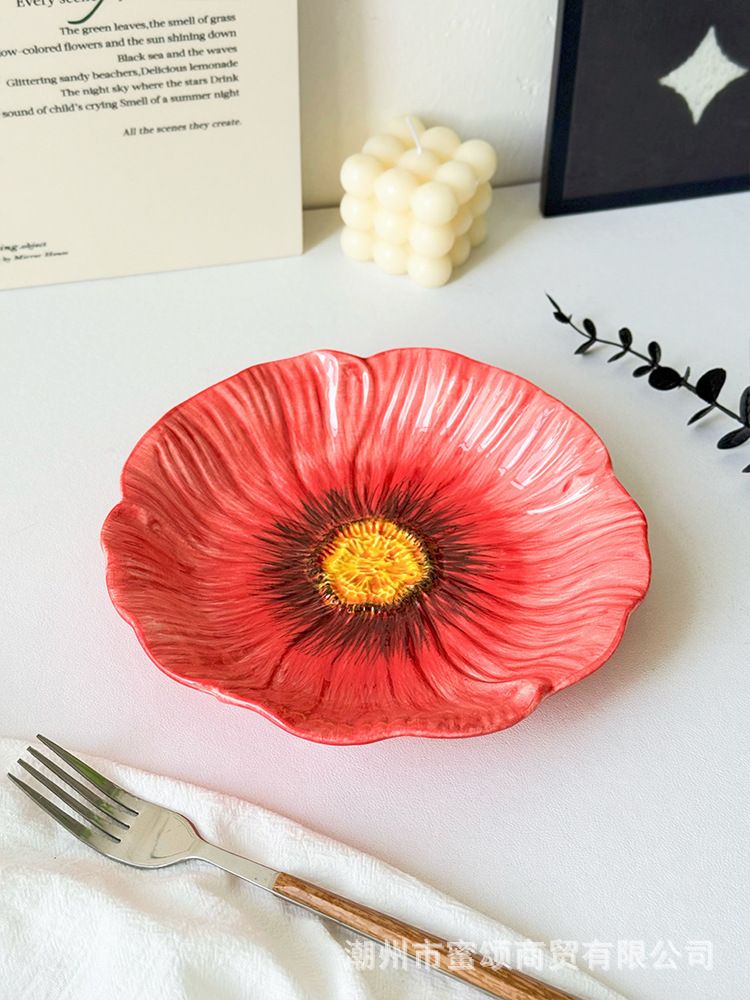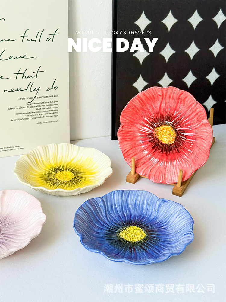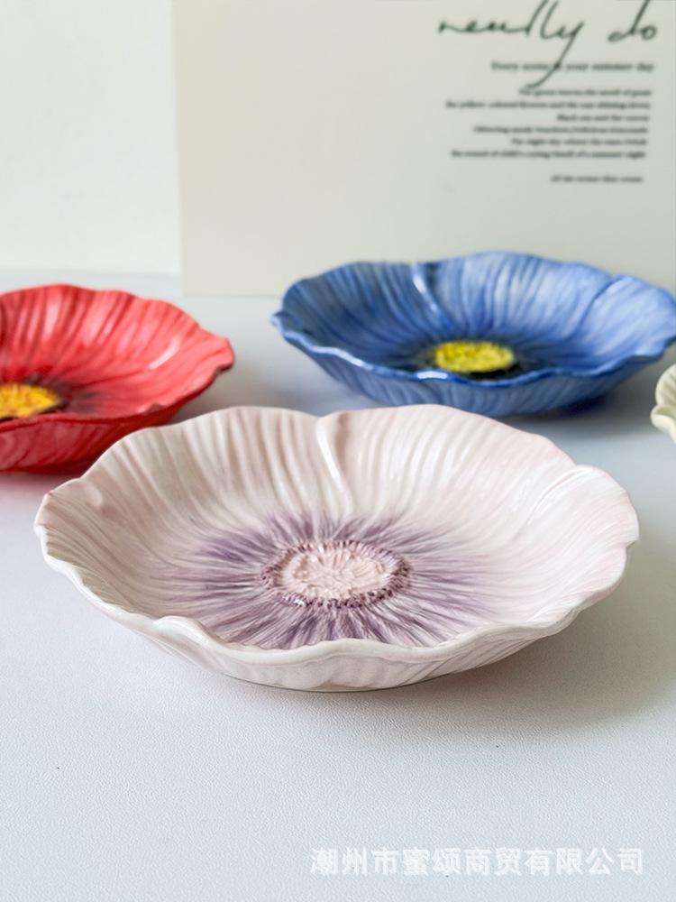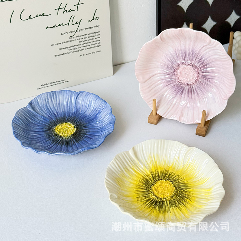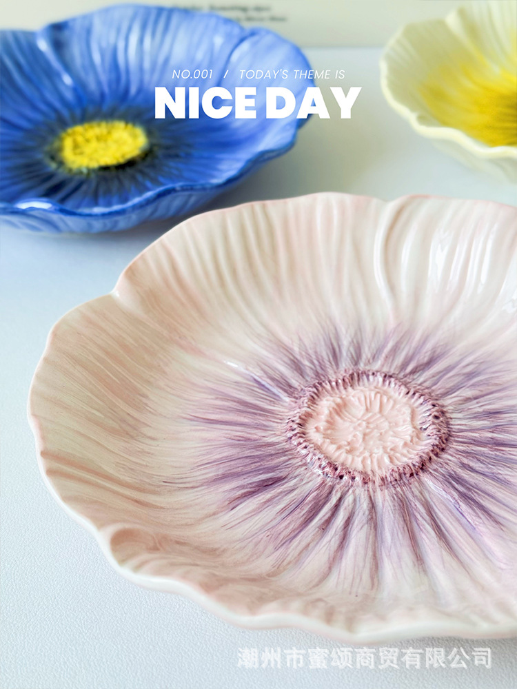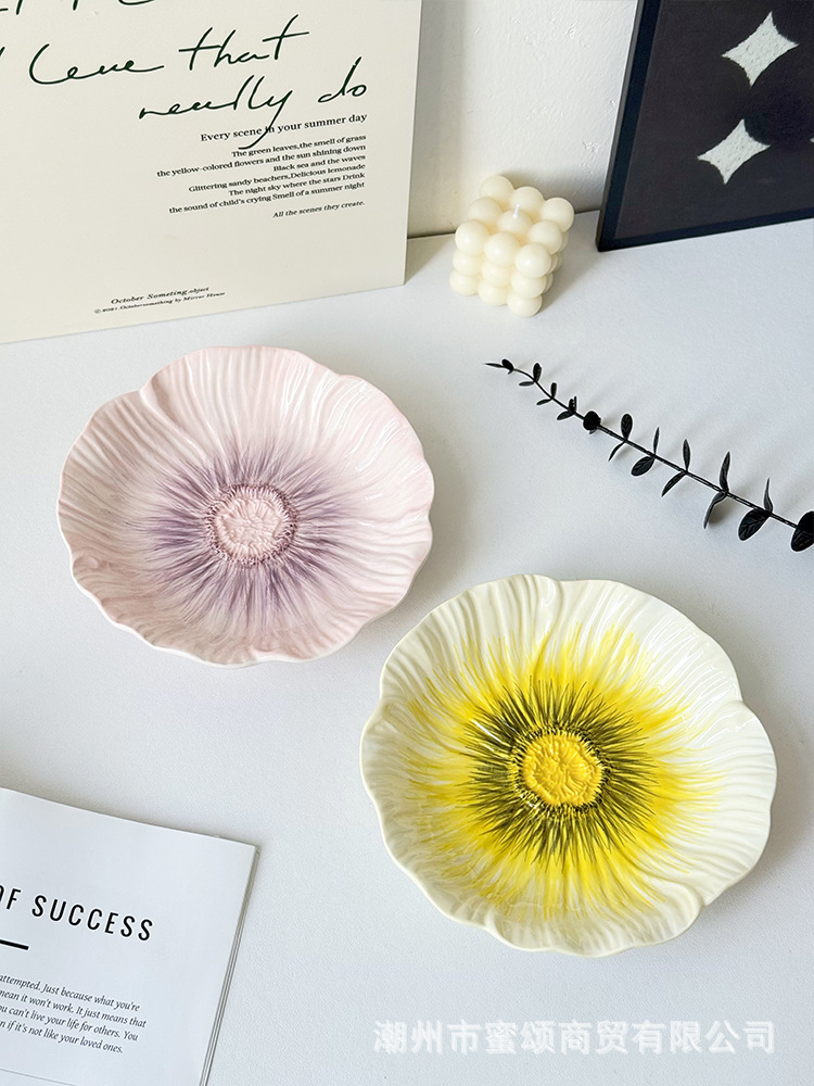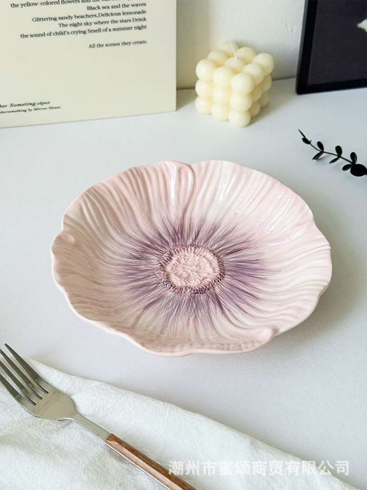 아름다운 접시 세라믹 유약 색상 아름다운 접시 가정용 2025 새로운 디너 접시 크리 에이 티브 식기 스타일 접시