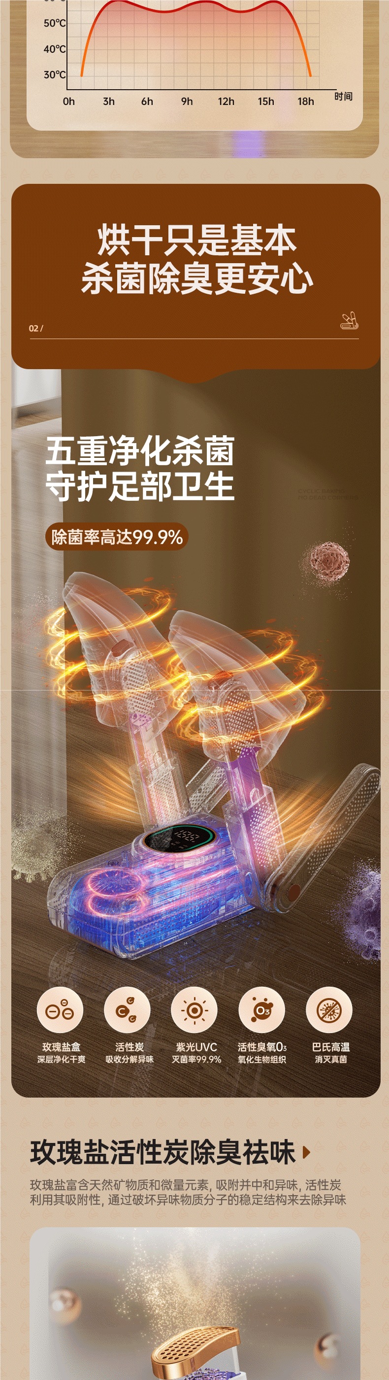 오존살균모델 [오존심층살균 + 1회에 2쌍 건조 + 5중 살균 및 탈취 + 터치 디지털 디스플레이 + 지능형 항온 + 자광조사 항균 + 장미소금/활성탄