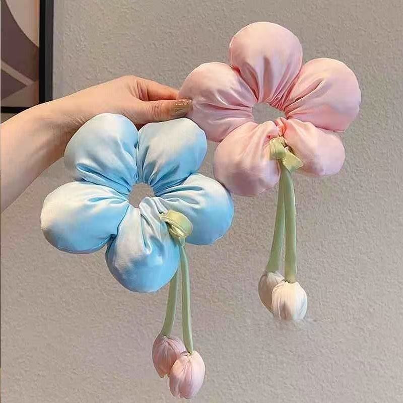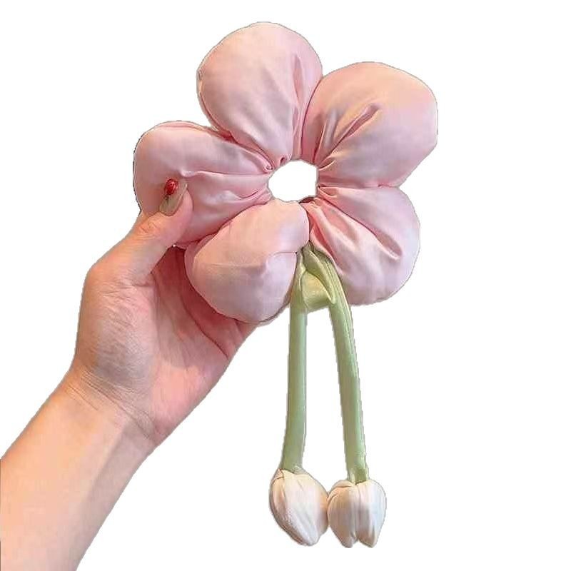 2025년 신형 튤립꽃 머리끈, 뒷머리용 볼헤어 액세서리, 고탄력, 머리끈 손상 없음