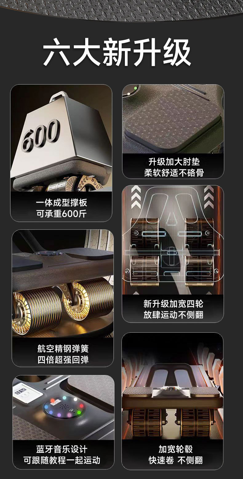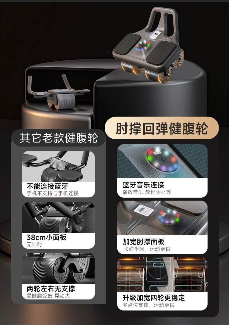 스마트 블루투스 4륜 복근 휠, 자동 리바운드 팔꿈치 지지형 복근 운동 도구, 6개의 팔꿈치 지지형 복근 휠 운동