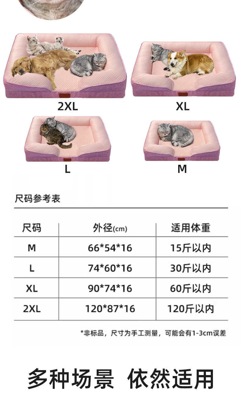 중대형견을 위한 크로스보더 아마존 탈부착 및 세탁 가능한 애완동물 둥지, 두꺼운 고양이 매트, 개 침대, 여름 시원한 고양이 소파