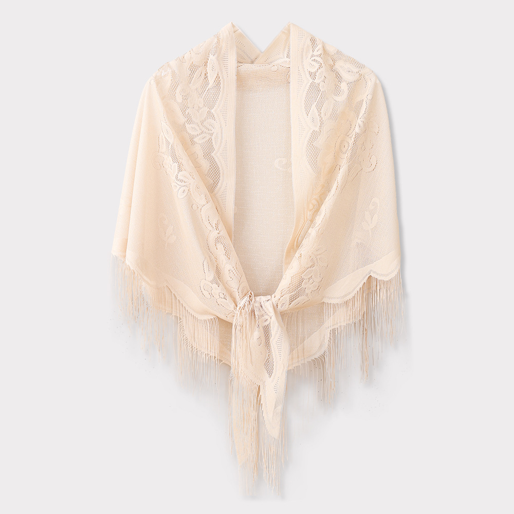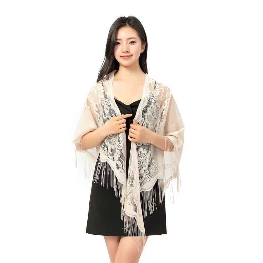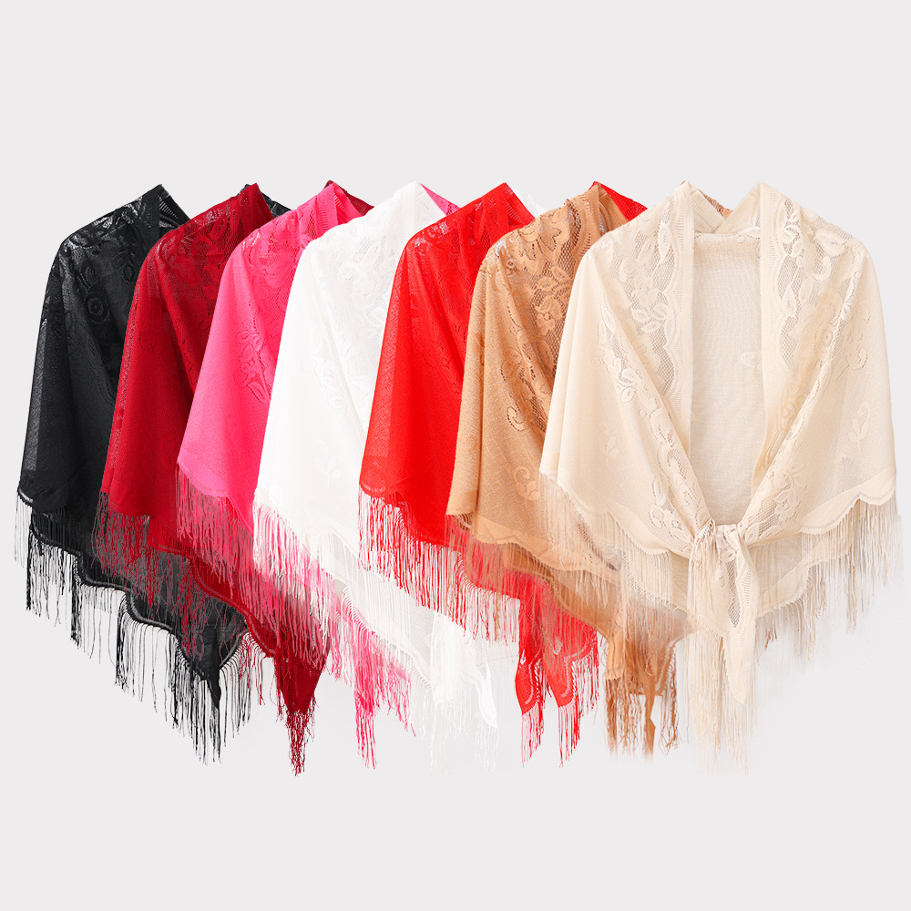 2025 새로운 여름 레이스 목도리 중공 삼각형 스카프 유럽과 미국의 복고풍 술 스카프 여성 드레스 사진 목도리