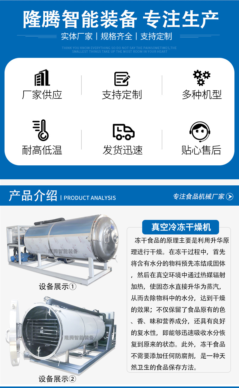 농산물 저온 진공 동결 건조기, 캐스터드 채소 탈수 동결 건조 장비, 진공 동결 건조기