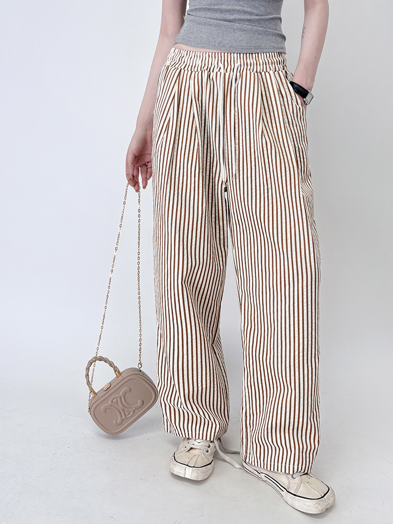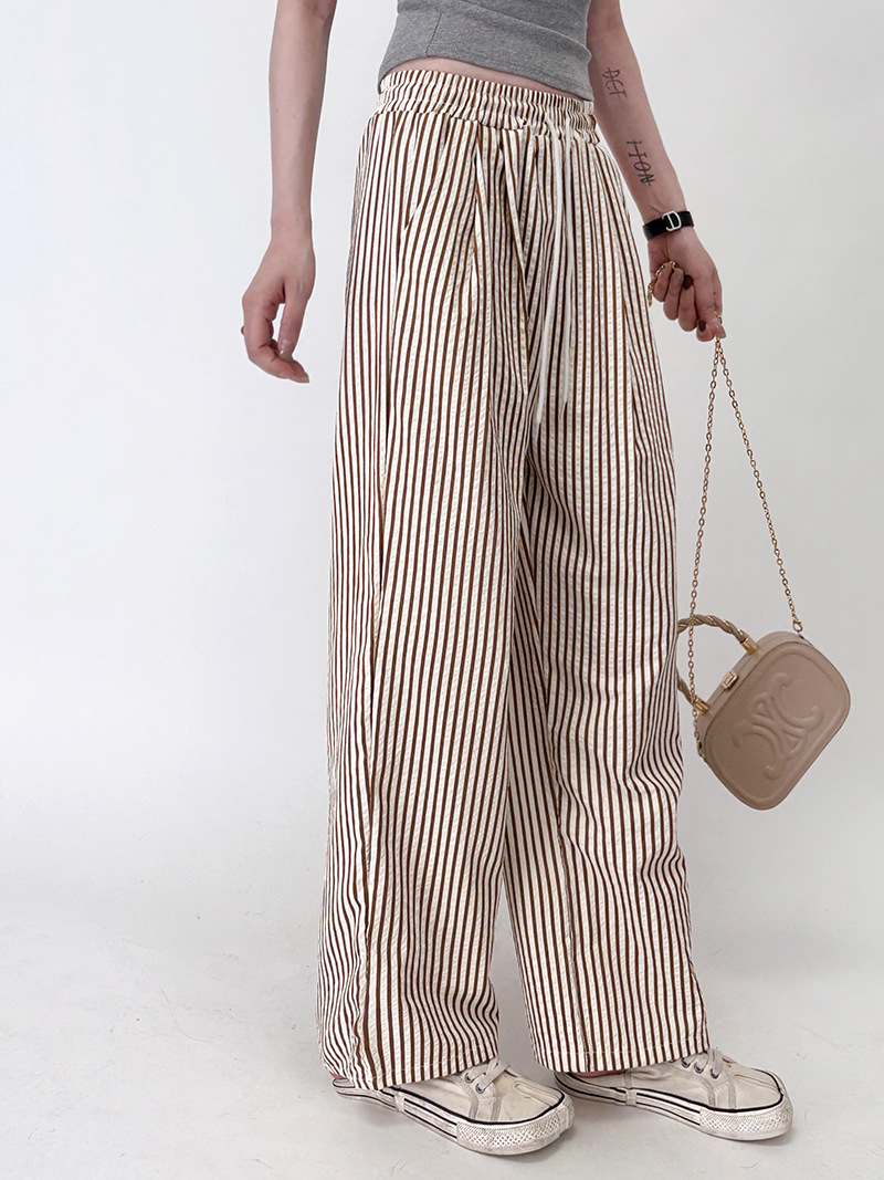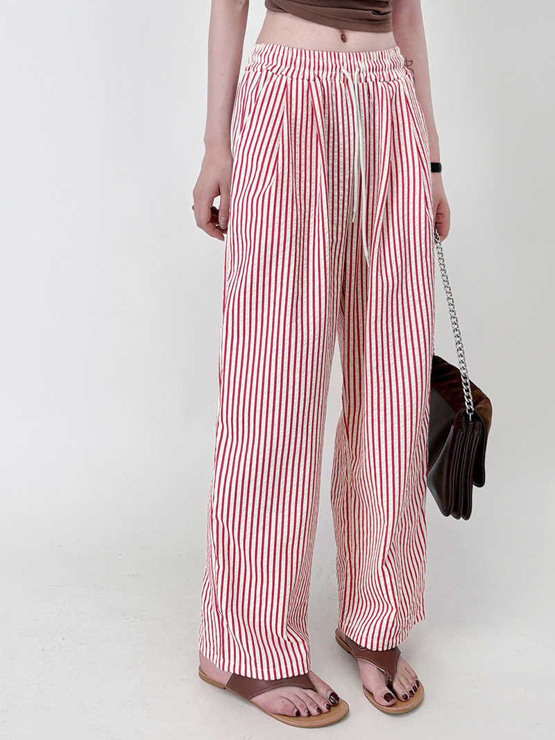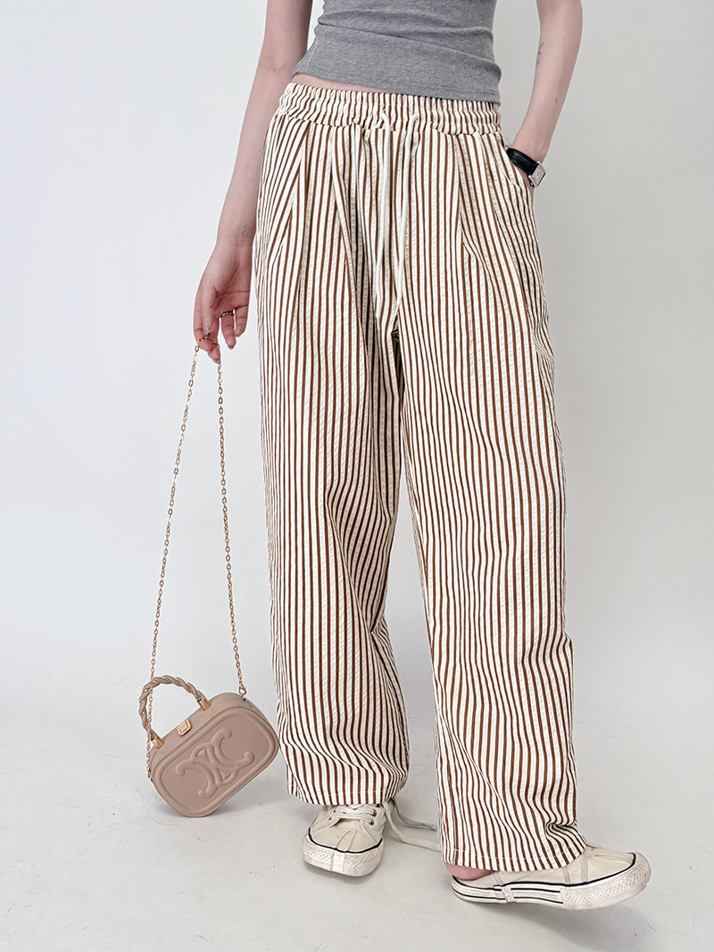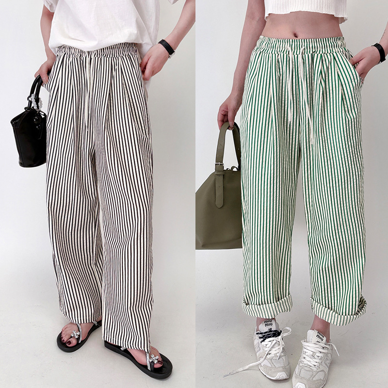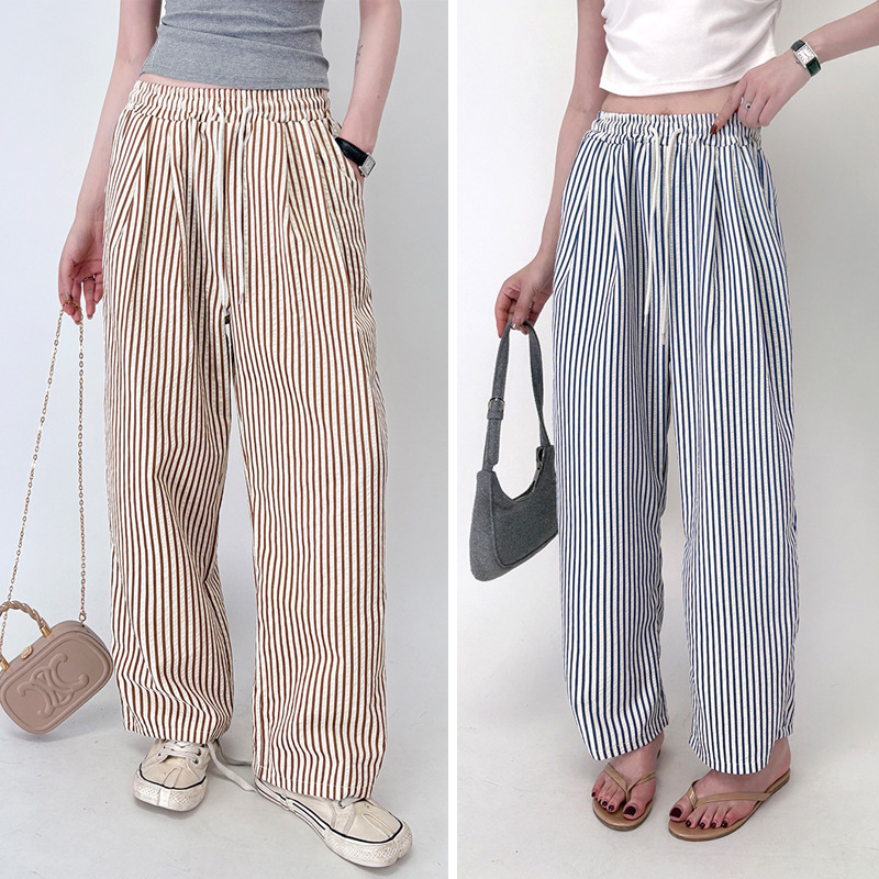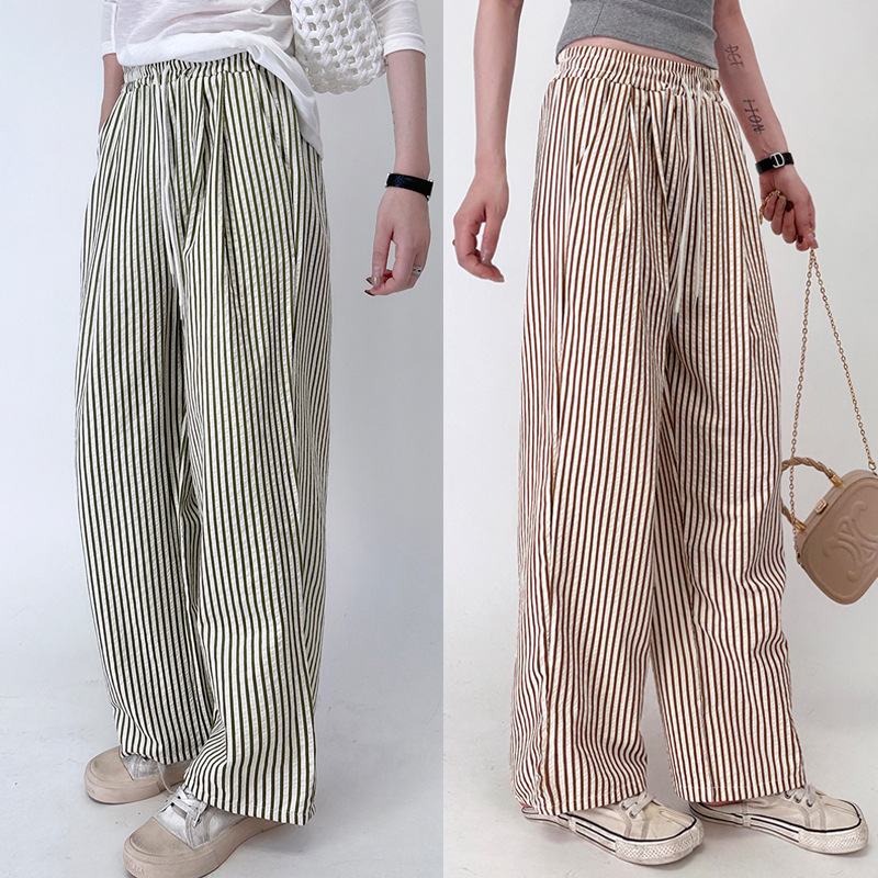여성용 세로 스트라이프 와이드 팬츠, 여름 얇은 팬츠, 패셔너블한 하이웨이스트 루즈 슬리밍 캐주얼 팬츠, 패셔너블한 스트레이트 팬츠