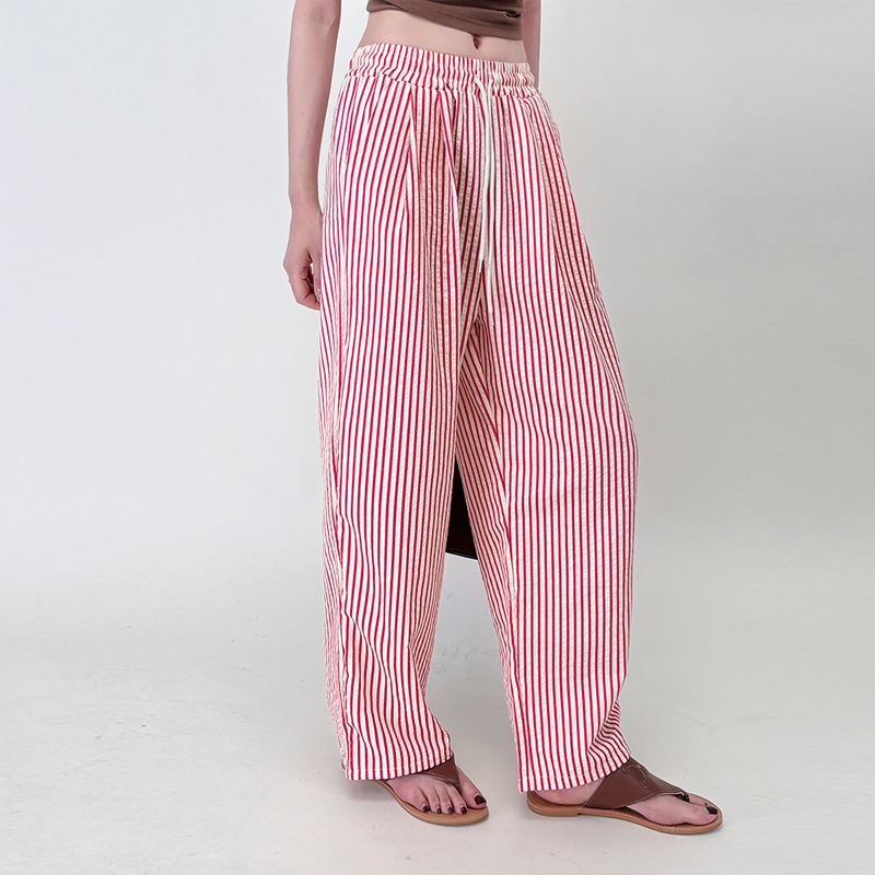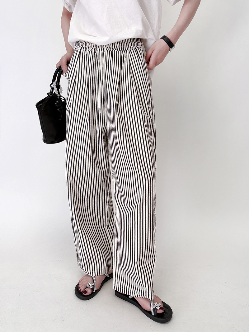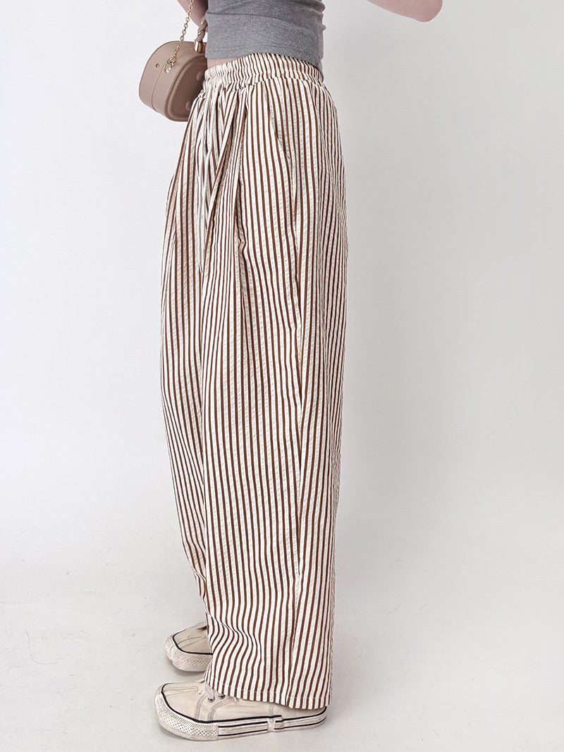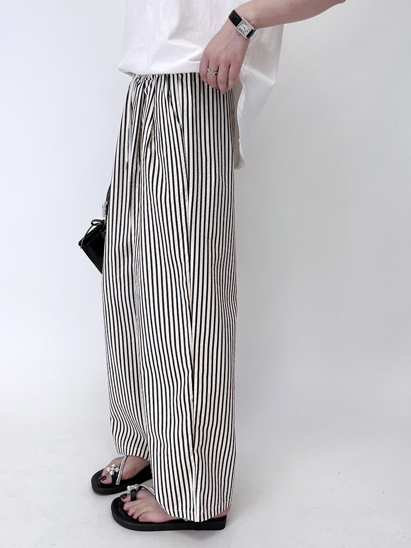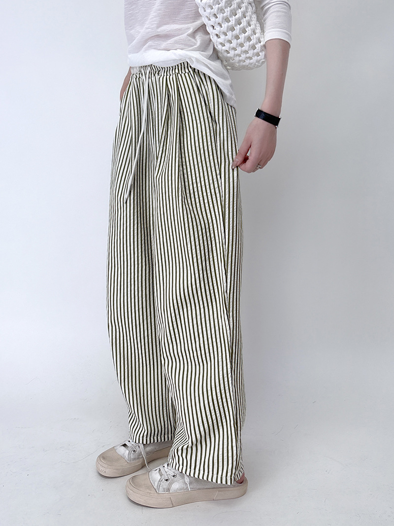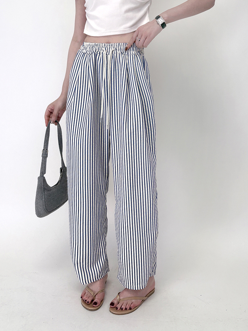 여성용 세로 스트라이프 와이드 팬츠, 여름 얇은 팬츠, 패셔너블한 하이웨이스트 루즈 슬리밍 캐주얼 팬츠, 패셔너블한 스트레이트 팬츠
