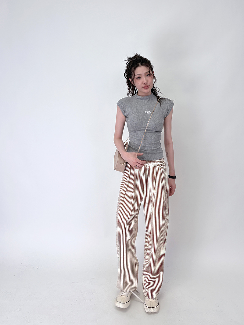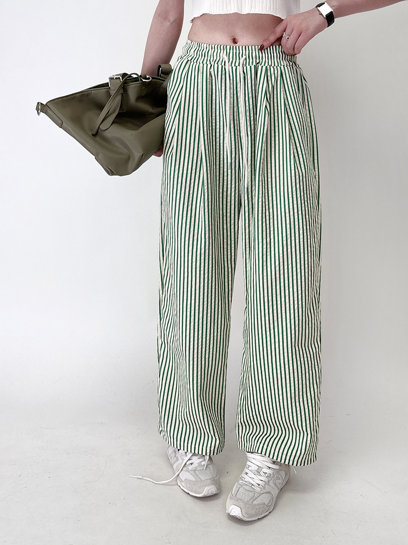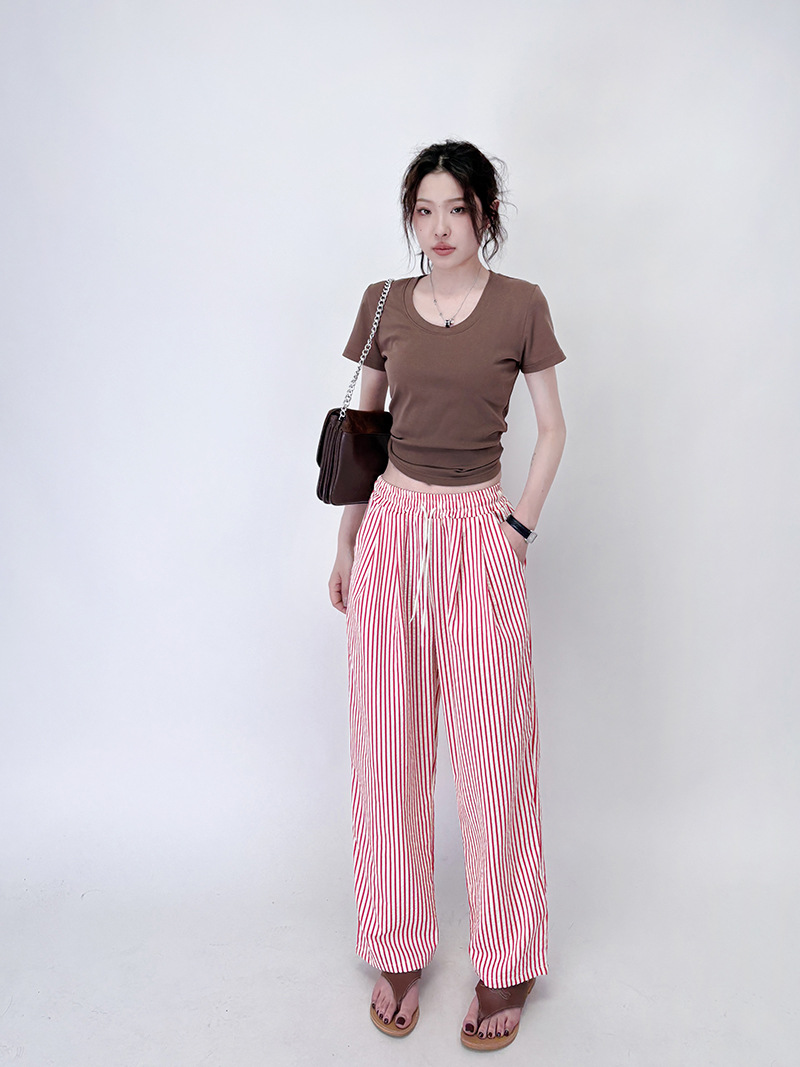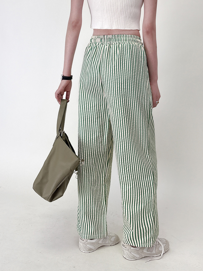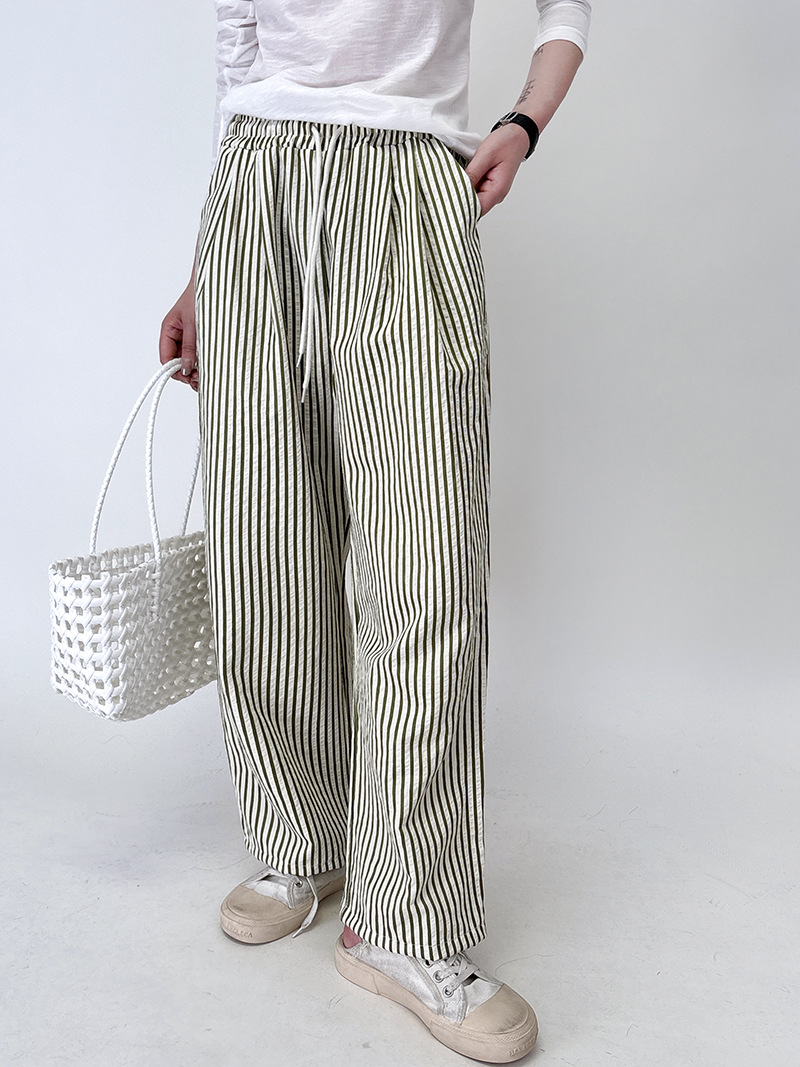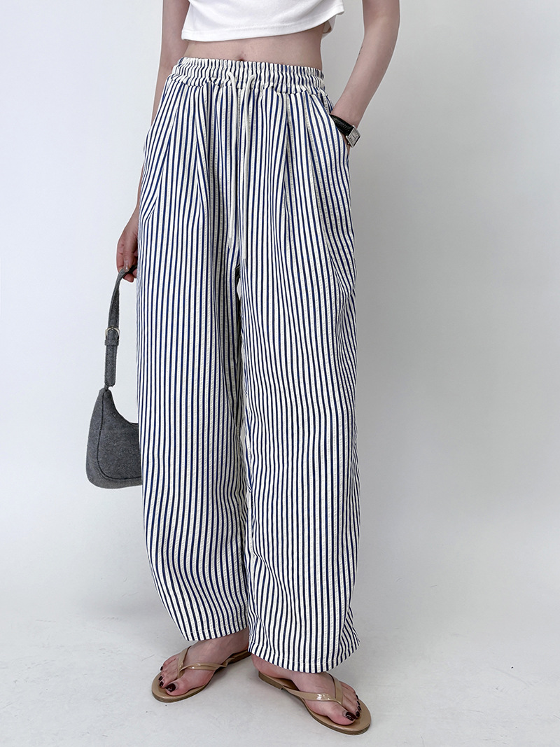 여성용 세로 스트라이프 와이드 팬츠, 여름 얇은 팬츠, 패셔너블한 하이웨이스트 루즈 슬리밍 캐주얼 팬츠, 패셔너블한 스트레이트 팬츠