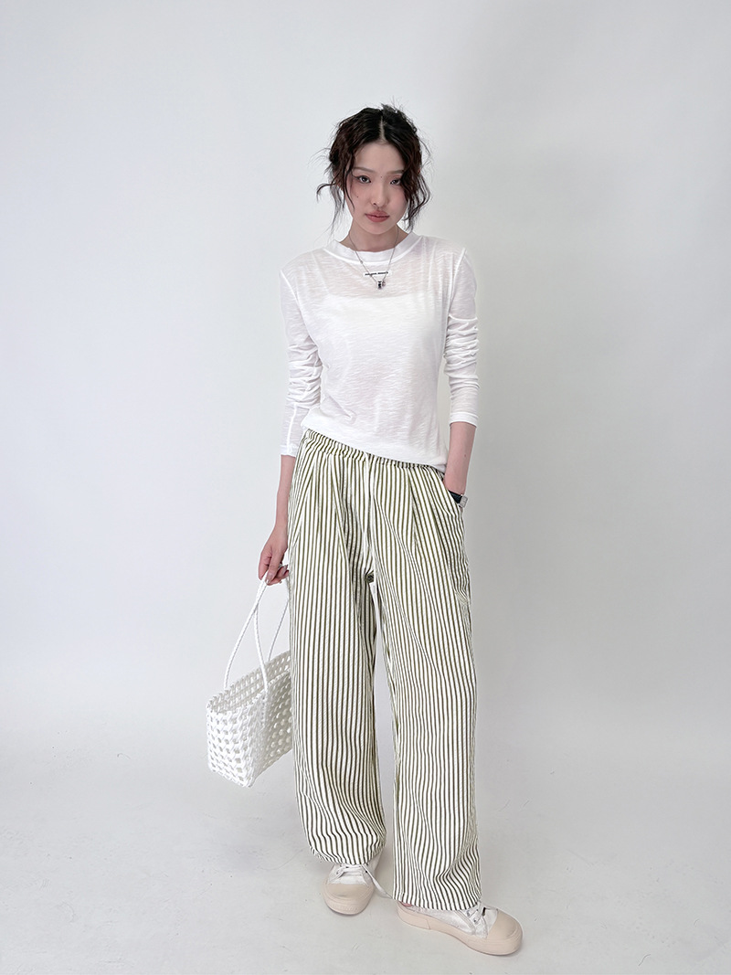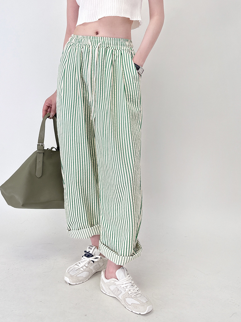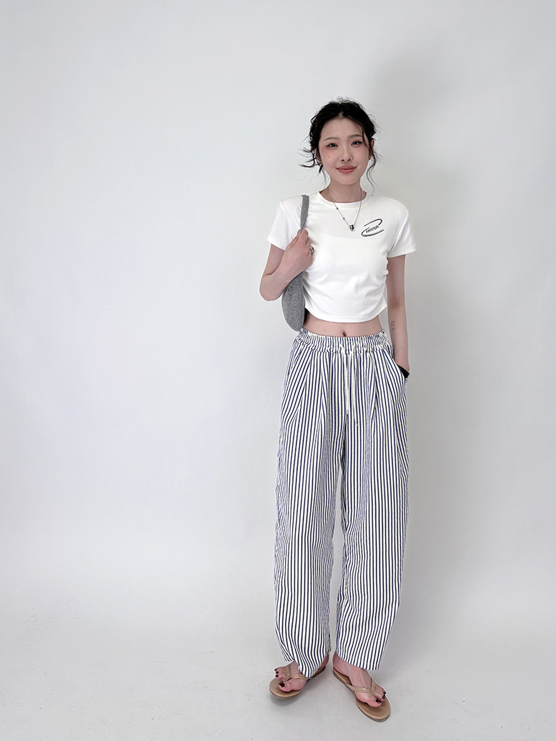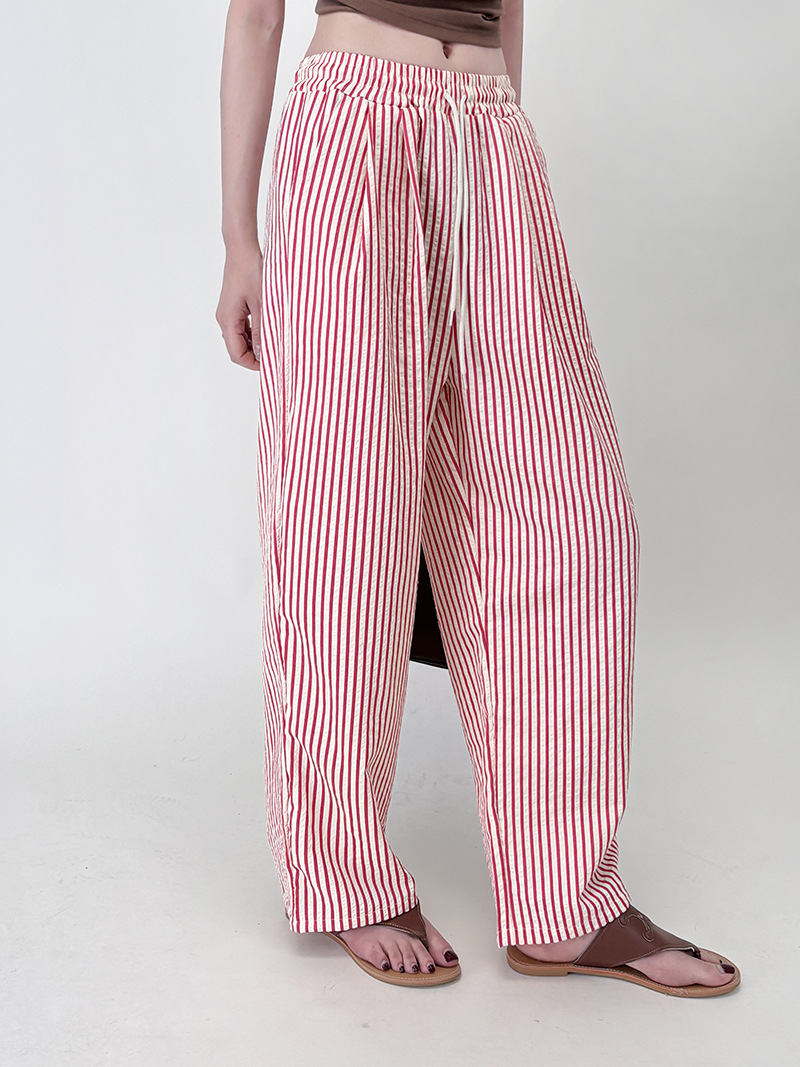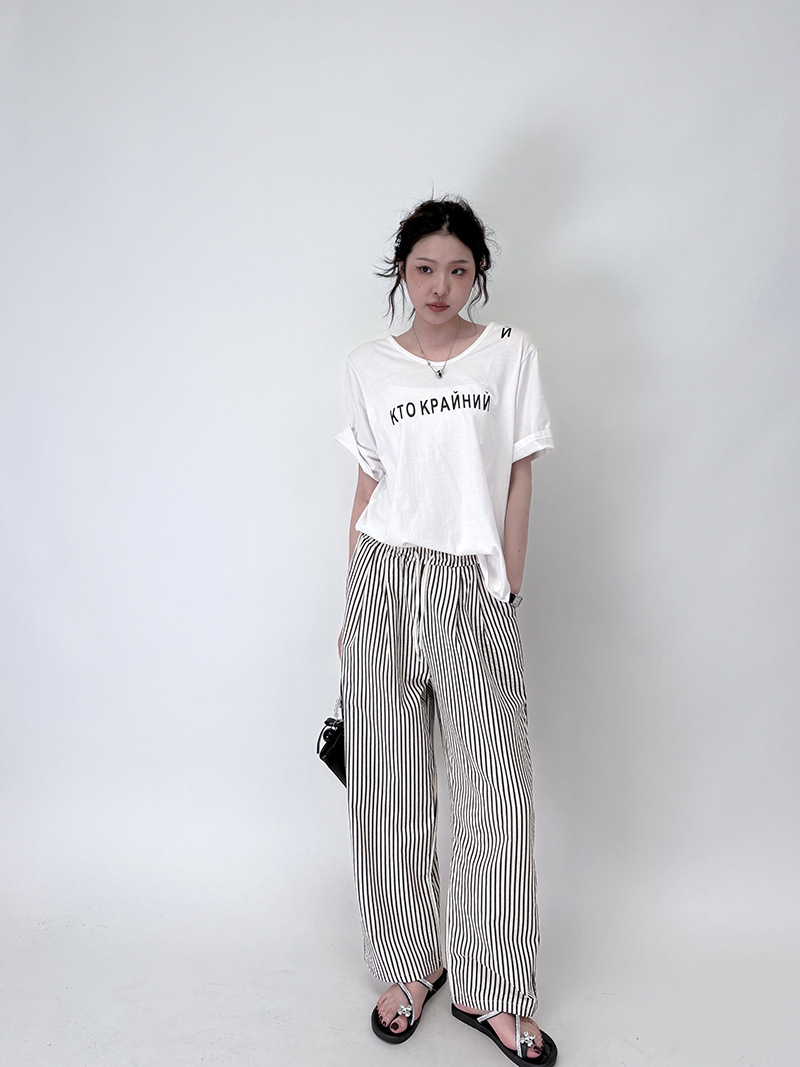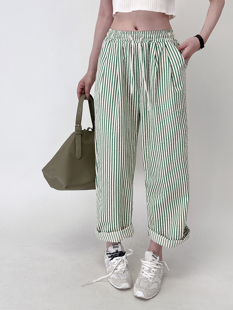여성용 세로 스트라이프 와이드 팬츠, 여름 얇은 팬츠, 패셔너블한 하이웨이스트 루즈 슬리밍 캐주얼 팬츠, 패셔너블한 스트레이트 팬츠