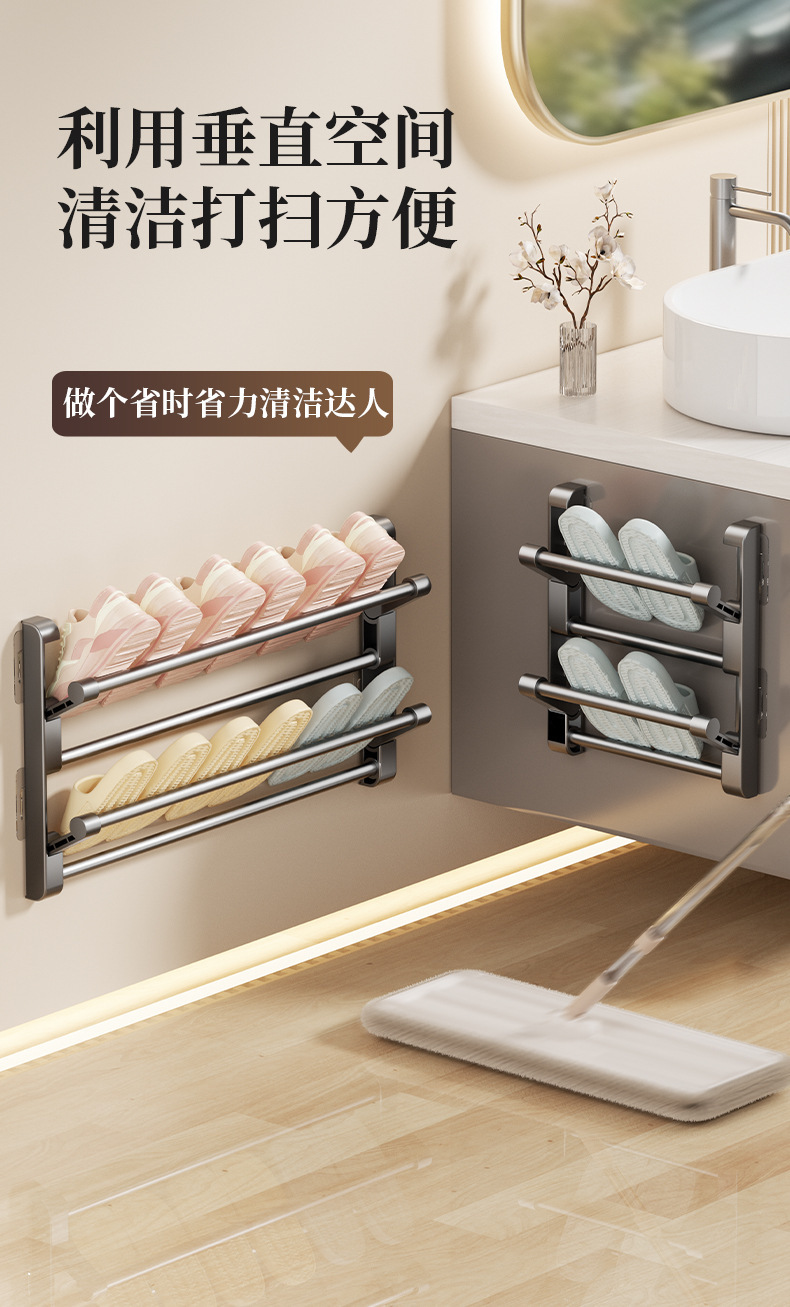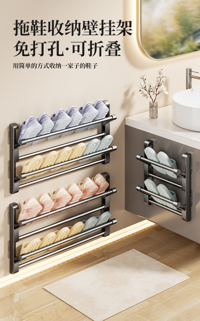 욕실 슬리퍼 랙 벽걸이 형 펀치없는 욕실 문 뒤에 신발 랙 배수 다기능 접이식 신발 보관 랙