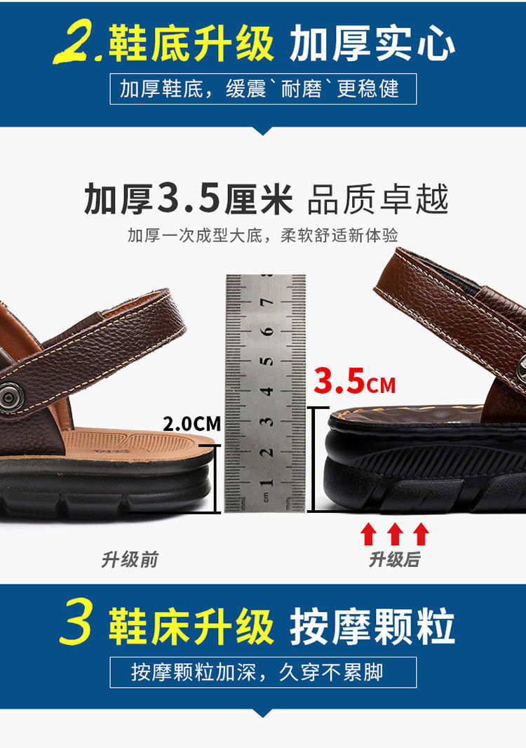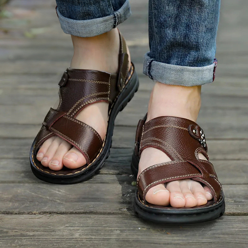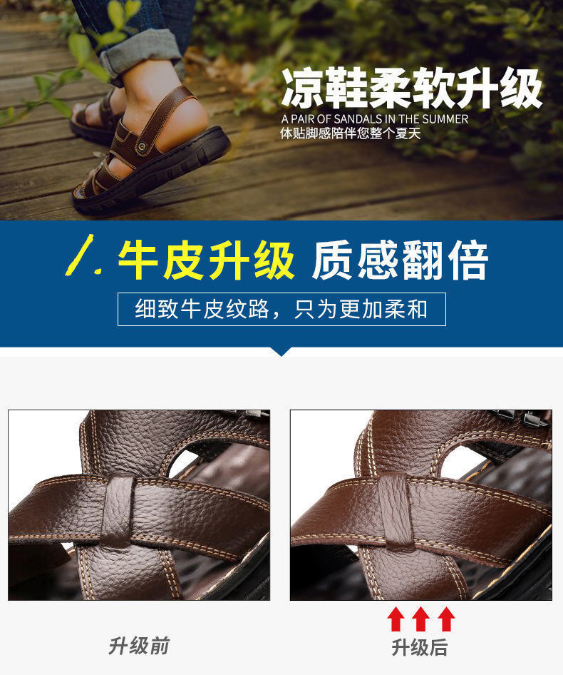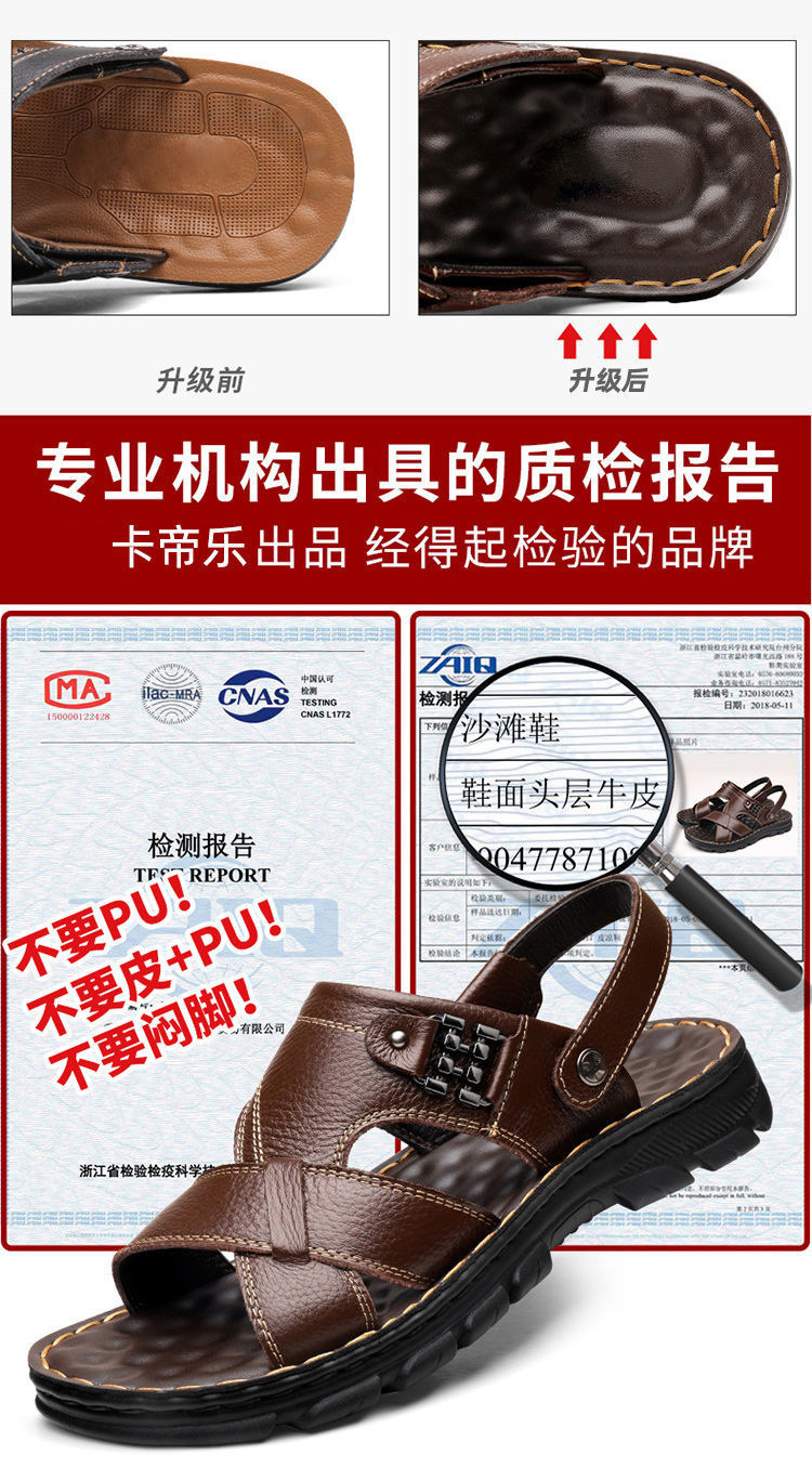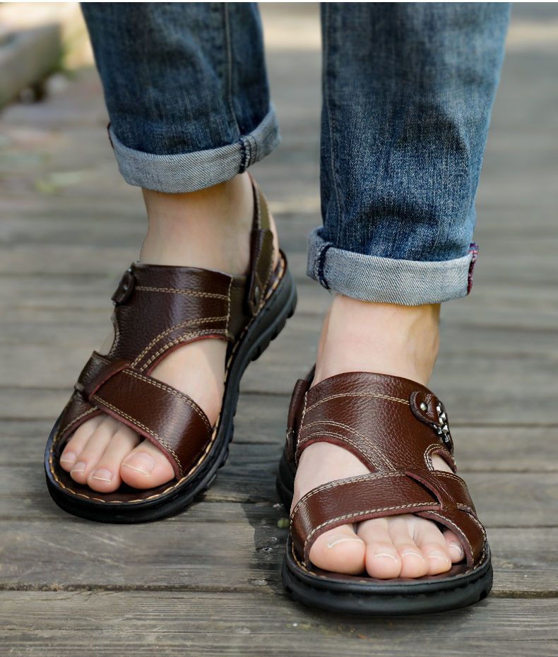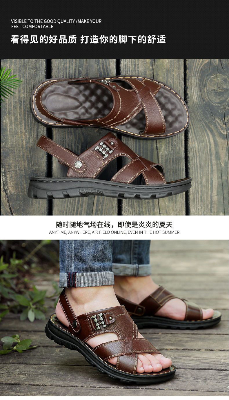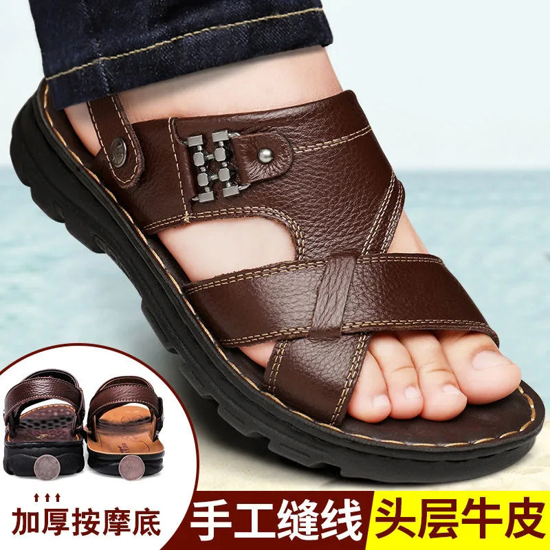 남성용 가죽 샌들 남성용 여름 미끄럼 방지 비치 신발 새로운 남성용 토 레이어 소가죽 슬리퍼