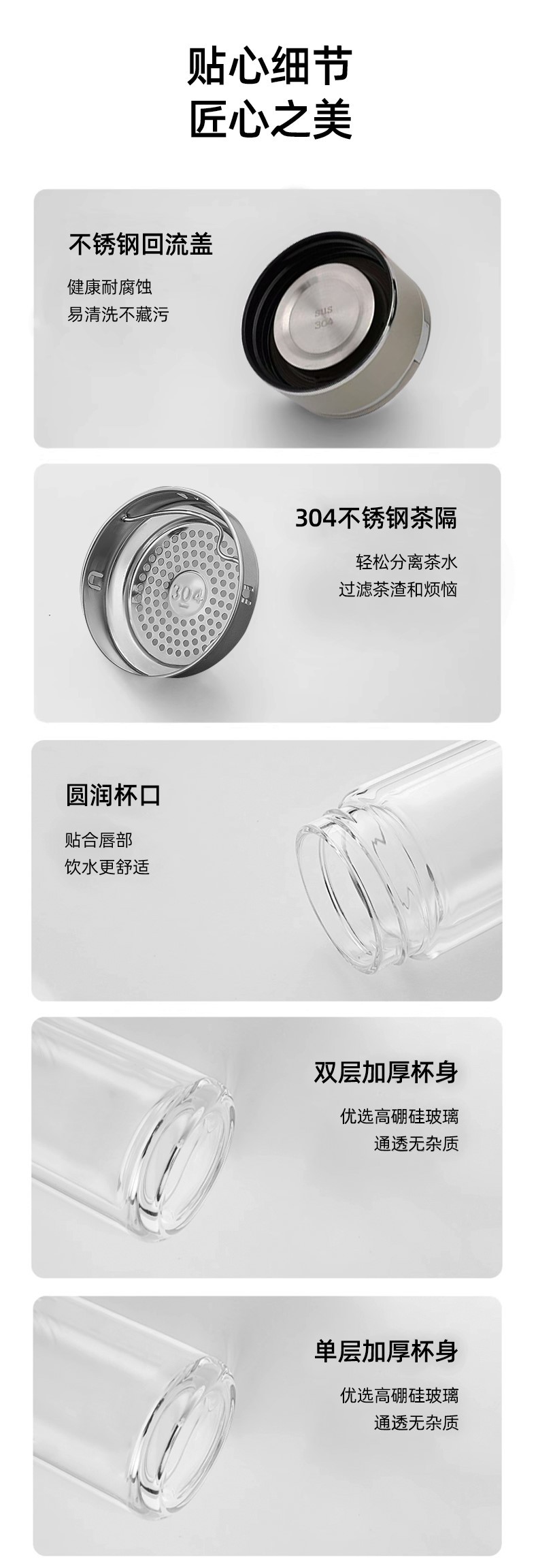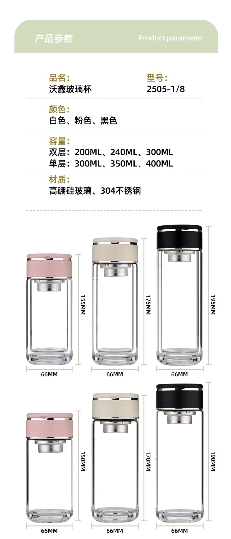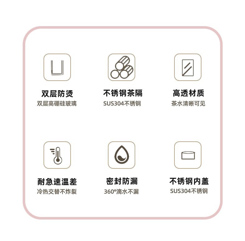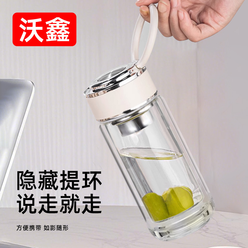 고붕규산 이중벽 유리컵, 손잡이가 있는 물컵, 차와 물 분리형, 단열 차컵, 맞춤형 로고