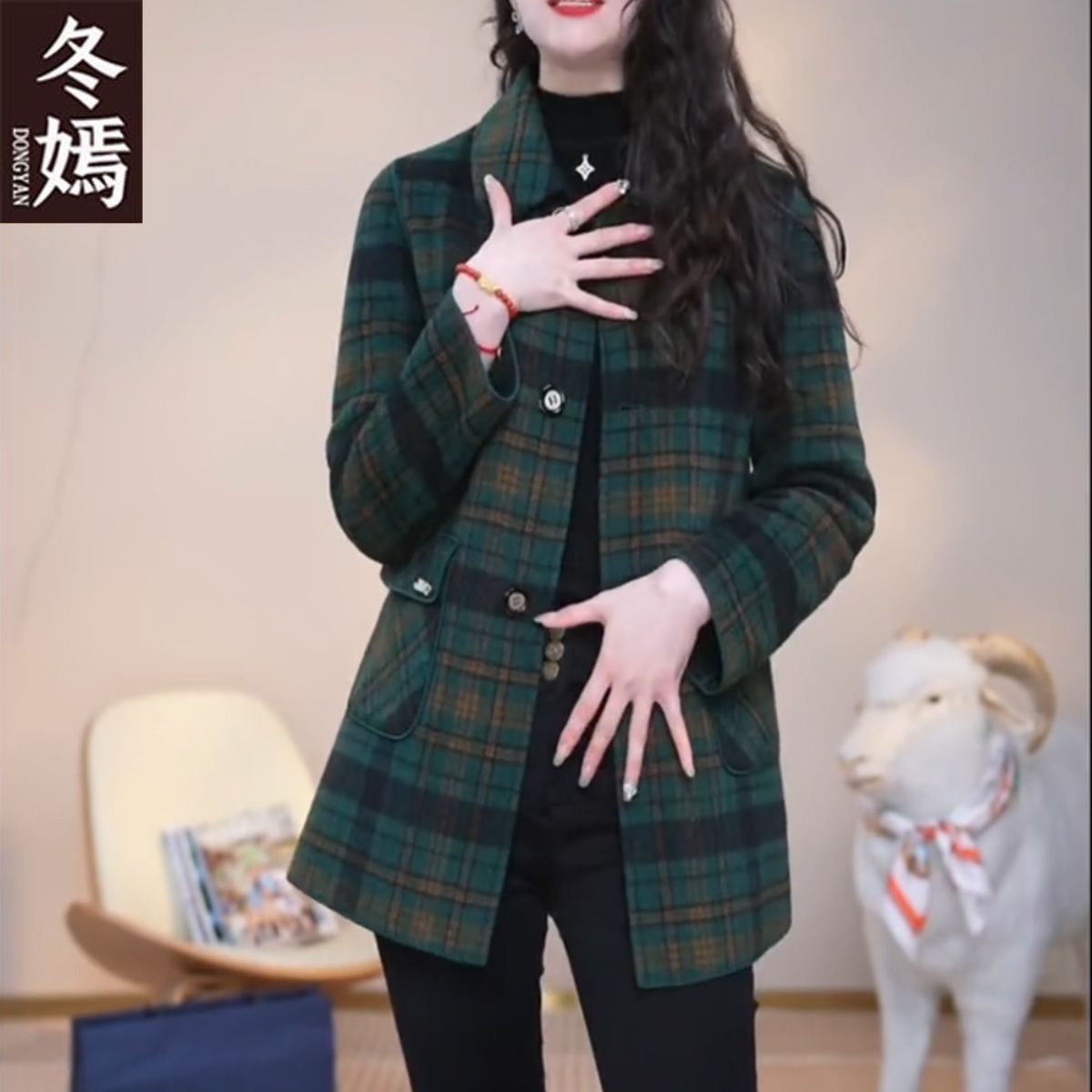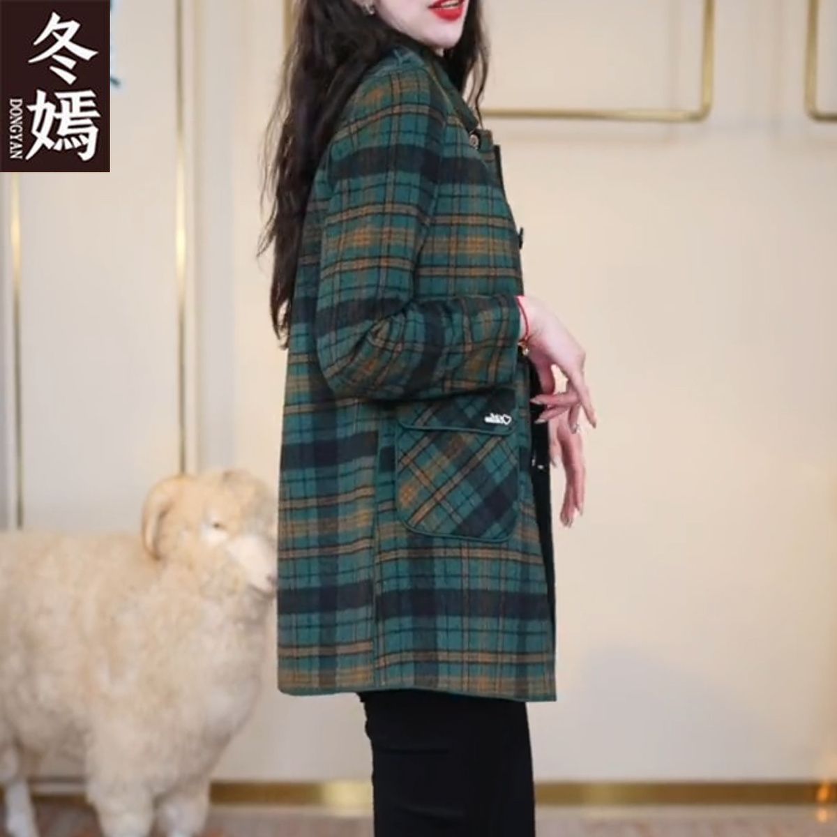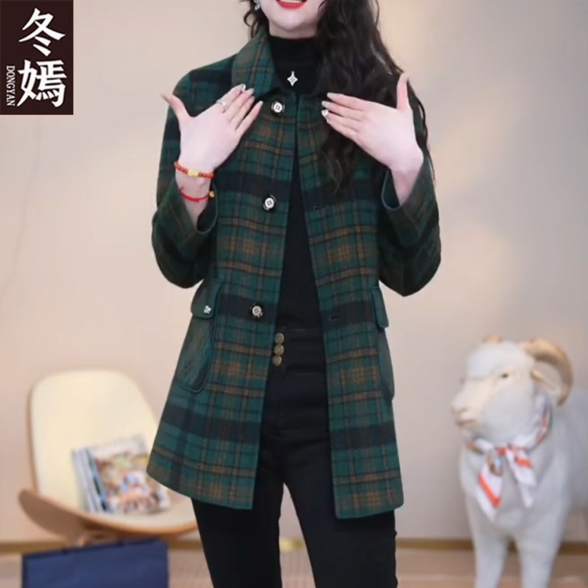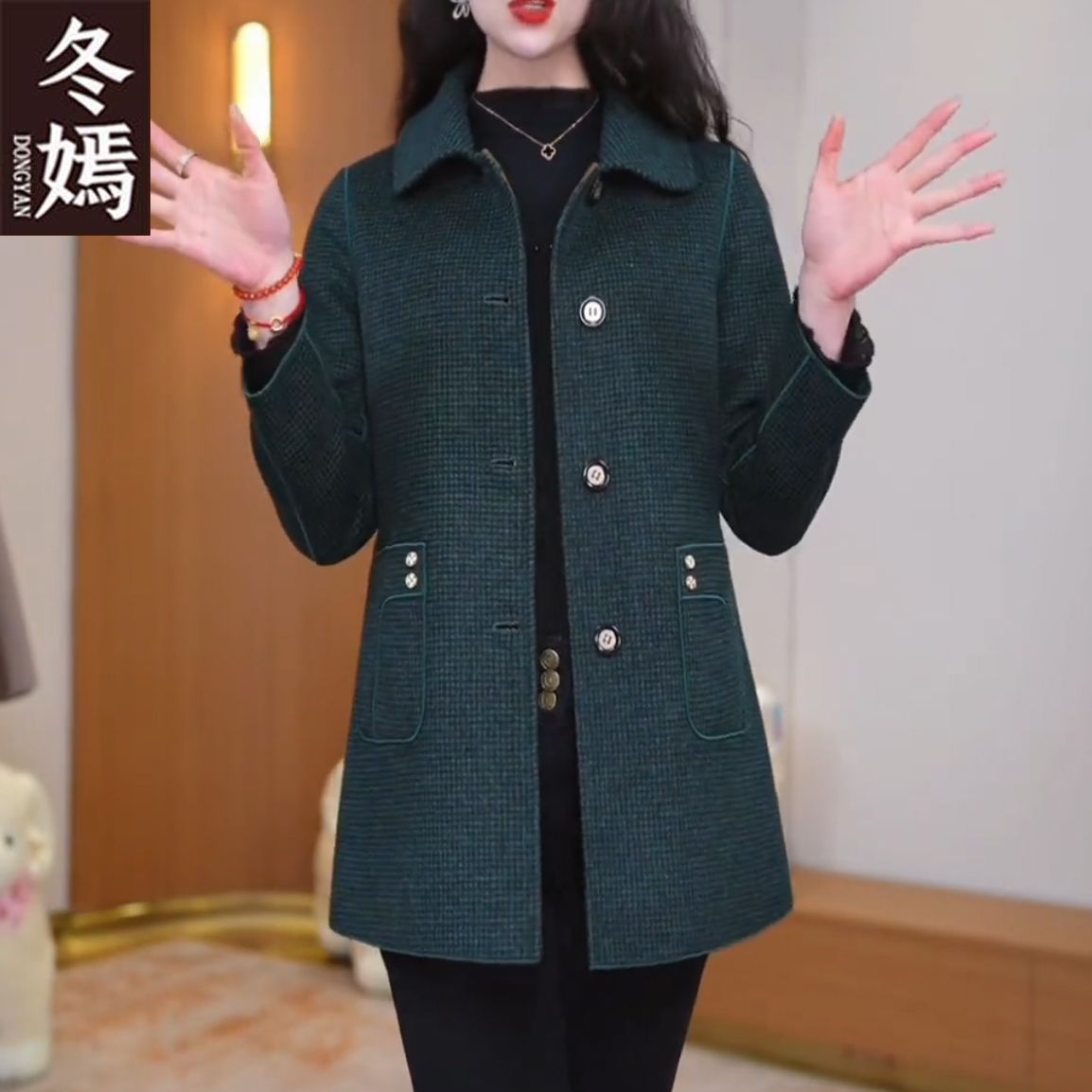 양면 격자 무늬 코트 가을, 겨울 중간 길이 캐시미어 새 양모 플러스 사이즈 슬림 중년 어머니 코트 패션