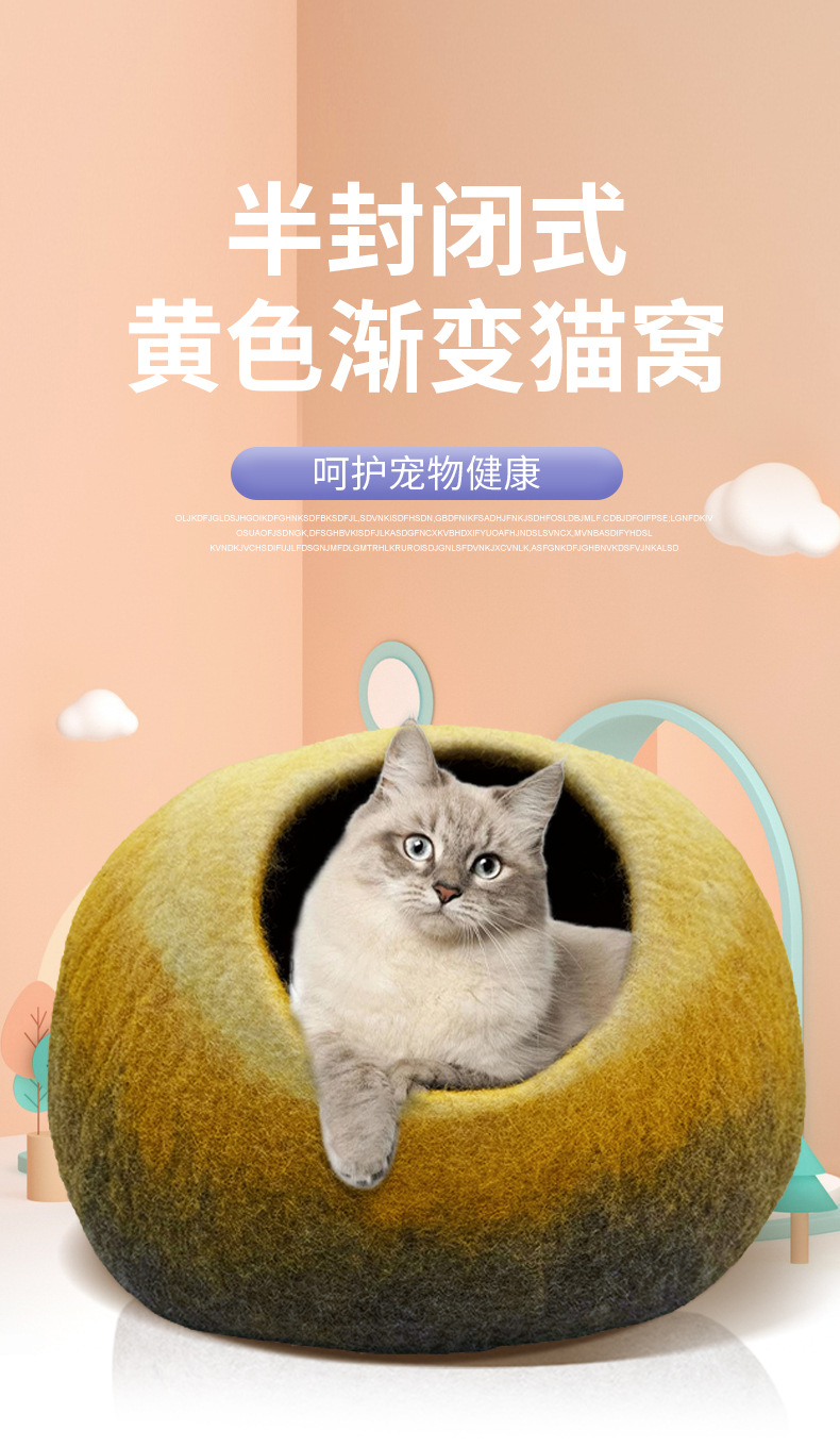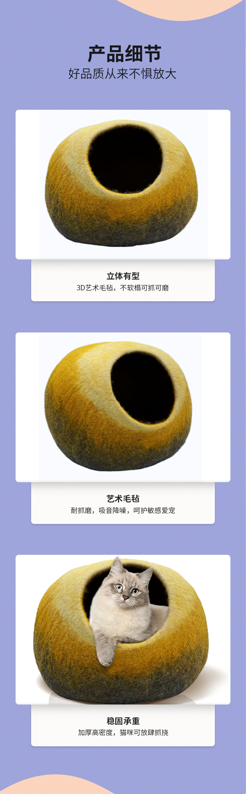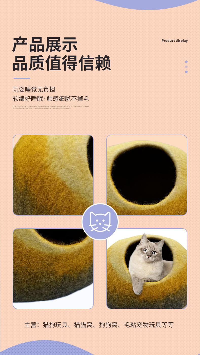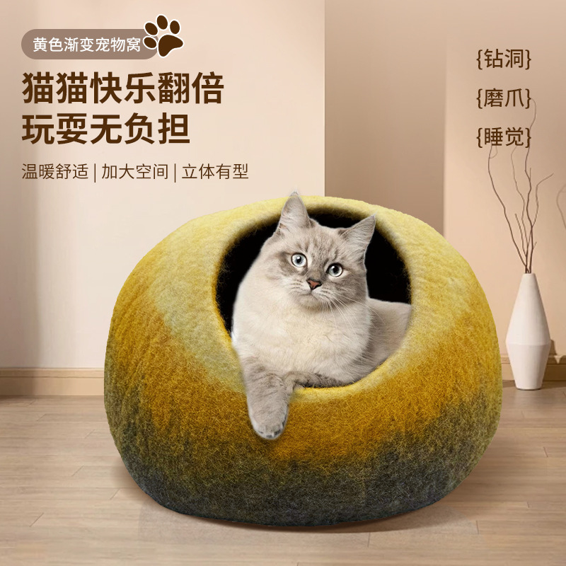양모 펠트 고양이 집 네팔 수제 애완동물 용품 그라데이션 색상 고양이 집 고양이 장난감 애완동물 집