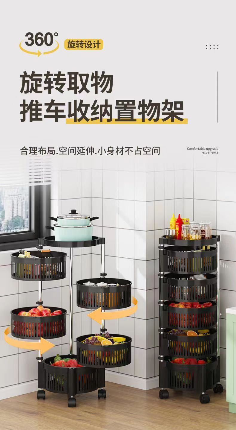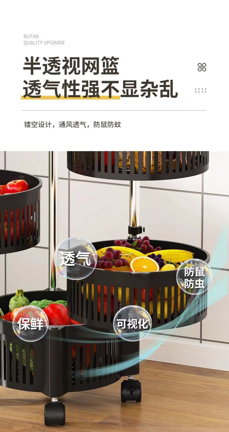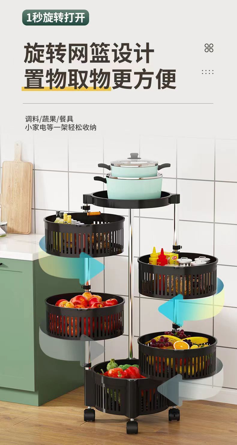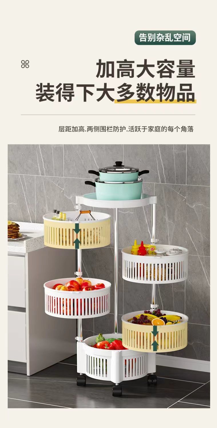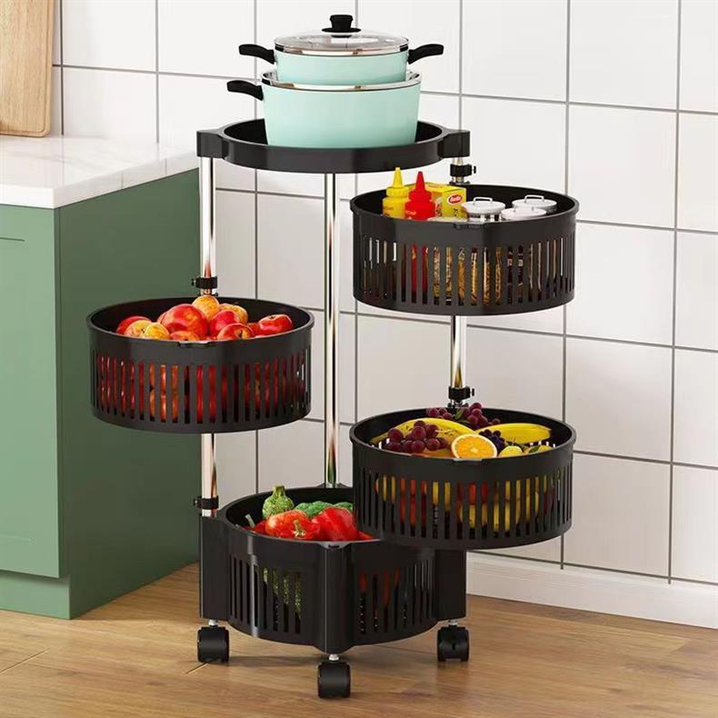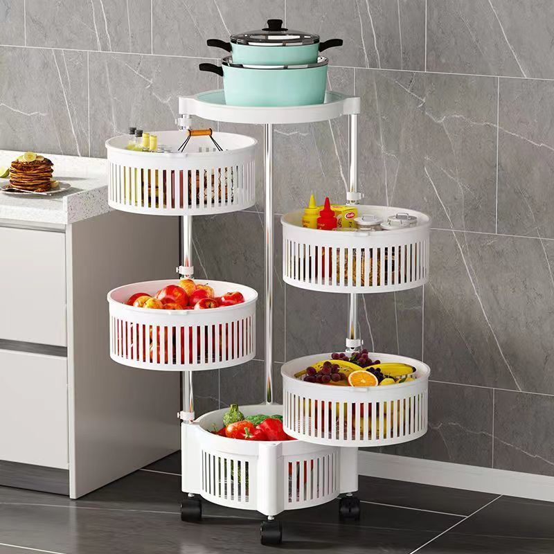 설치가 필요 없는 주방 수납 선반, 가정용 다층 회전식 바닥에서 천장까지 과일 및 야채 수납 선반, 식료품 수납 선반