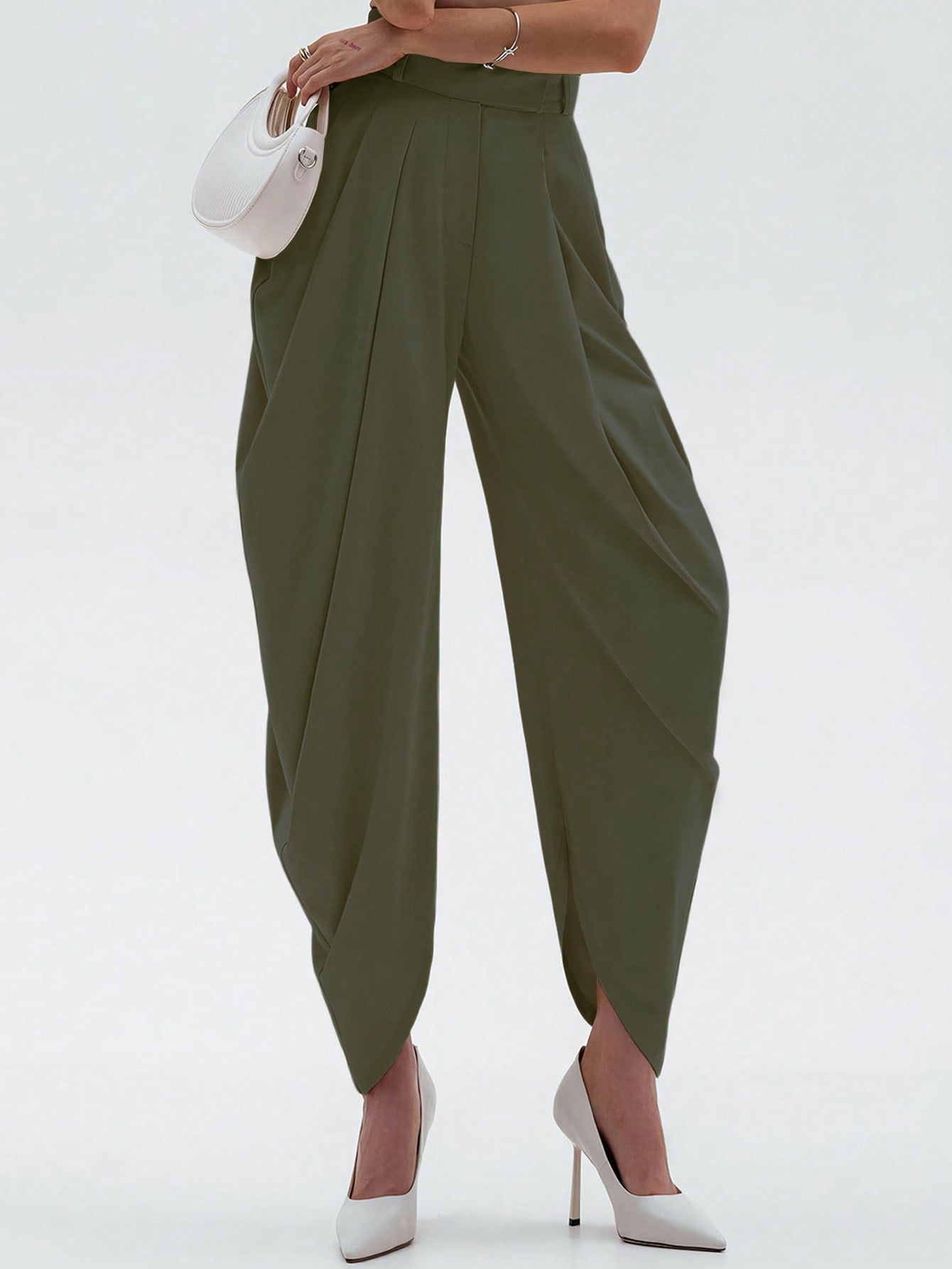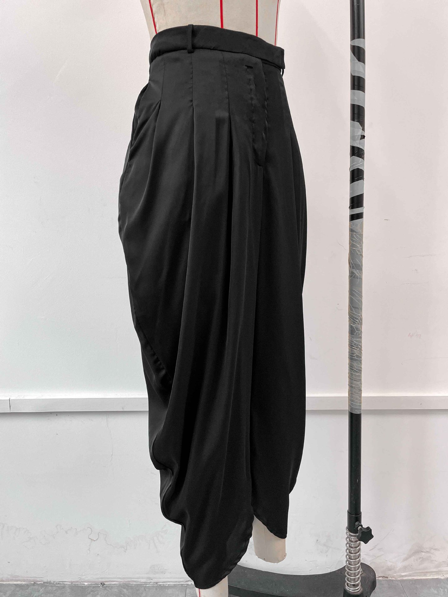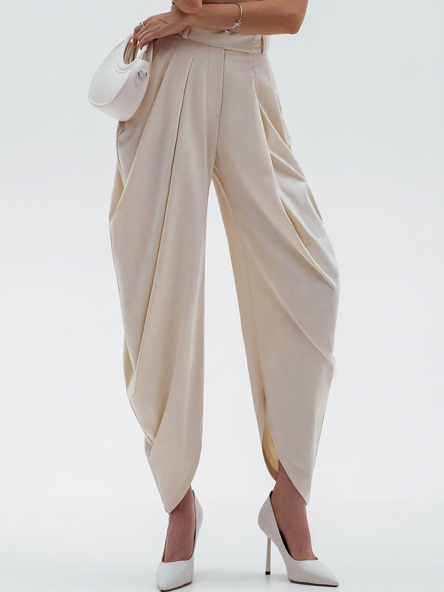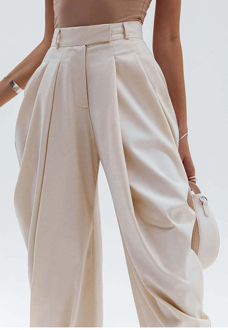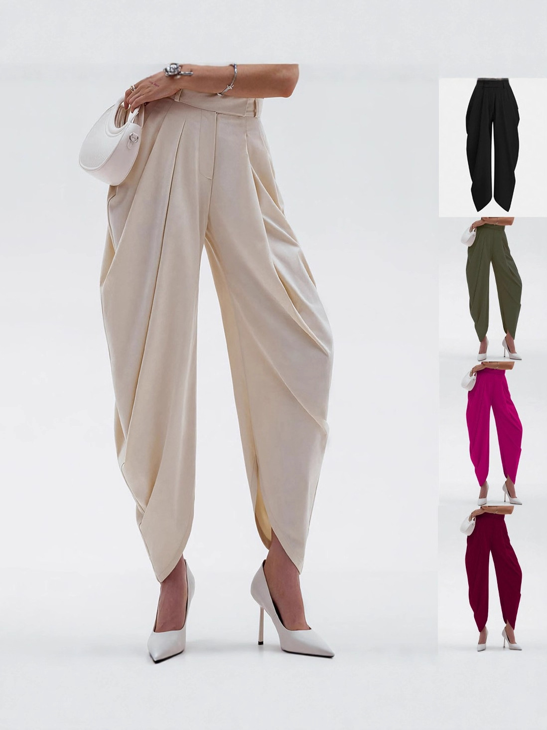 여성 바지 2025 신상 하이웨이스트 루즈핏 드레이프 플리츠 불규칙 슬림핏 캐주얼 팬츠 롱 팬츠 휴가룩