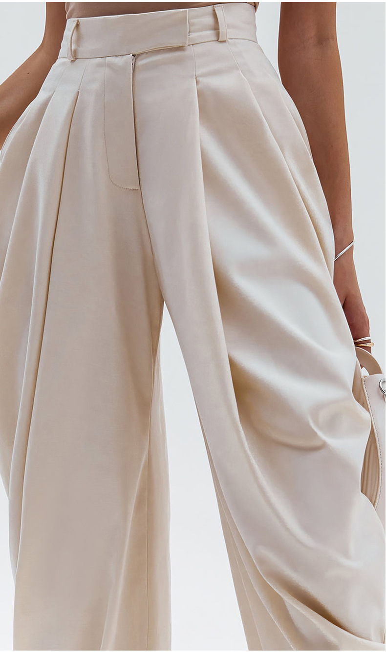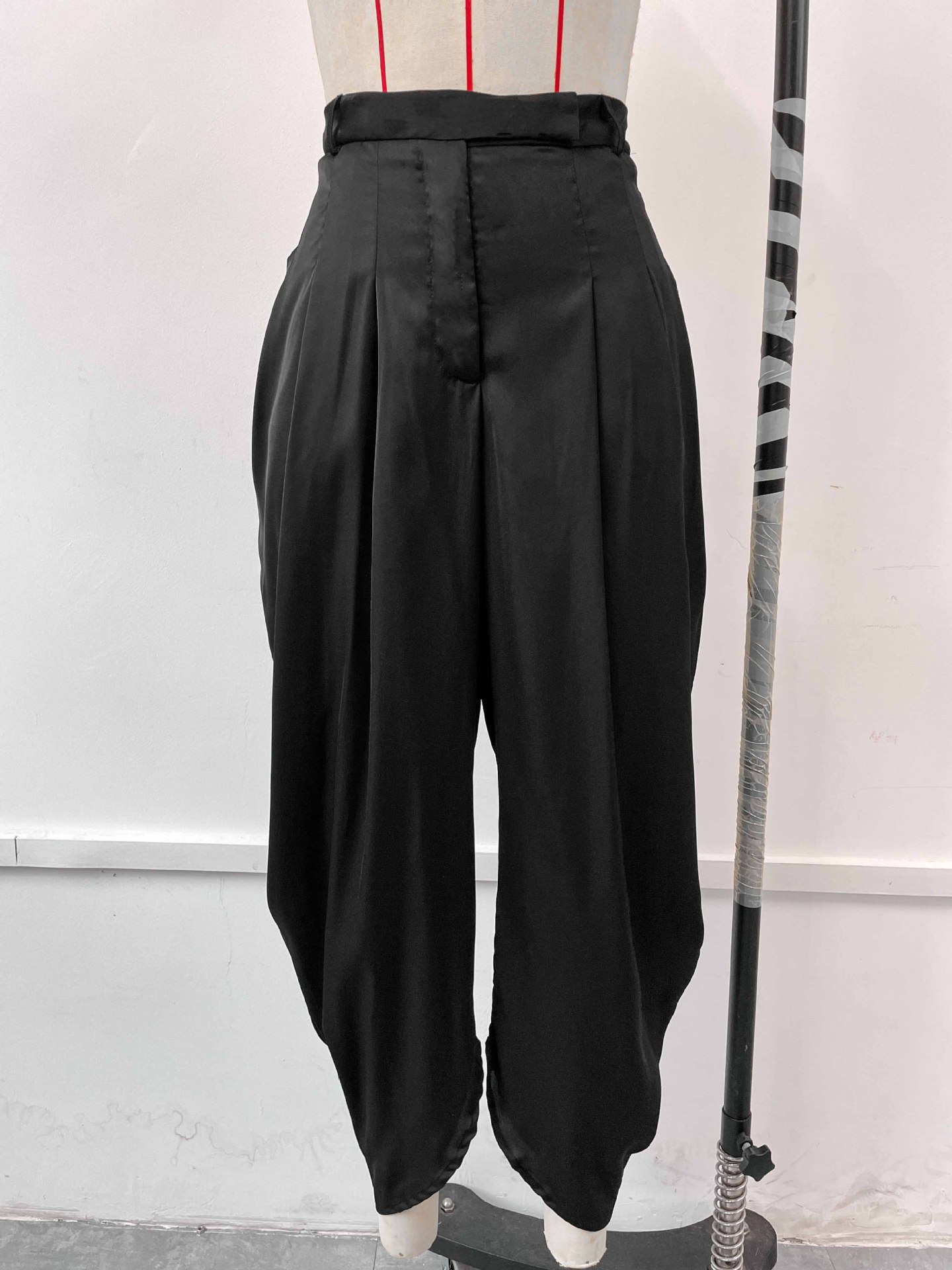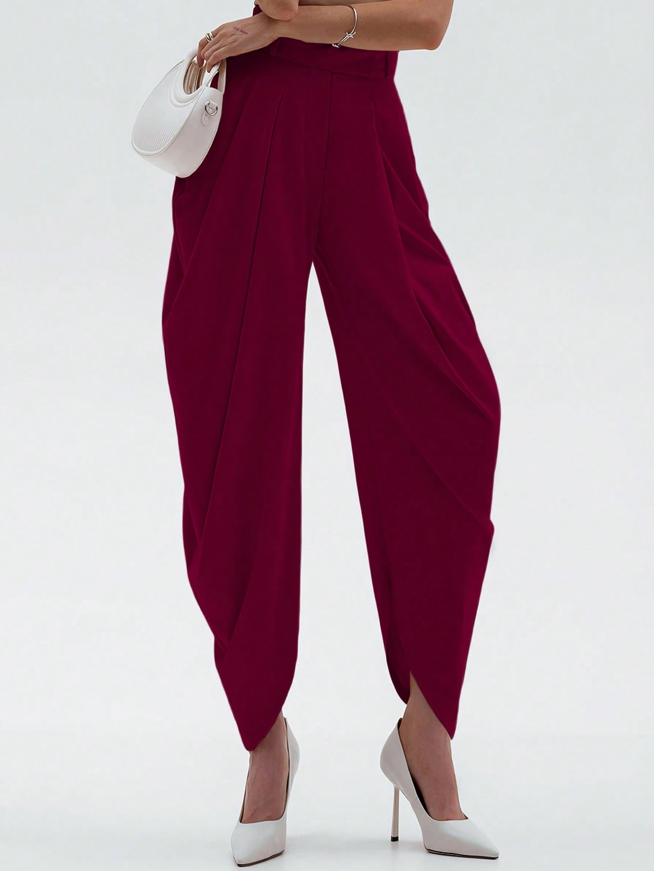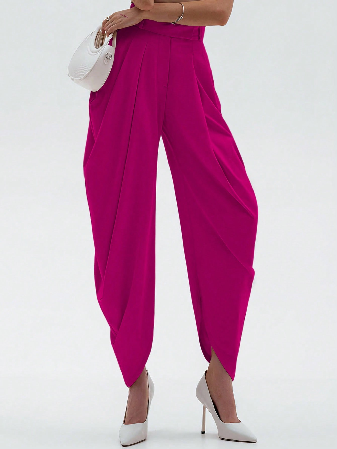 여성 바지 2025 신상 하이웨이스트 루즈핏 드레이프 플리츠 불규칙 슬림핏 캐주얼 팬츠 롱 팬츠 휴가룩