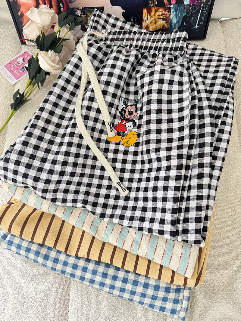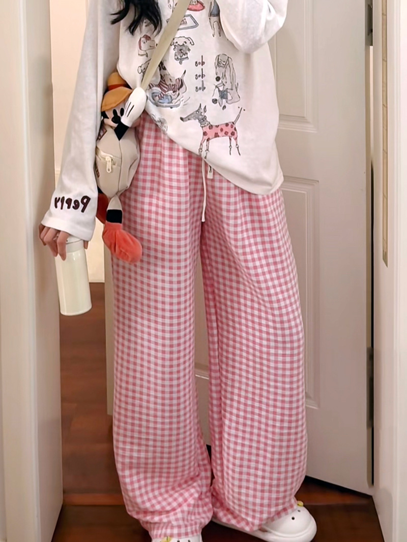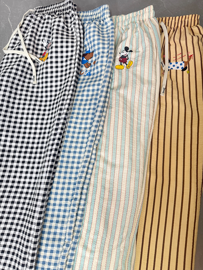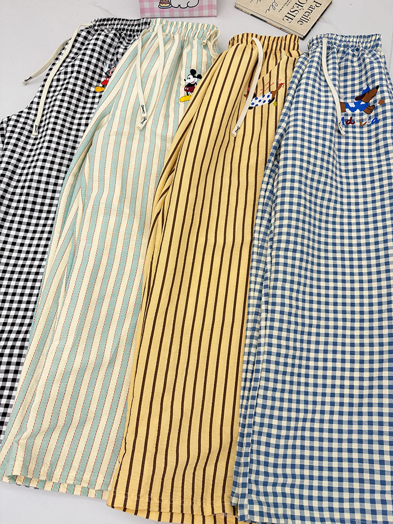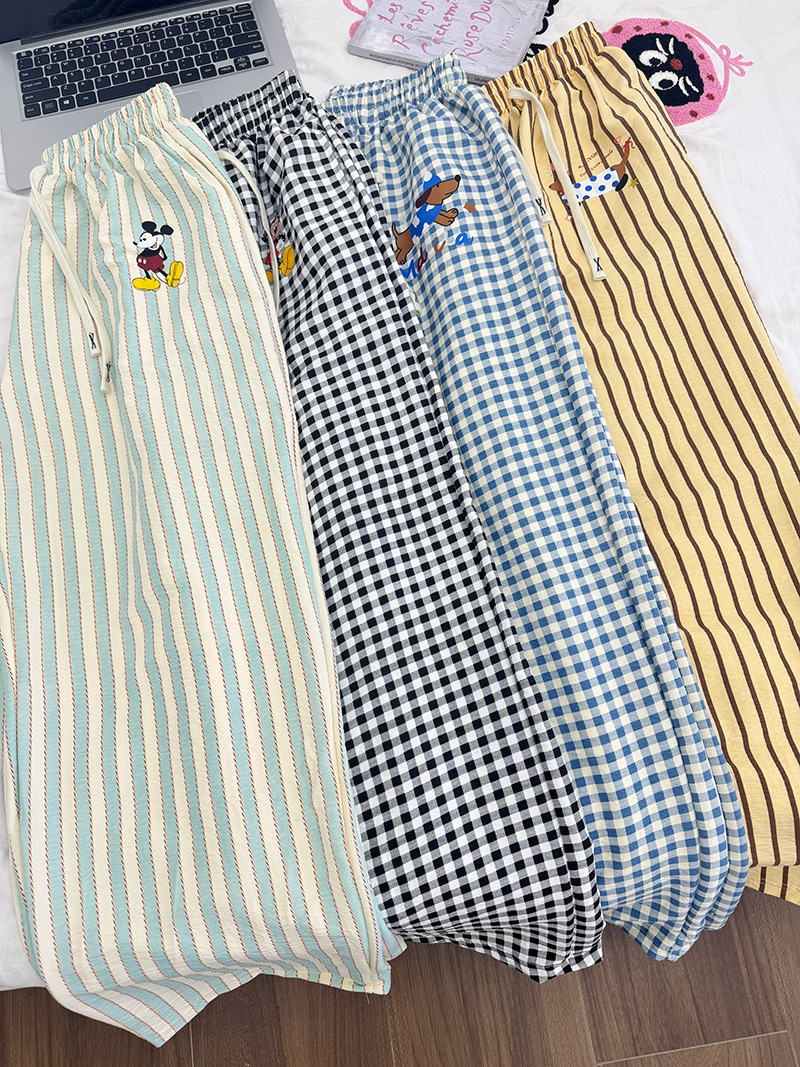 여름 워킹팬츠, 클라우드 코튼 파자마팬츠, 여성용 더블포켓 체크무늬 스트레이트 와이드팬츠, 아우터용 캐주얼 스트라이프 홈팬츠