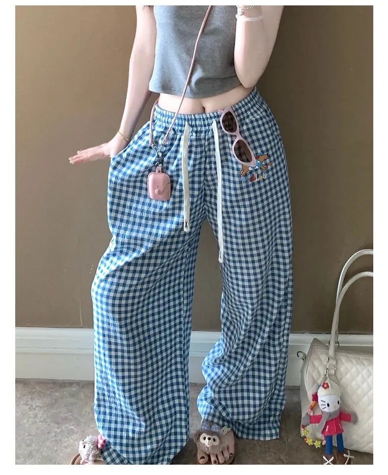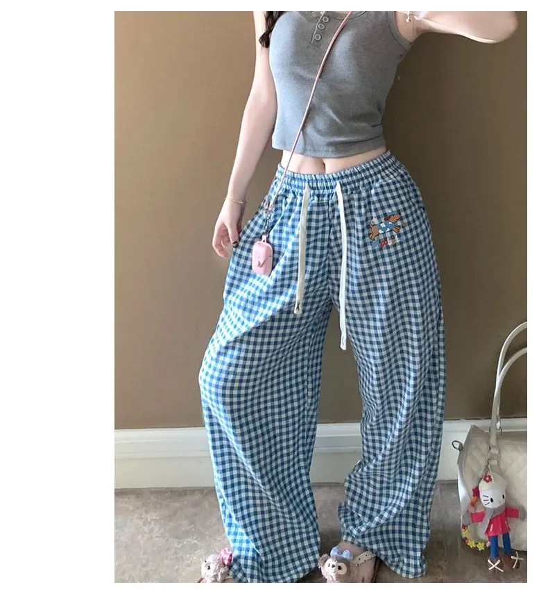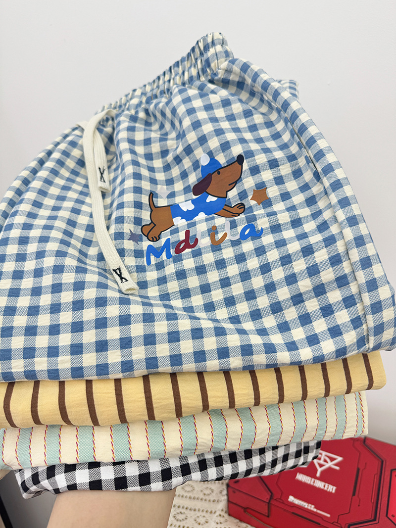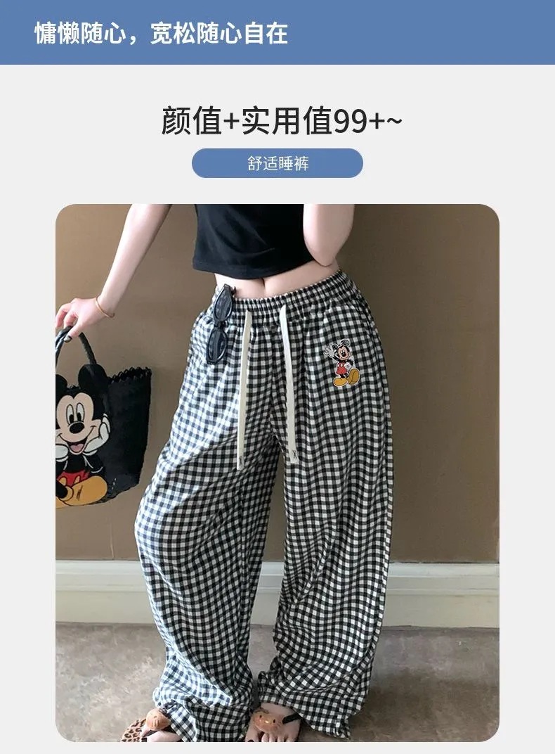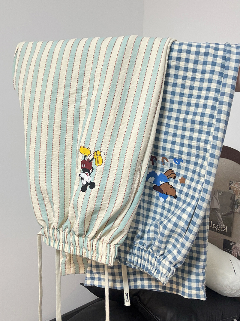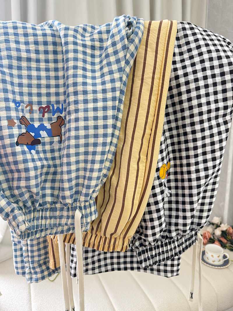 여름 워킹팬츠, 클라우드 코튼 파자마팬츠, 여성용 더블포켓 체크무늬 스트레이트 와이드팬츠, 아우터용 캐주얼 스트라이프 홈팬츠