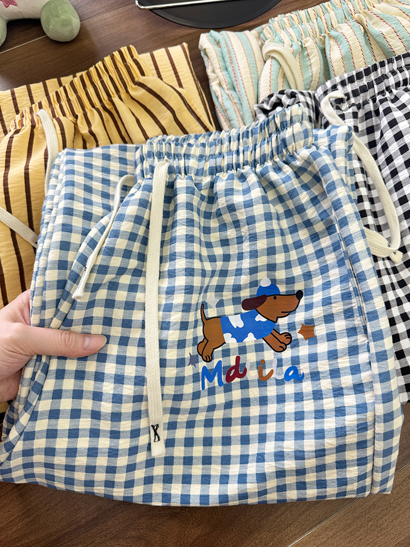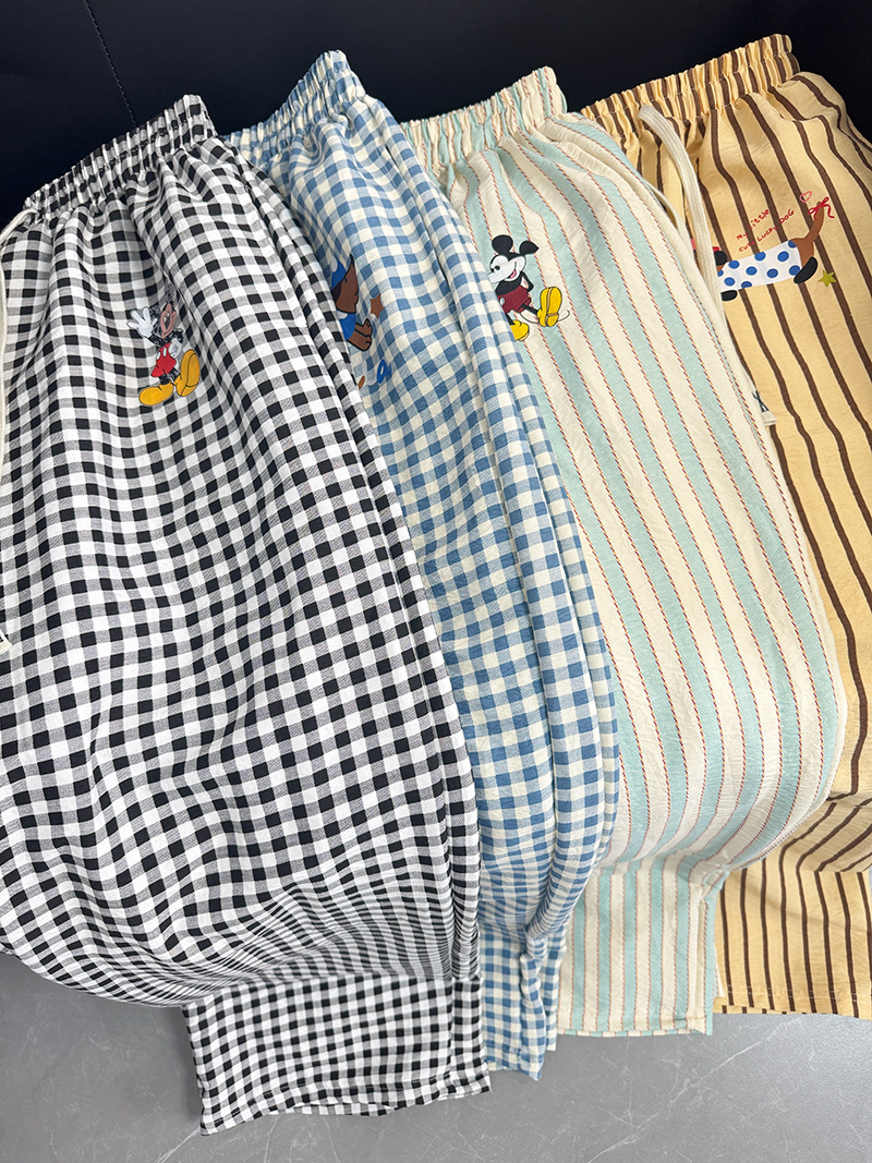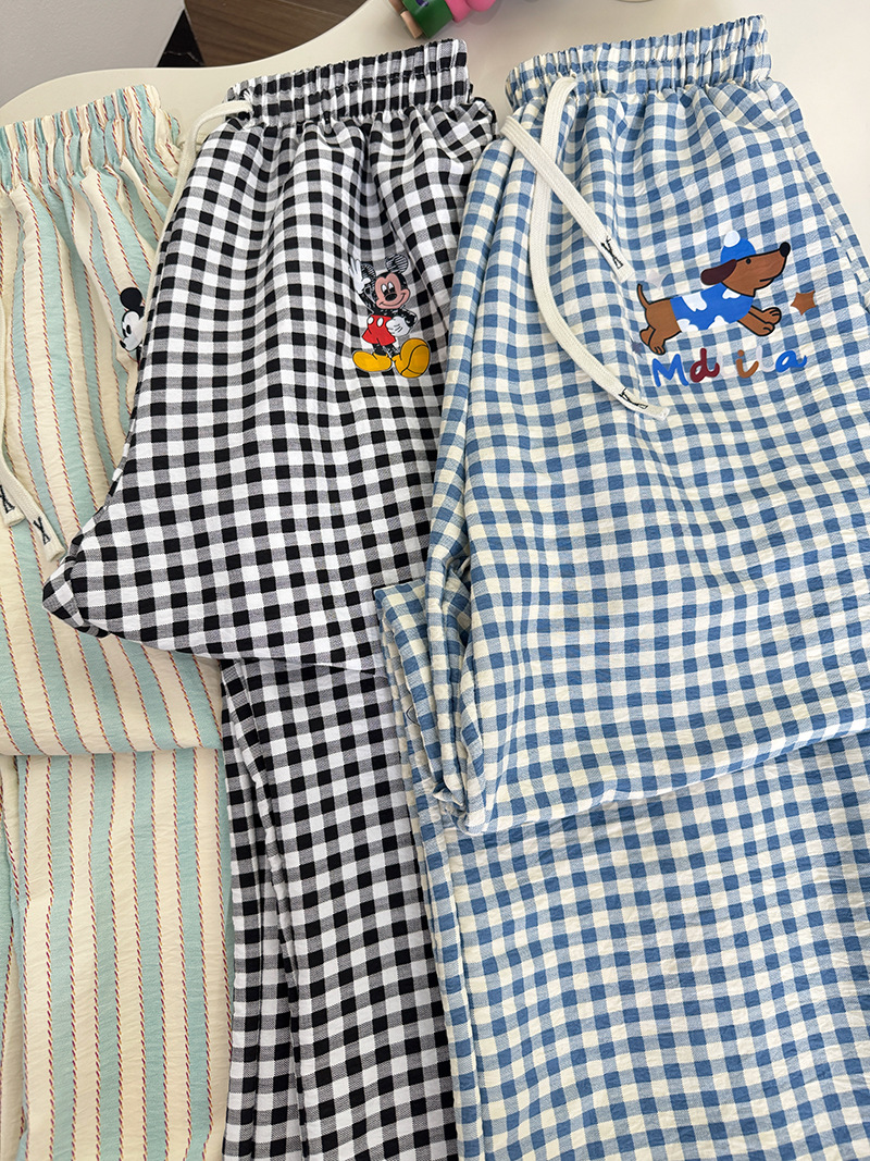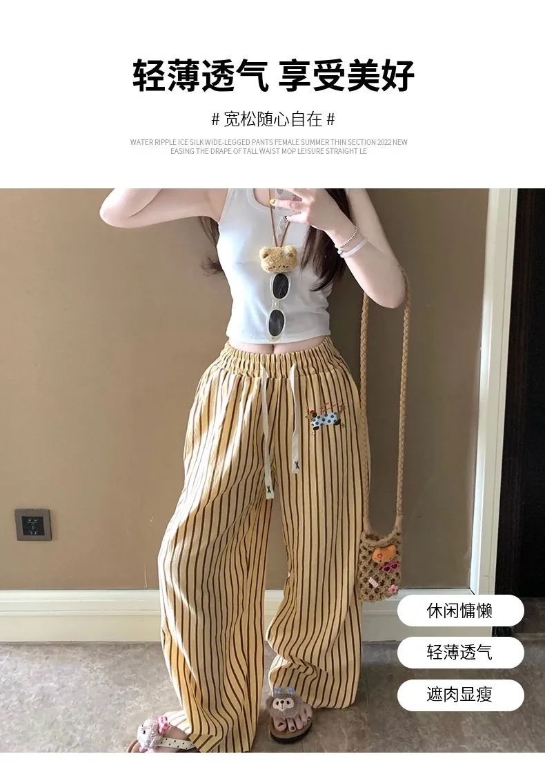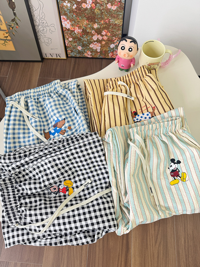 여름 워킹팬츠, 클라우드 코튼 파자마팬츠, 여성용 더블포켓 체크무늬 스트레이트 와이드팬츠, 아우터용 캐주얼 스트라이프 홈팬츠