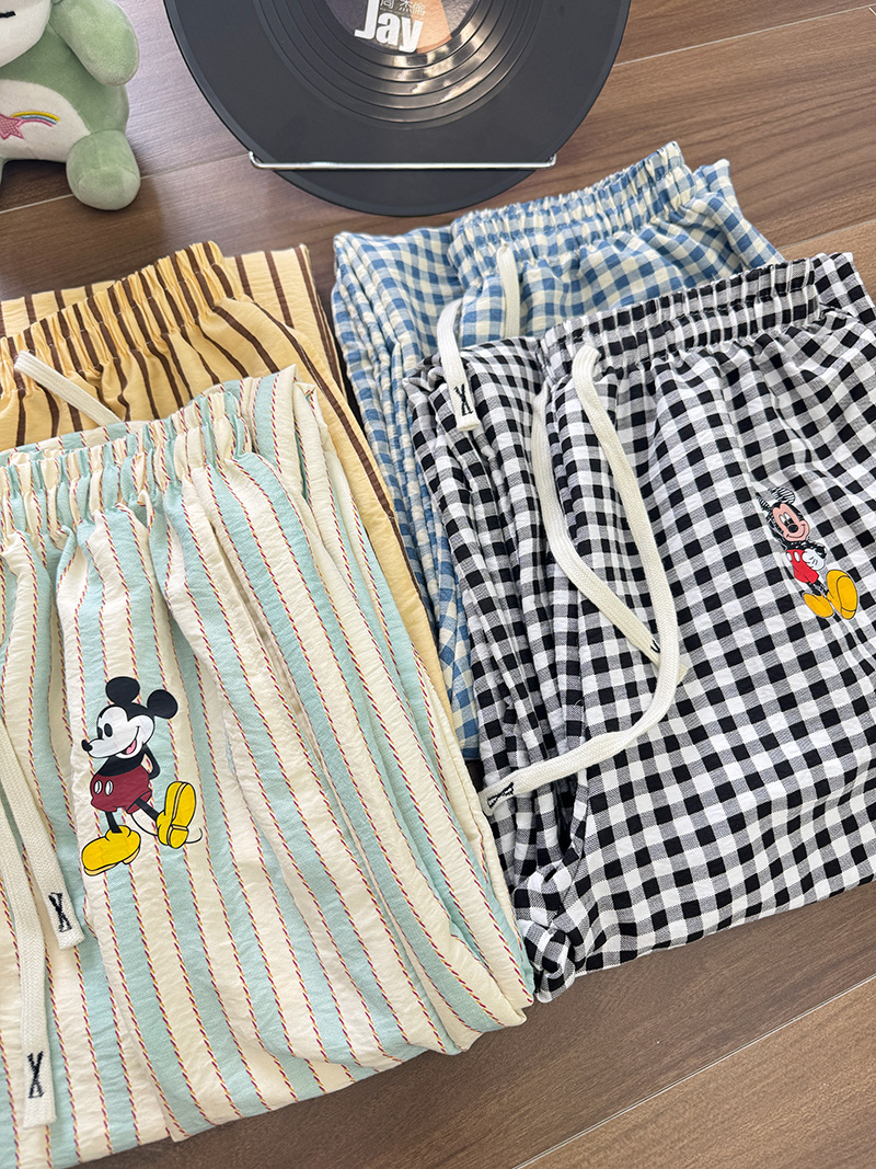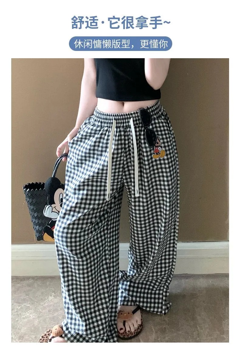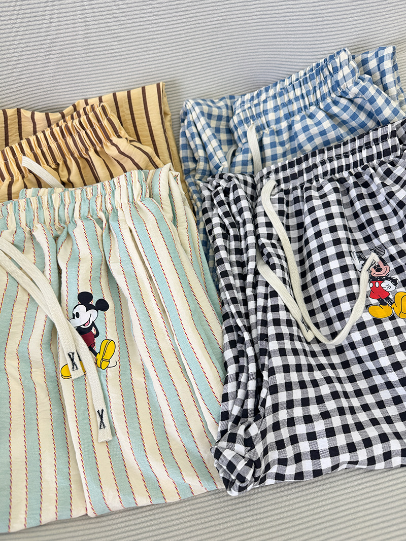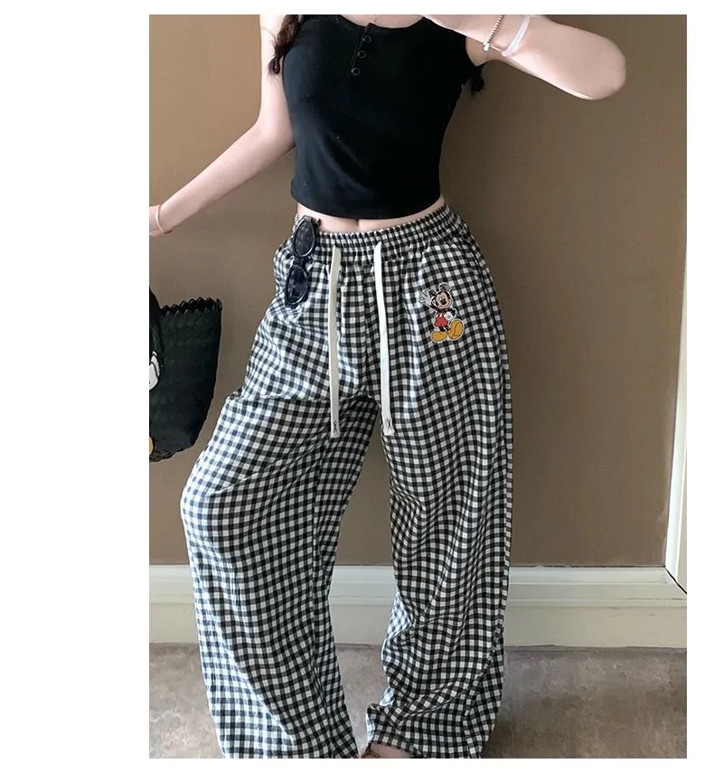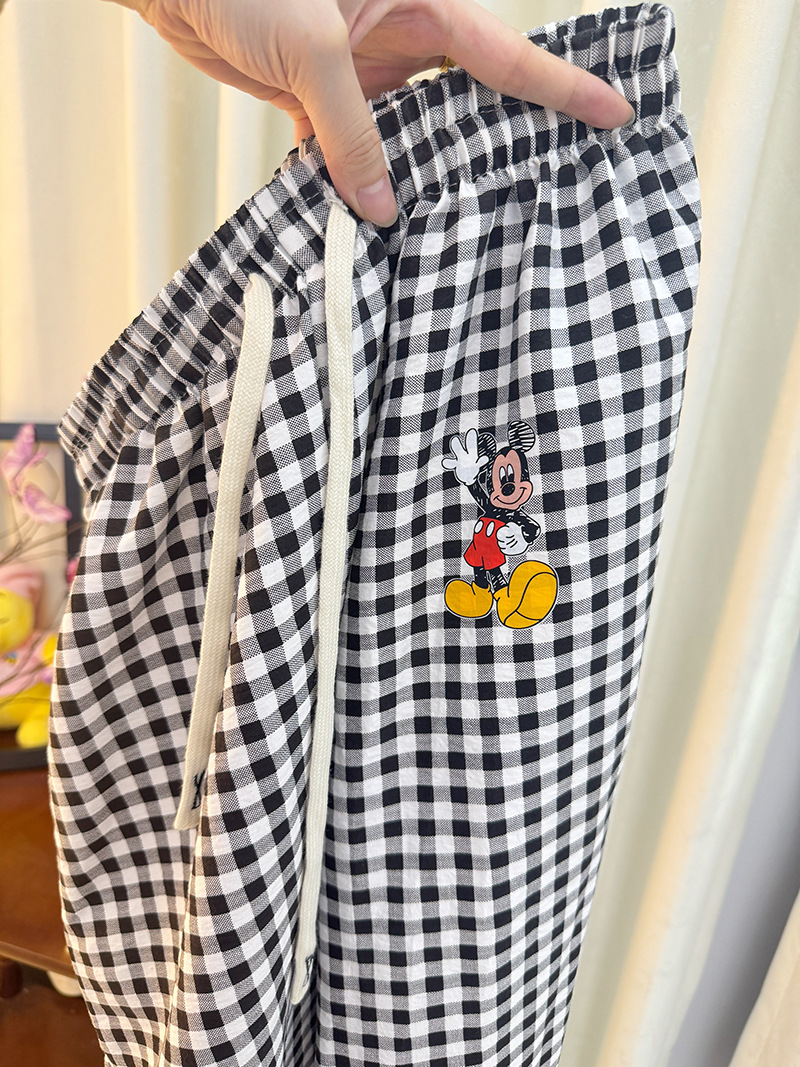 긴 바지 - 흑백 체크 미키 [더블 포켓 + 드로스트링]