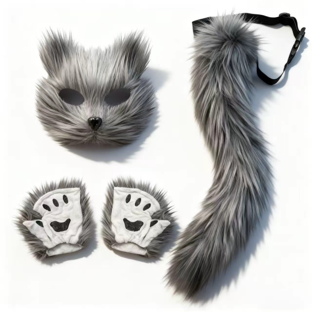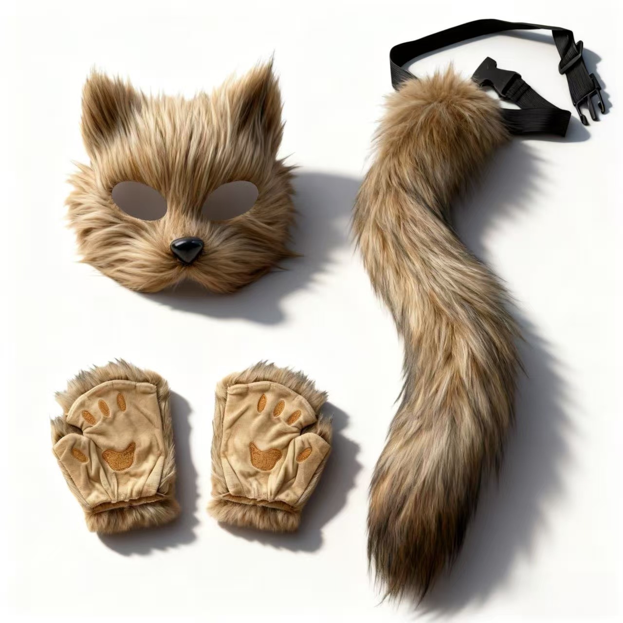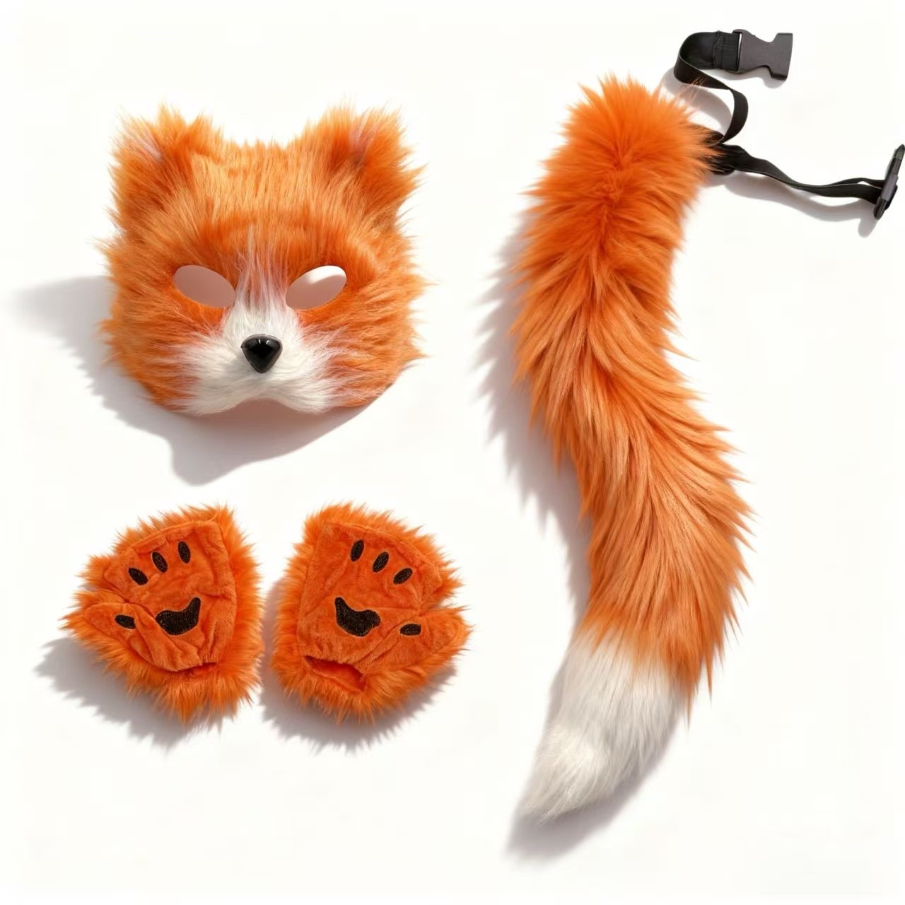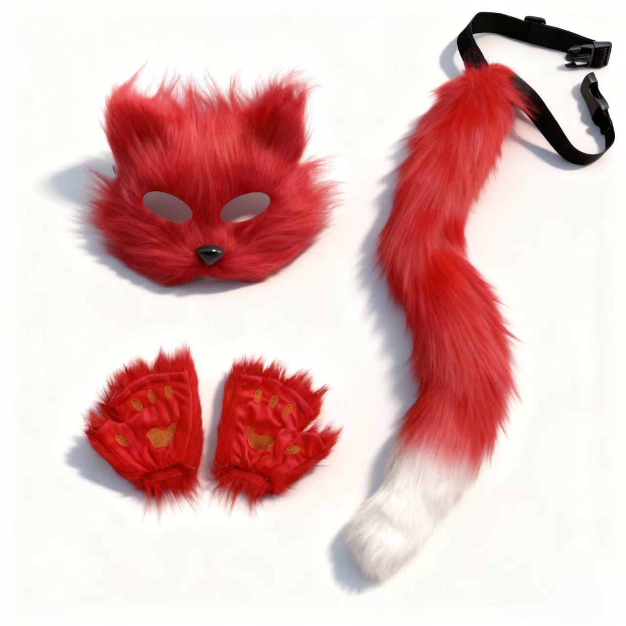 万圣节cosplay派对时尚配饰可爱狐狸面具毛绒猫爪手套兽尾三件套