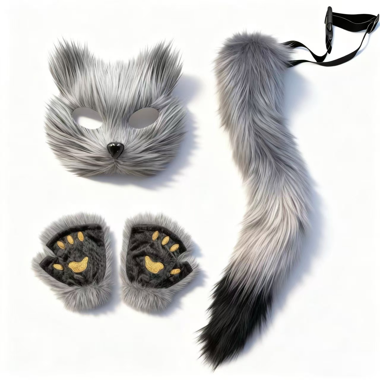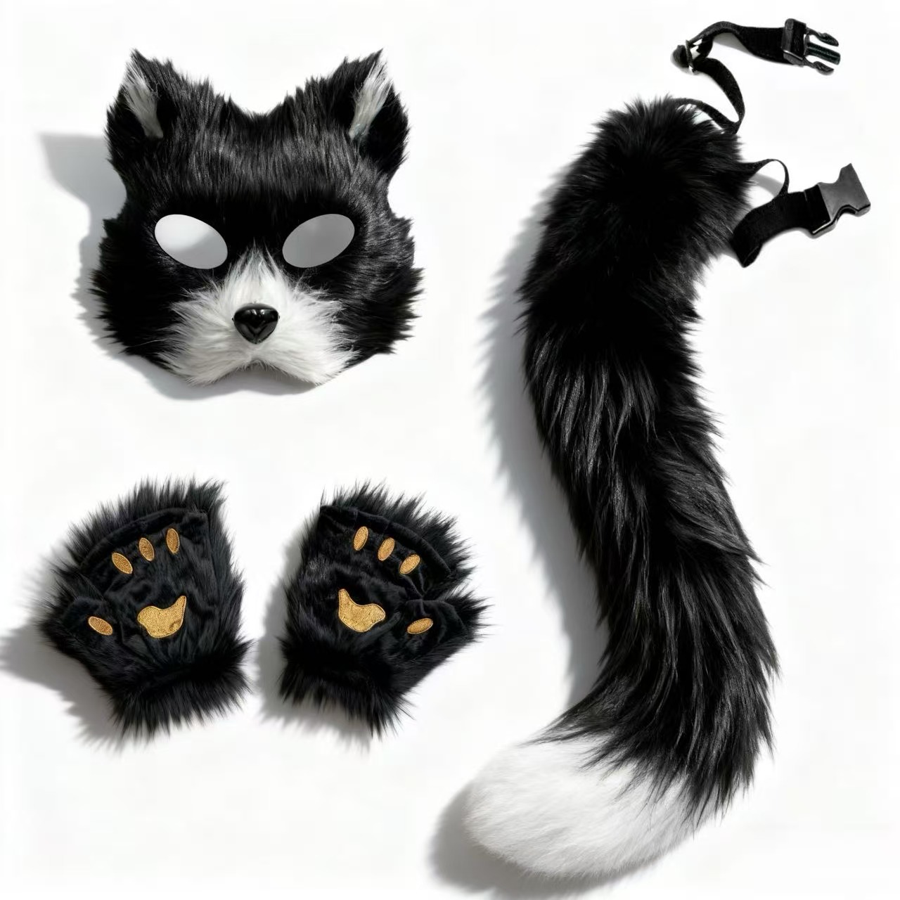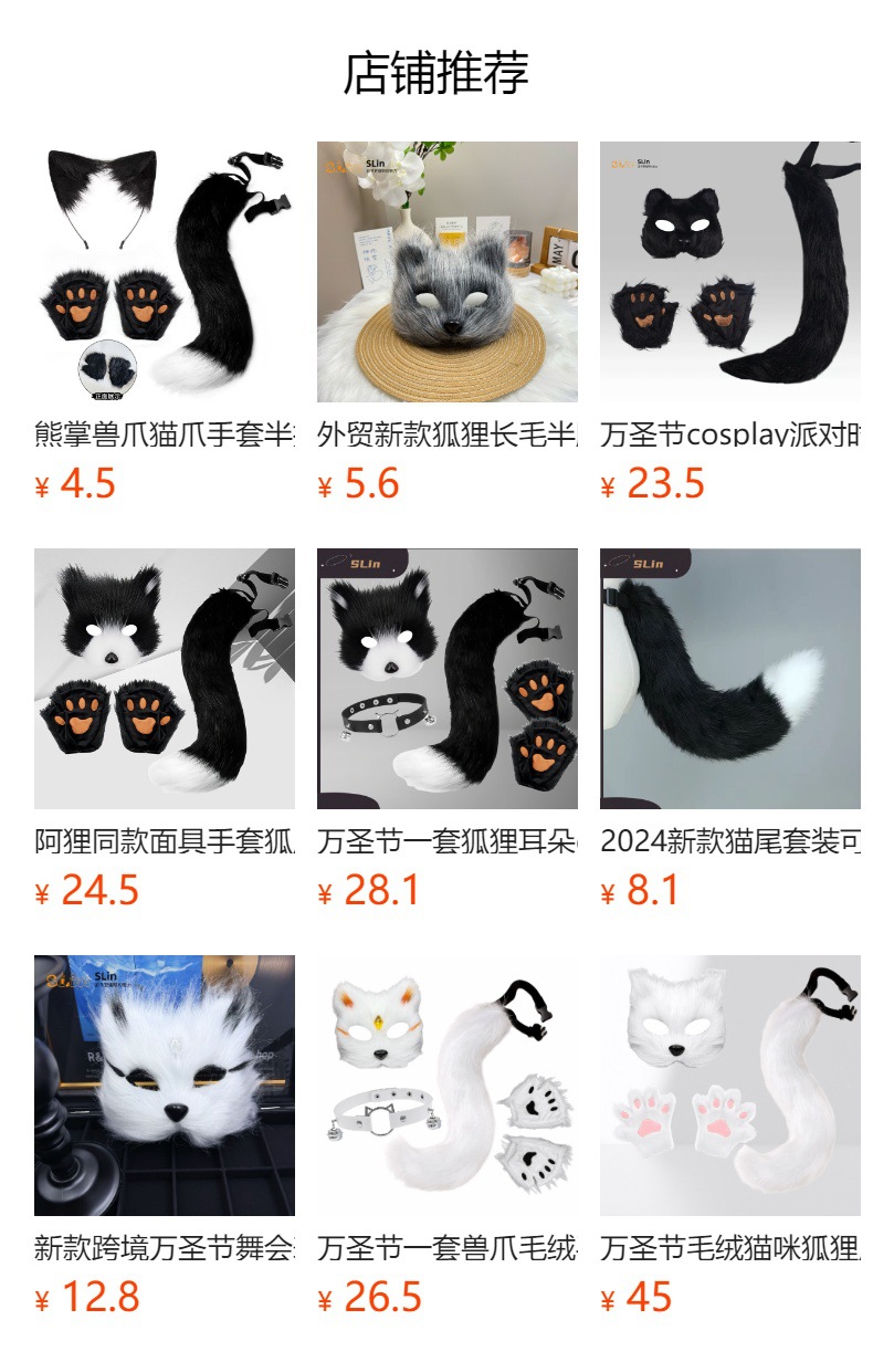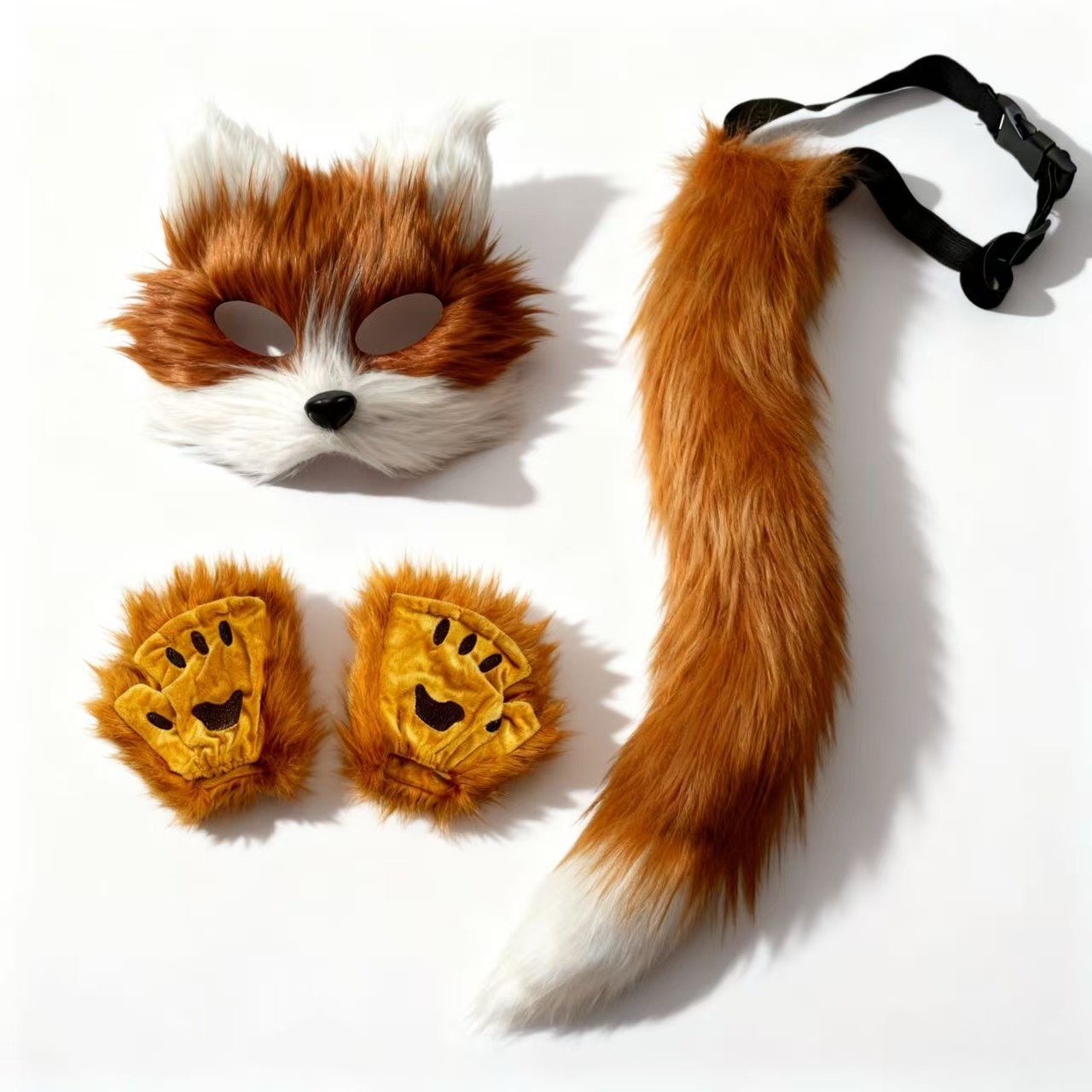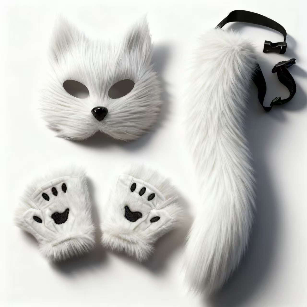 万圣节cosplay派对时尚配饰可爱狐狸面具毛绒猫爪手套兽尾三件套