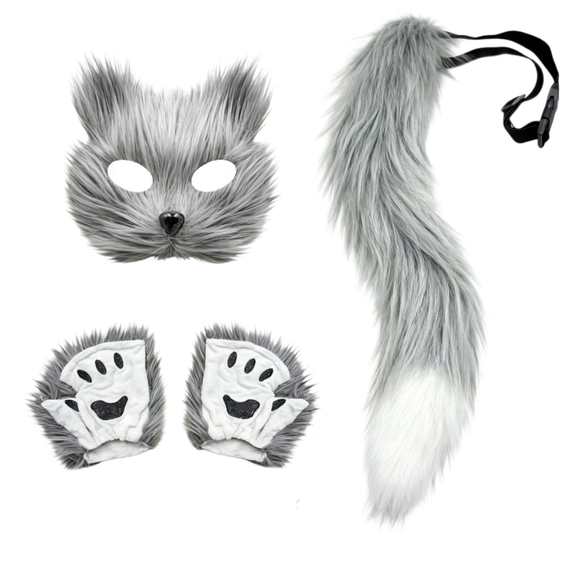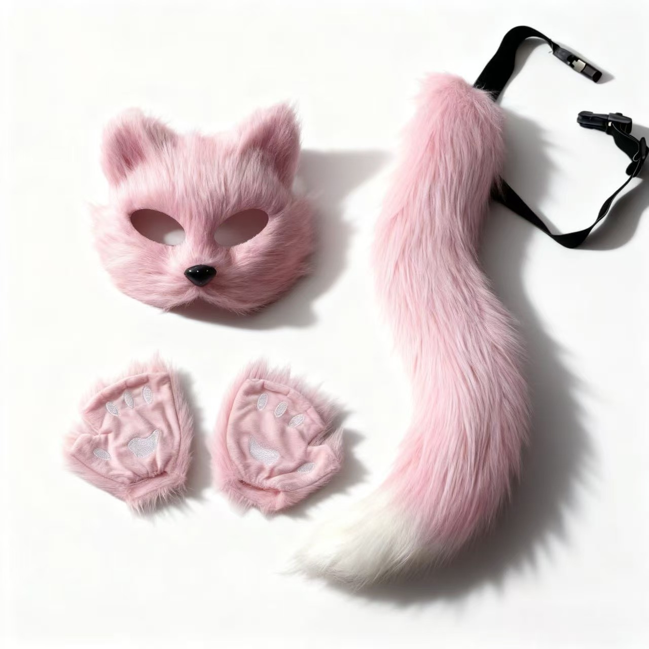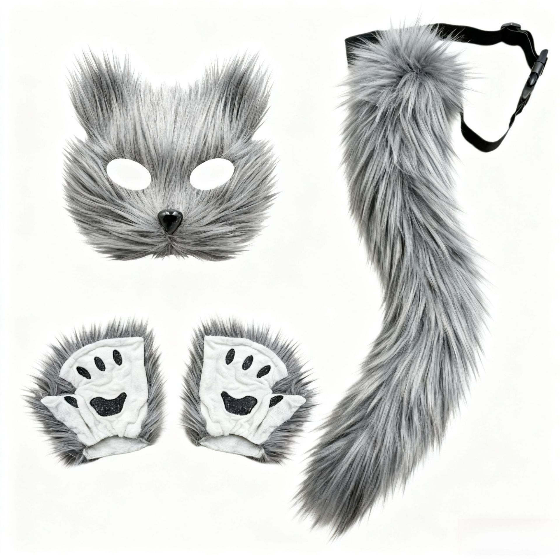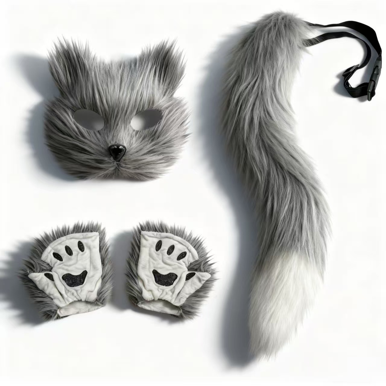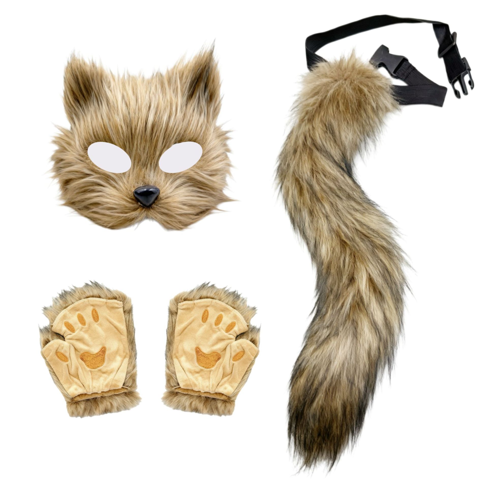 万圣节cosplay派对时尚配饰可爱狐狸面具毛绒猫爪手套兽尾三件套