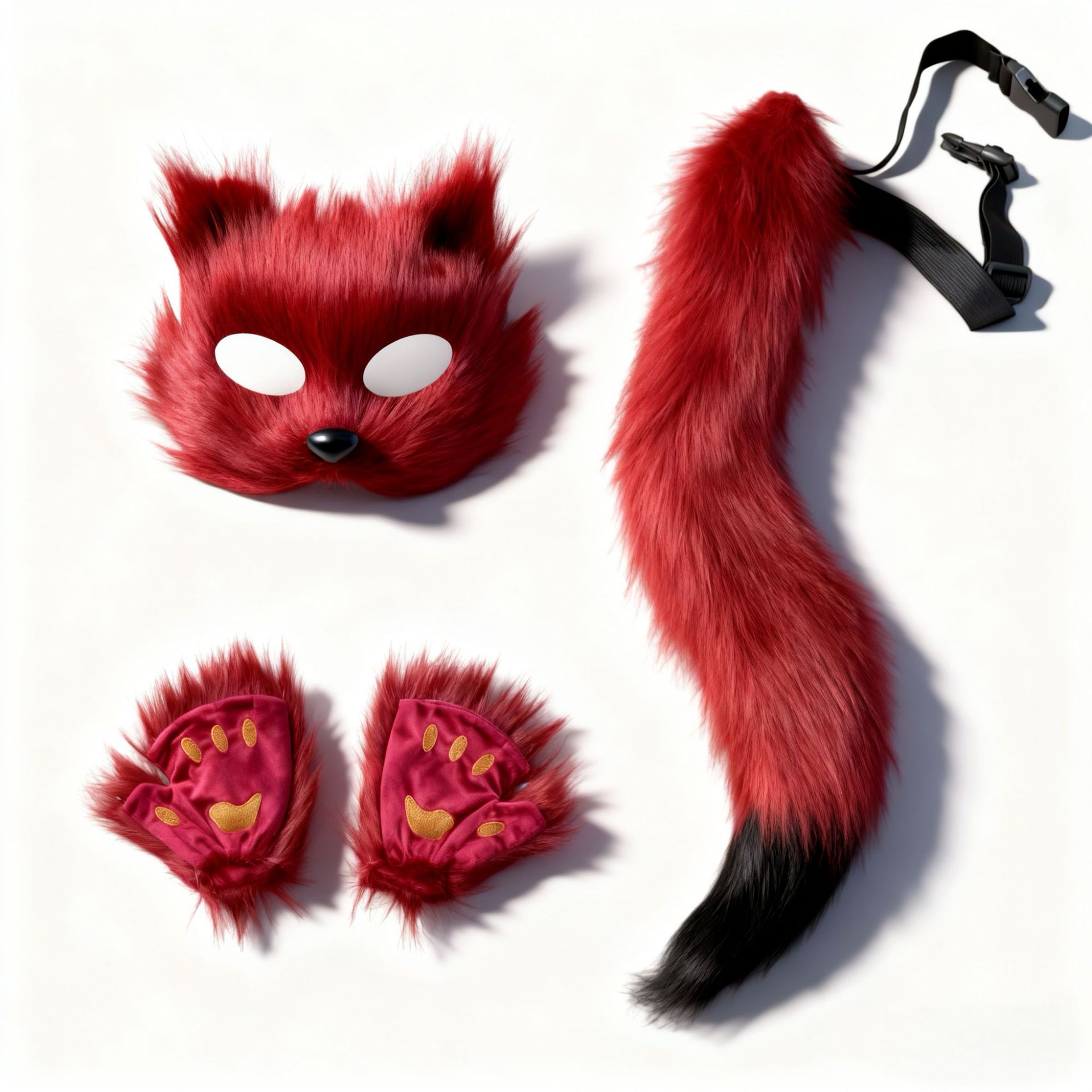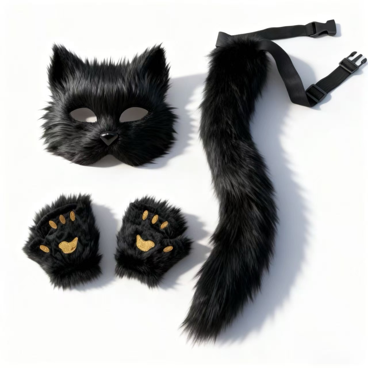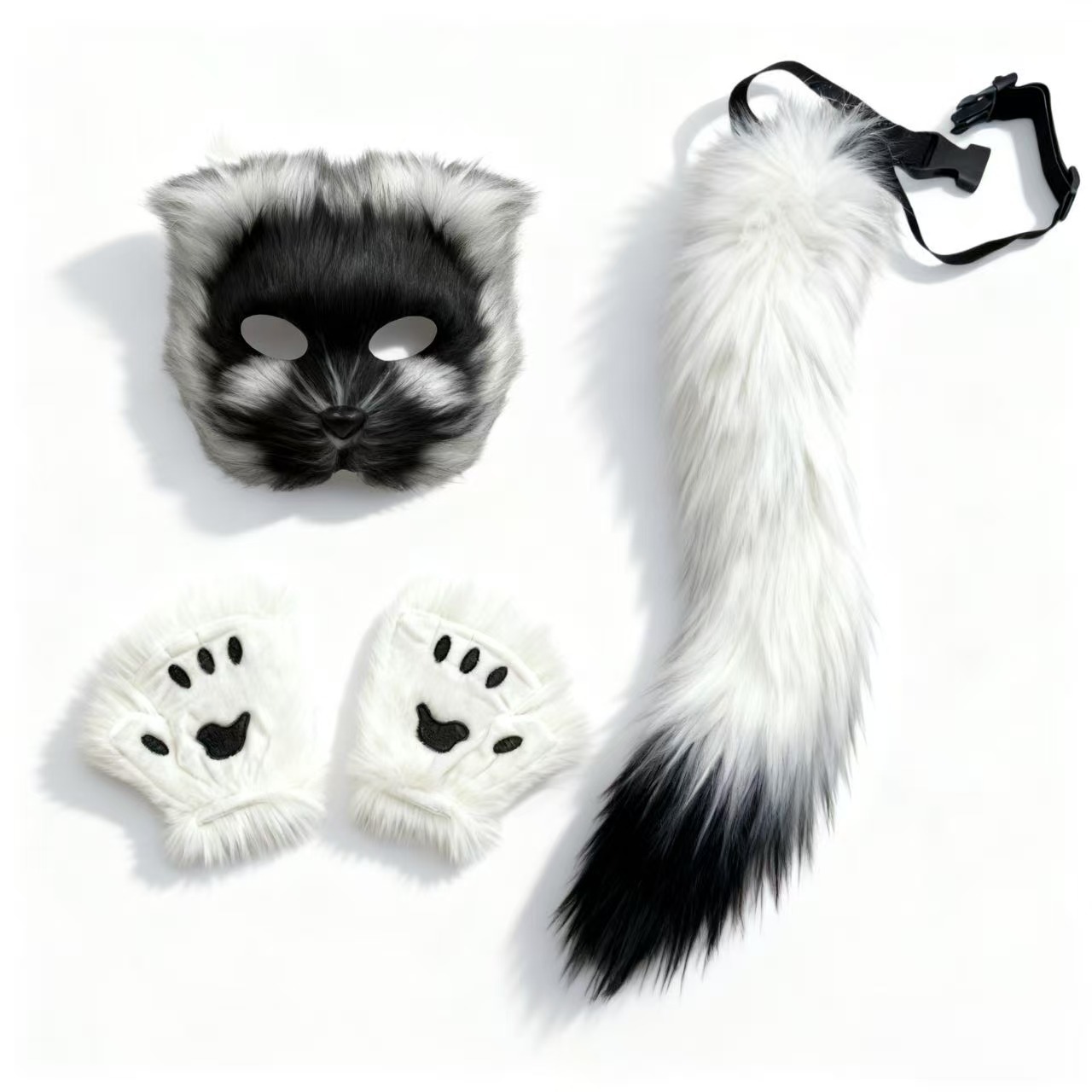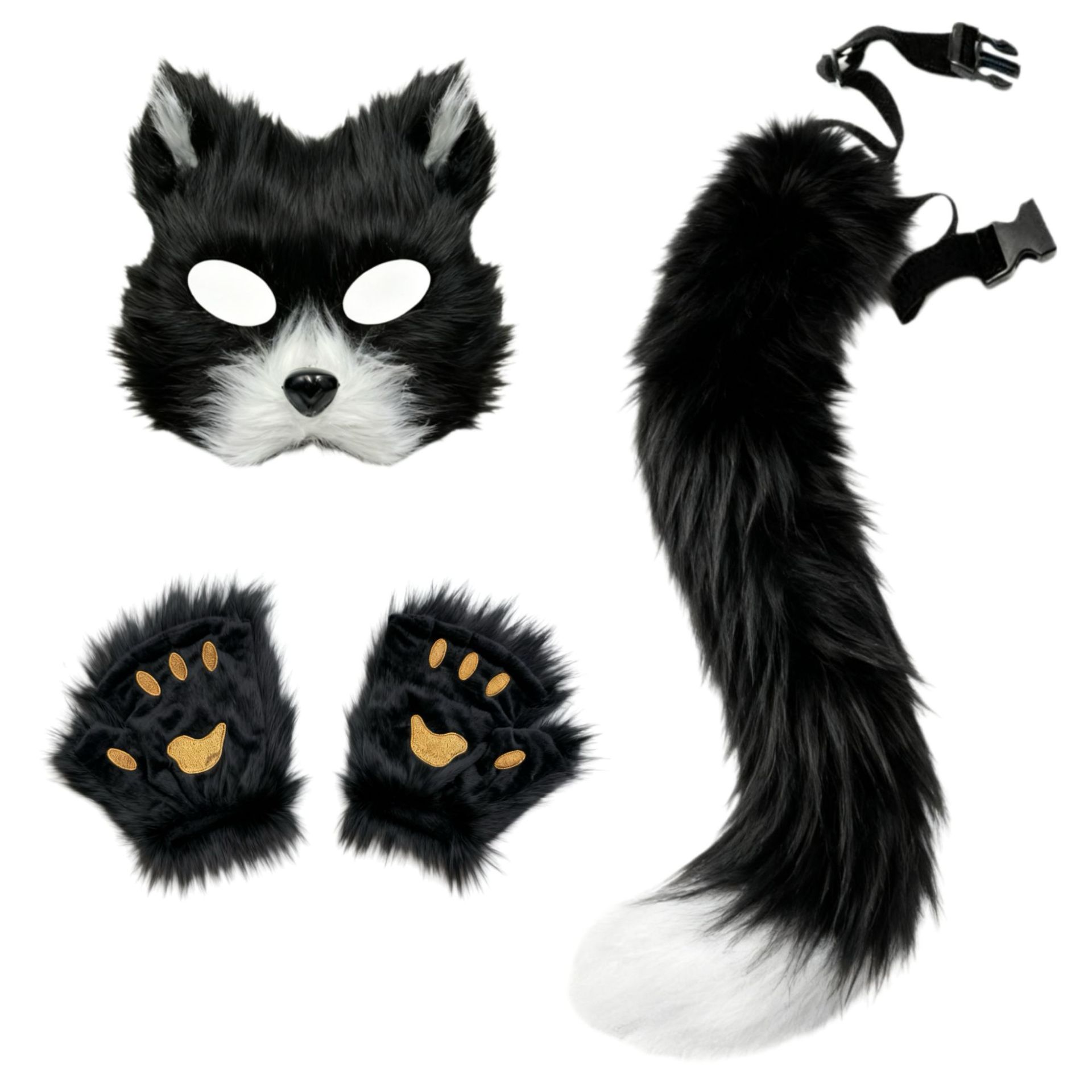 万圣节cosplay派对时尚配饰可爱狐狸面具毛绒猫爪手套兽尾三件套