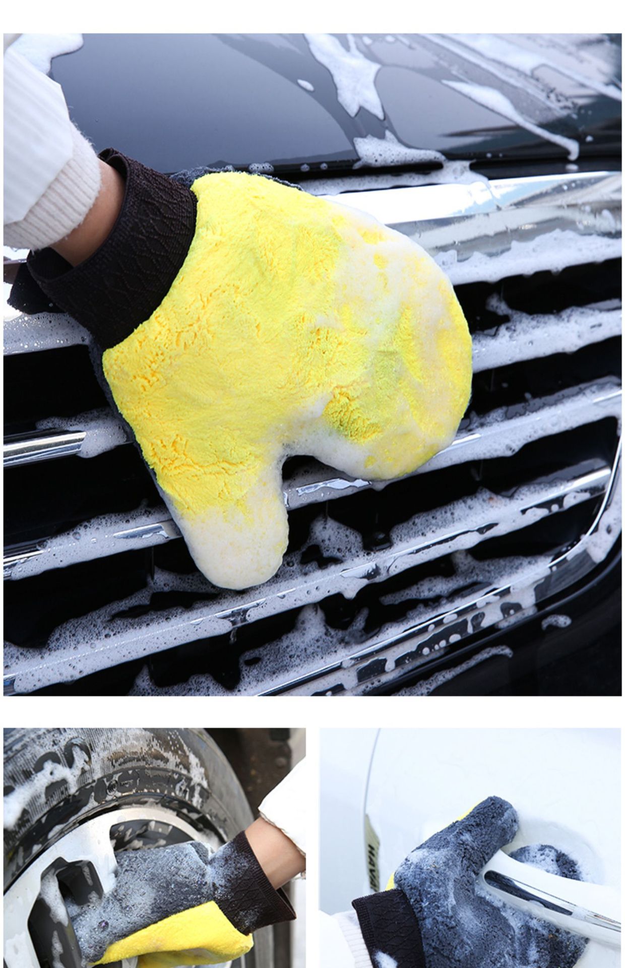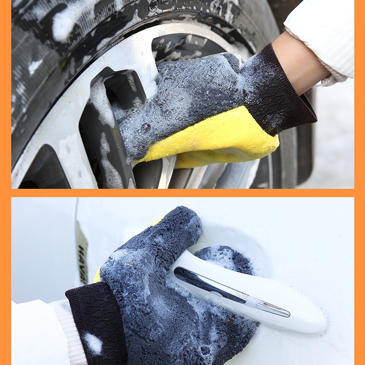 페인트를 손상시키지 않는 세차장갑, 미끄럼 방지, 방수, 곰발톱 산호벨벳 양면 세차도구, 겨울철 차량 닦기용
