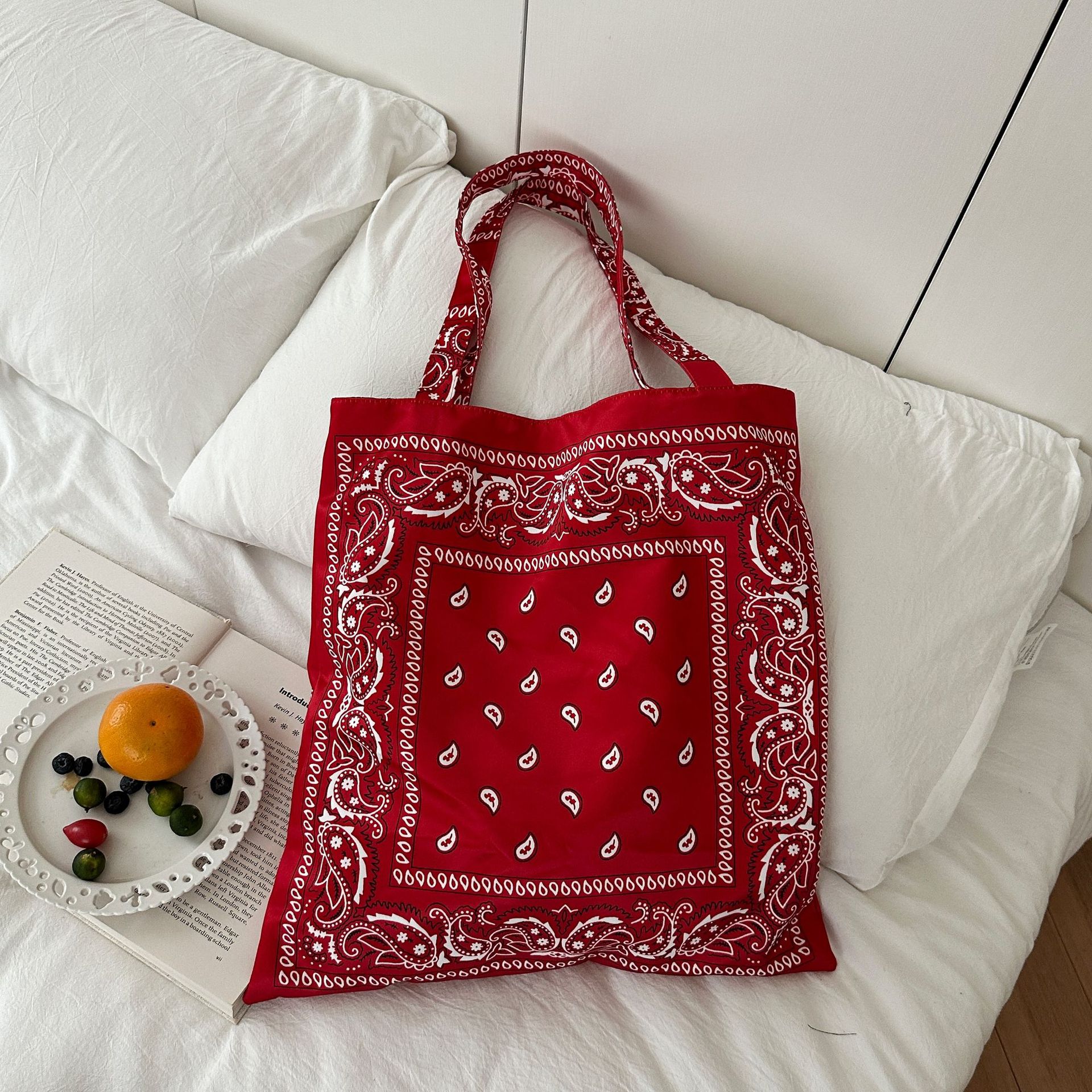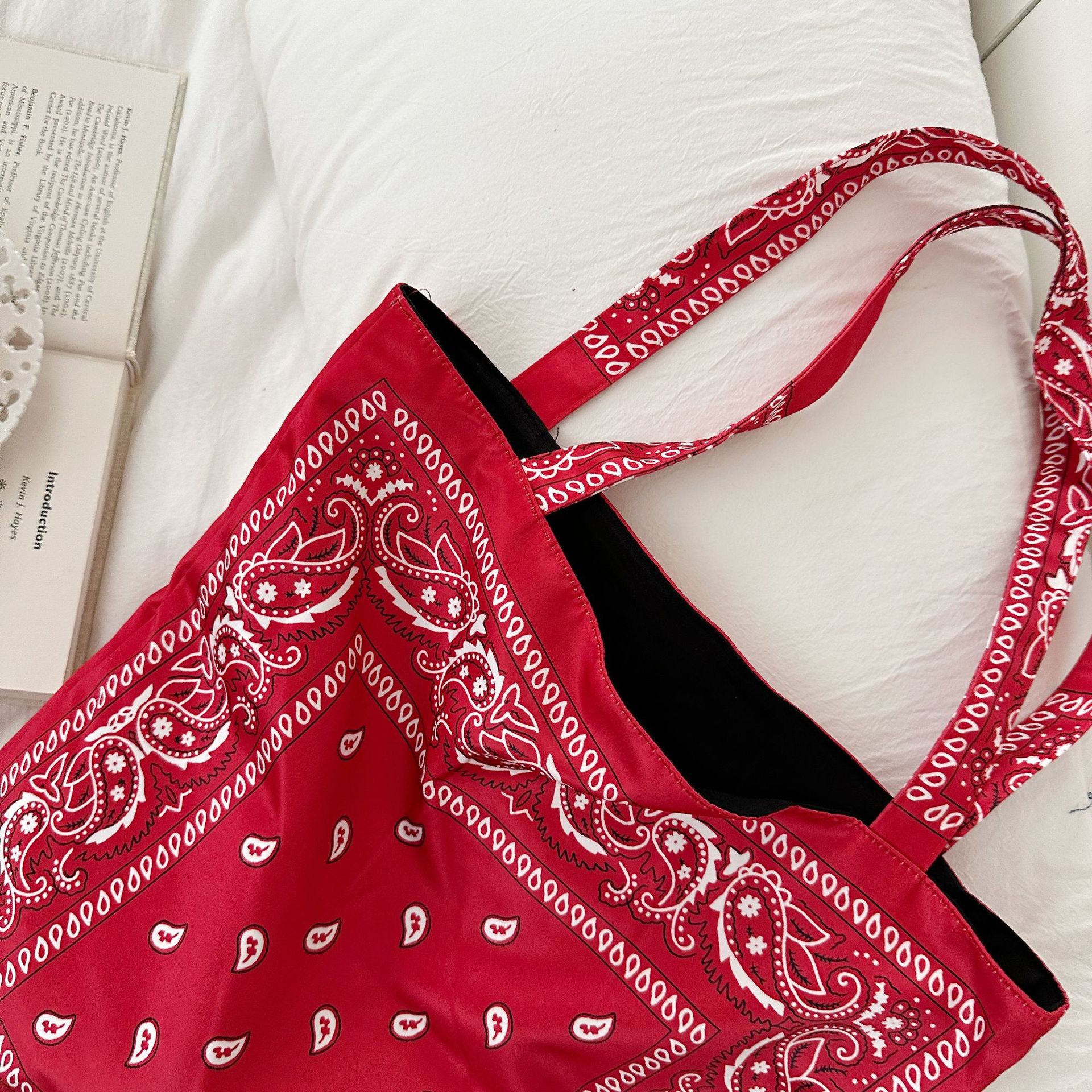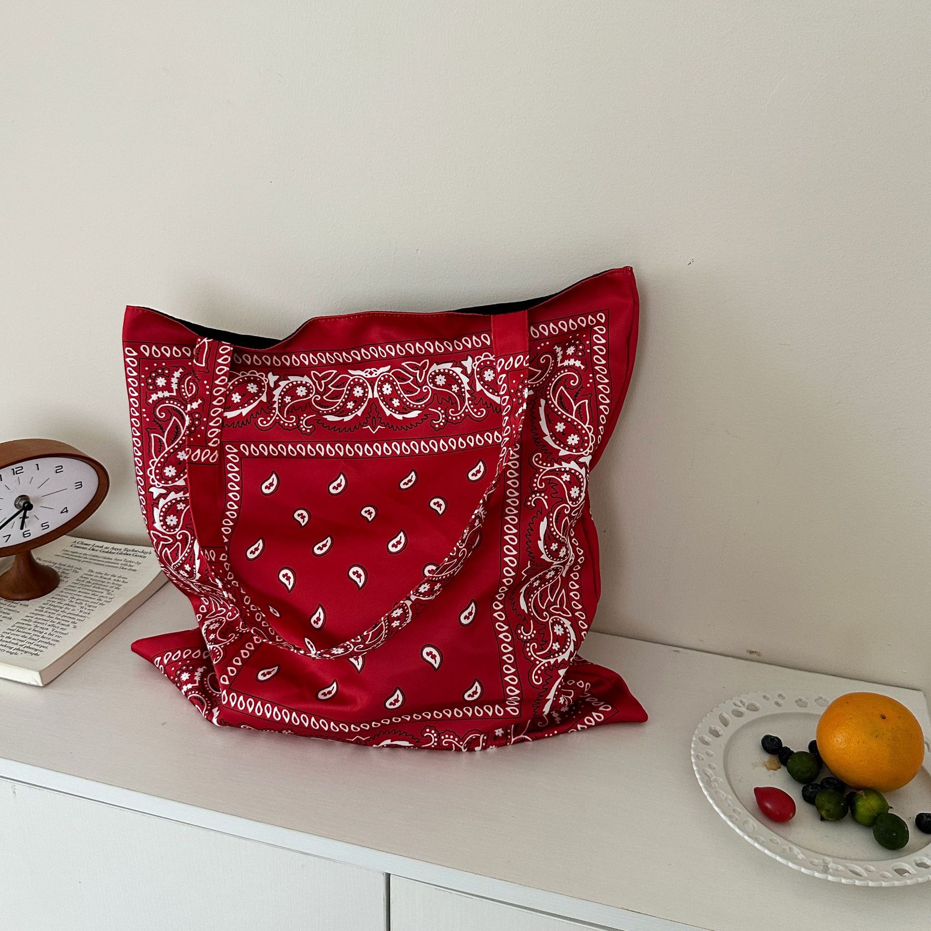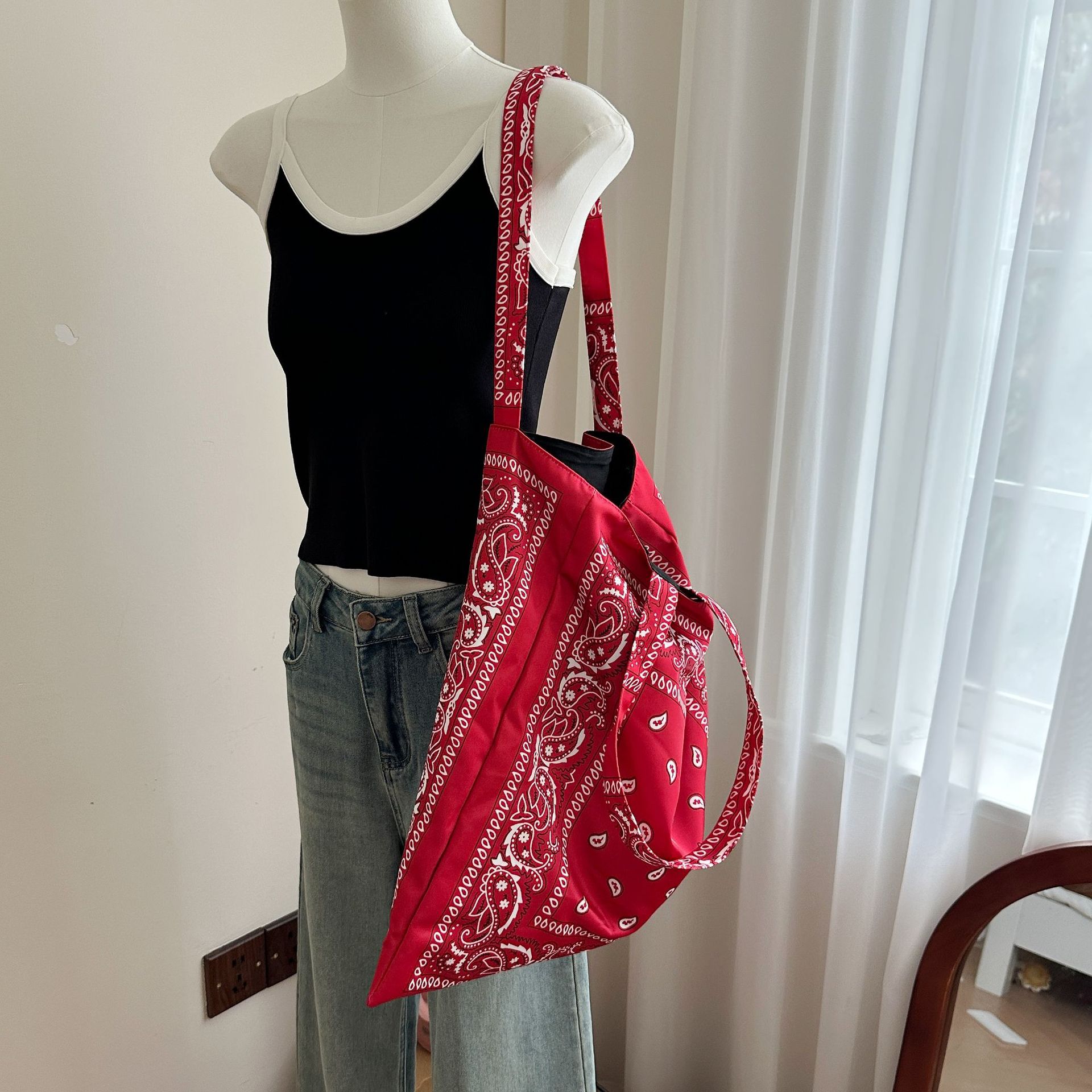 2025 여름 신제품 빅 레드 캐슈 플라워 캔버스 백 에스닉 스타일 다용도 대용량 겨드랑이 숄더 토트 백