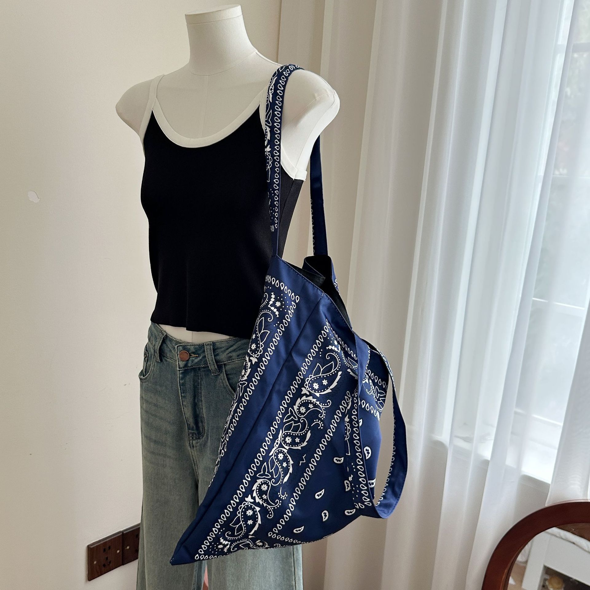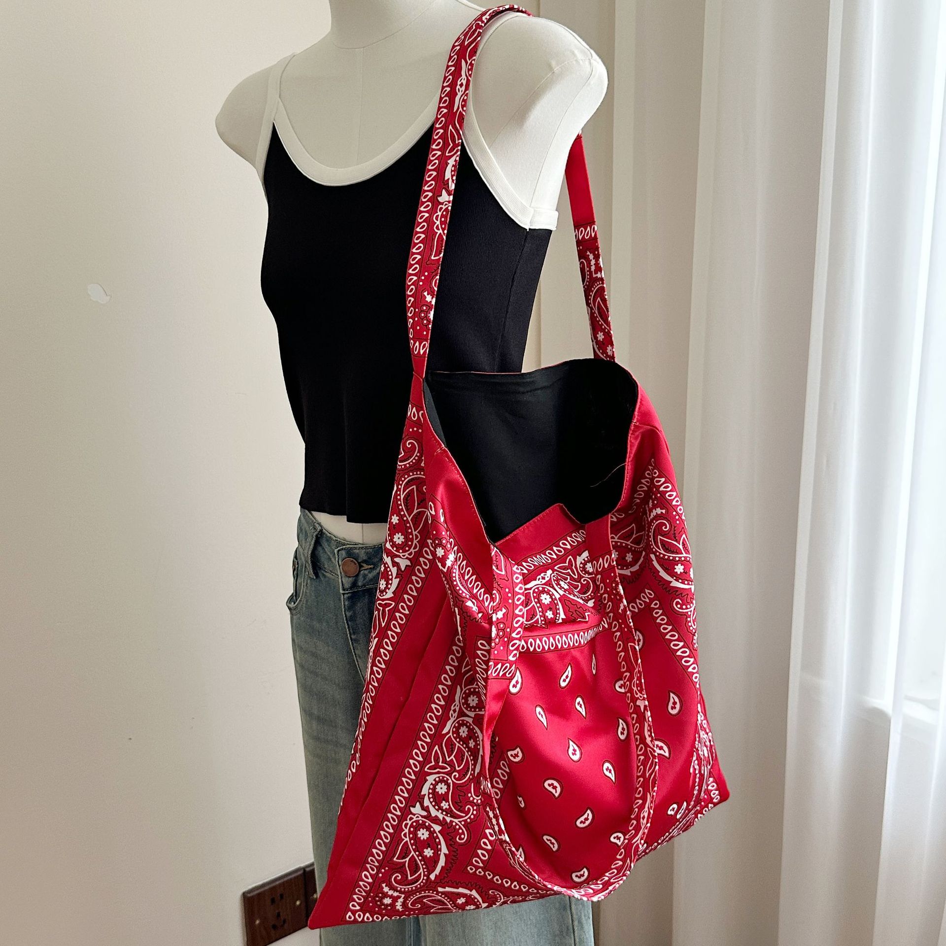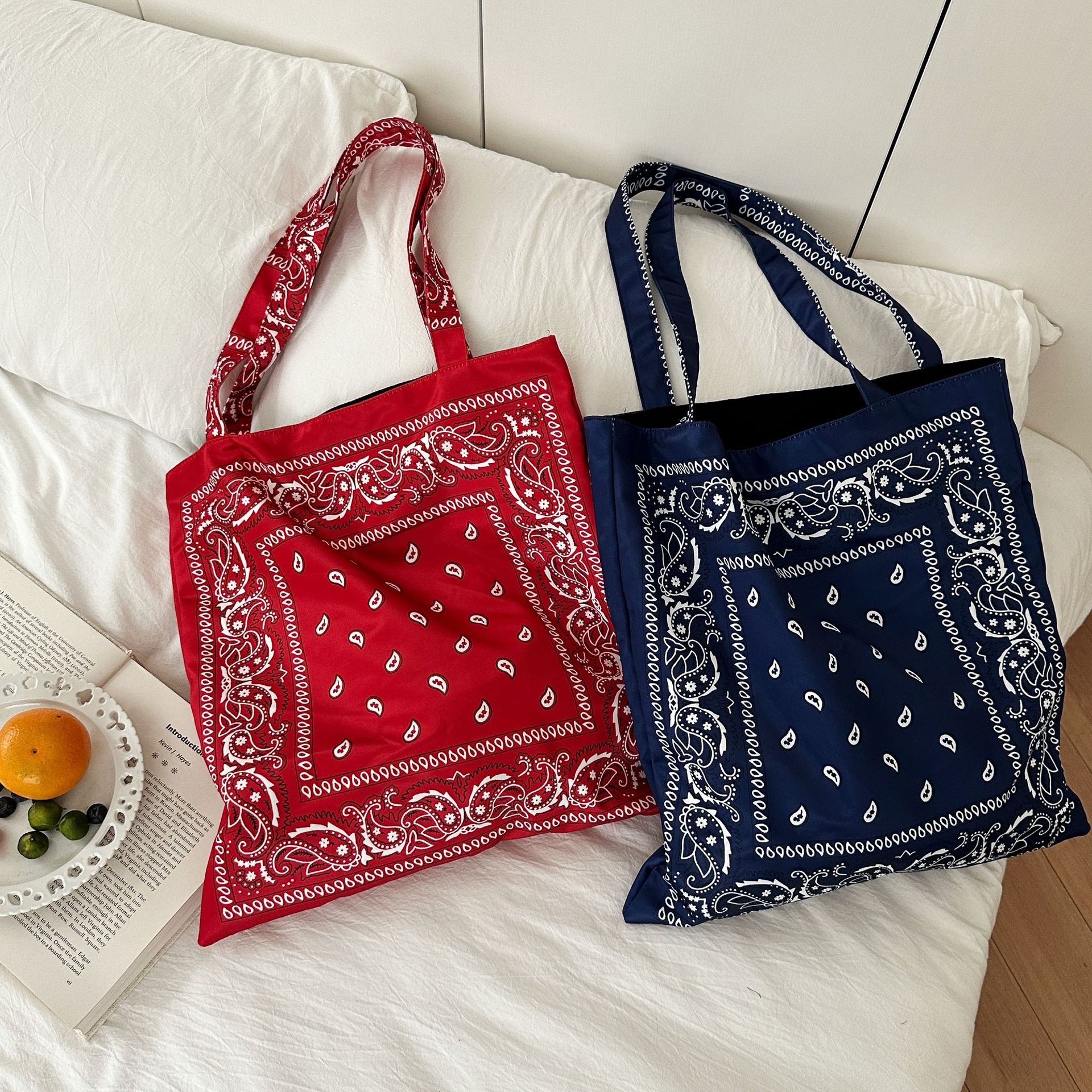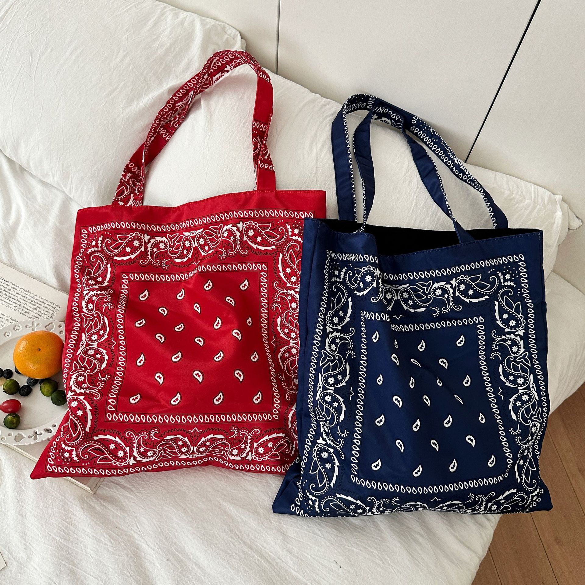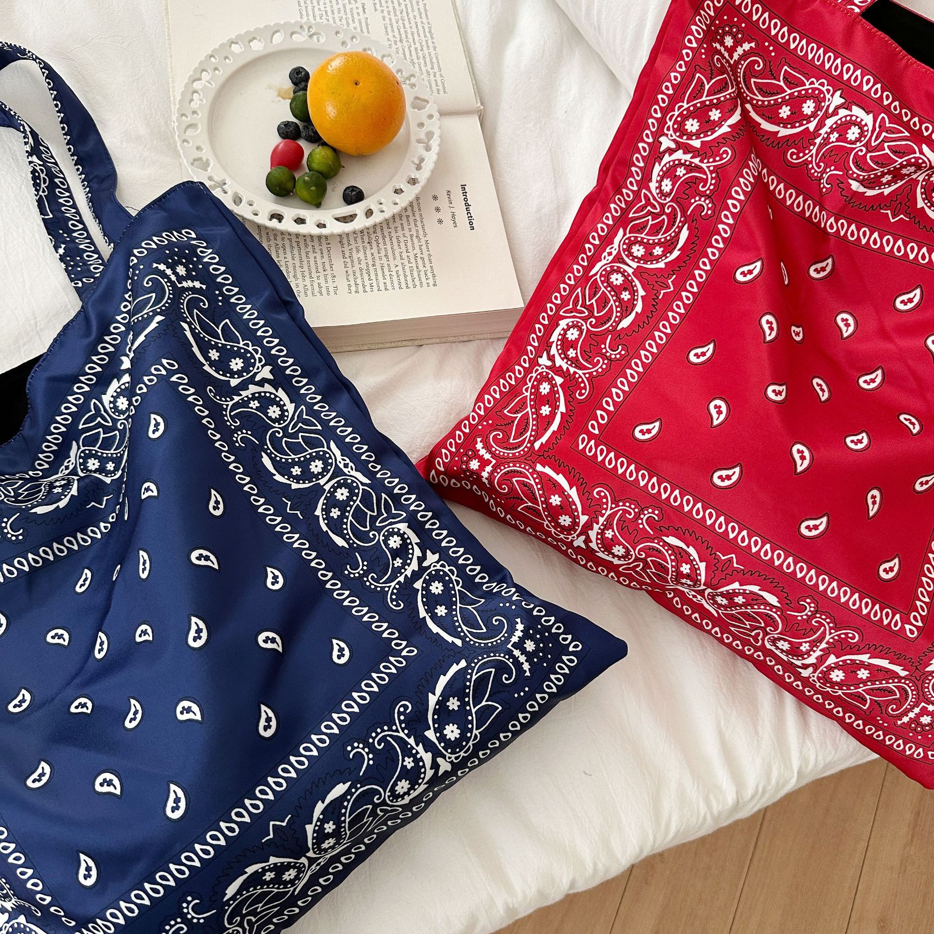 2025 여름 신제품 빅 레드 캐슈 플라워 캔버스 백 에스닉 스타일 다용도 대용량 겨드랑이 숄더 토트 백