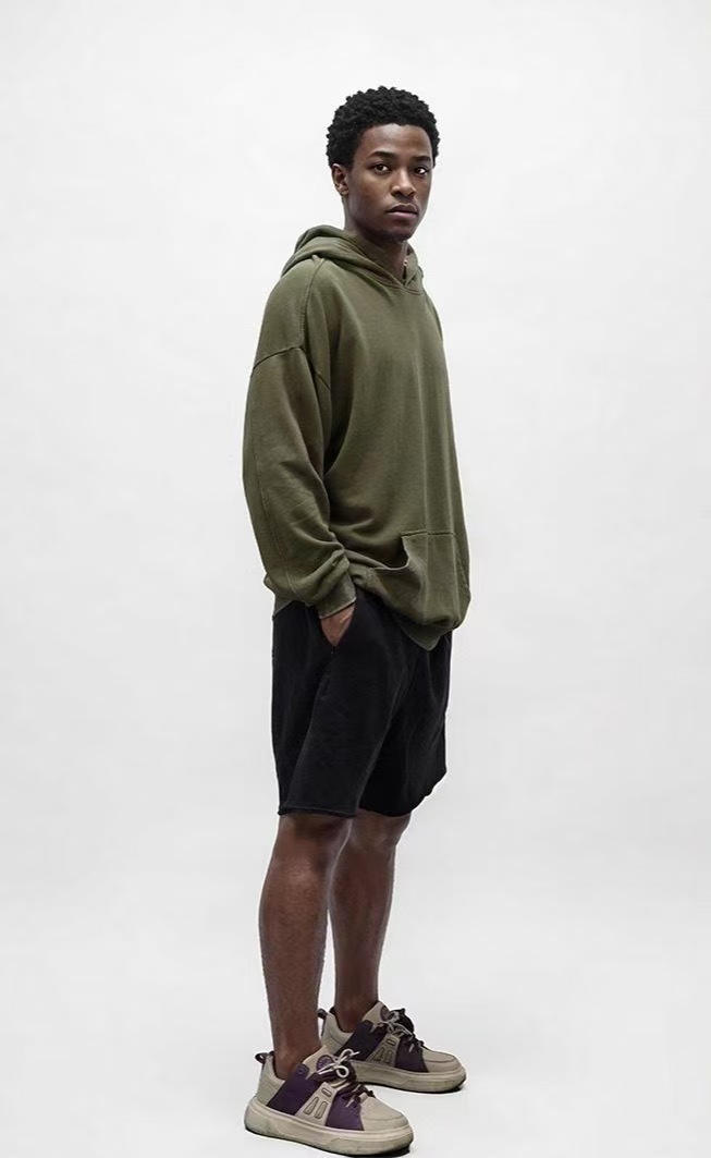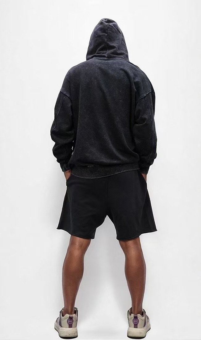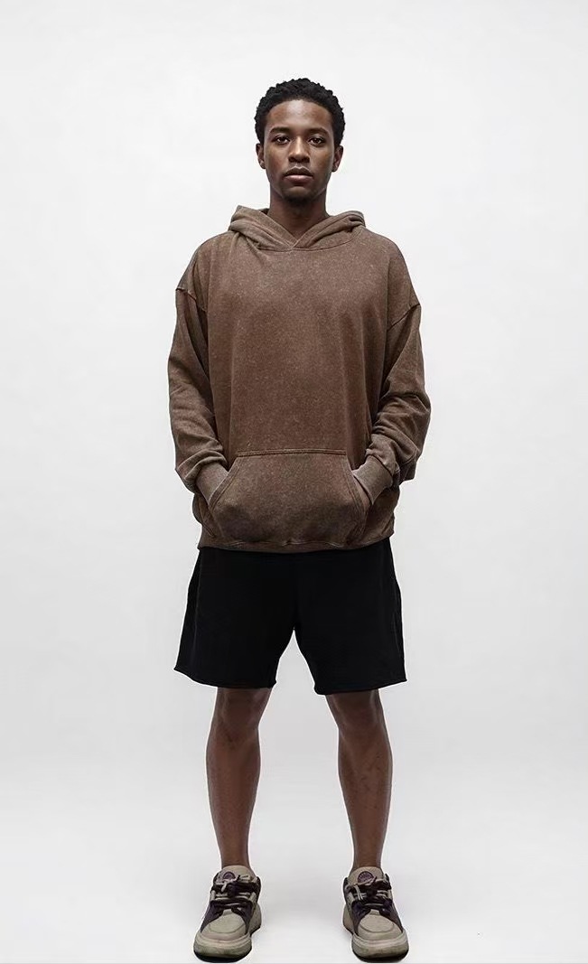 헤비급 350g 미국 트렌디 브랜드 디스트레스드 스웨트셔츠 남성용 레트로 워싱 스웨트셔츠 후드티 루즈 숄더 테리 탑