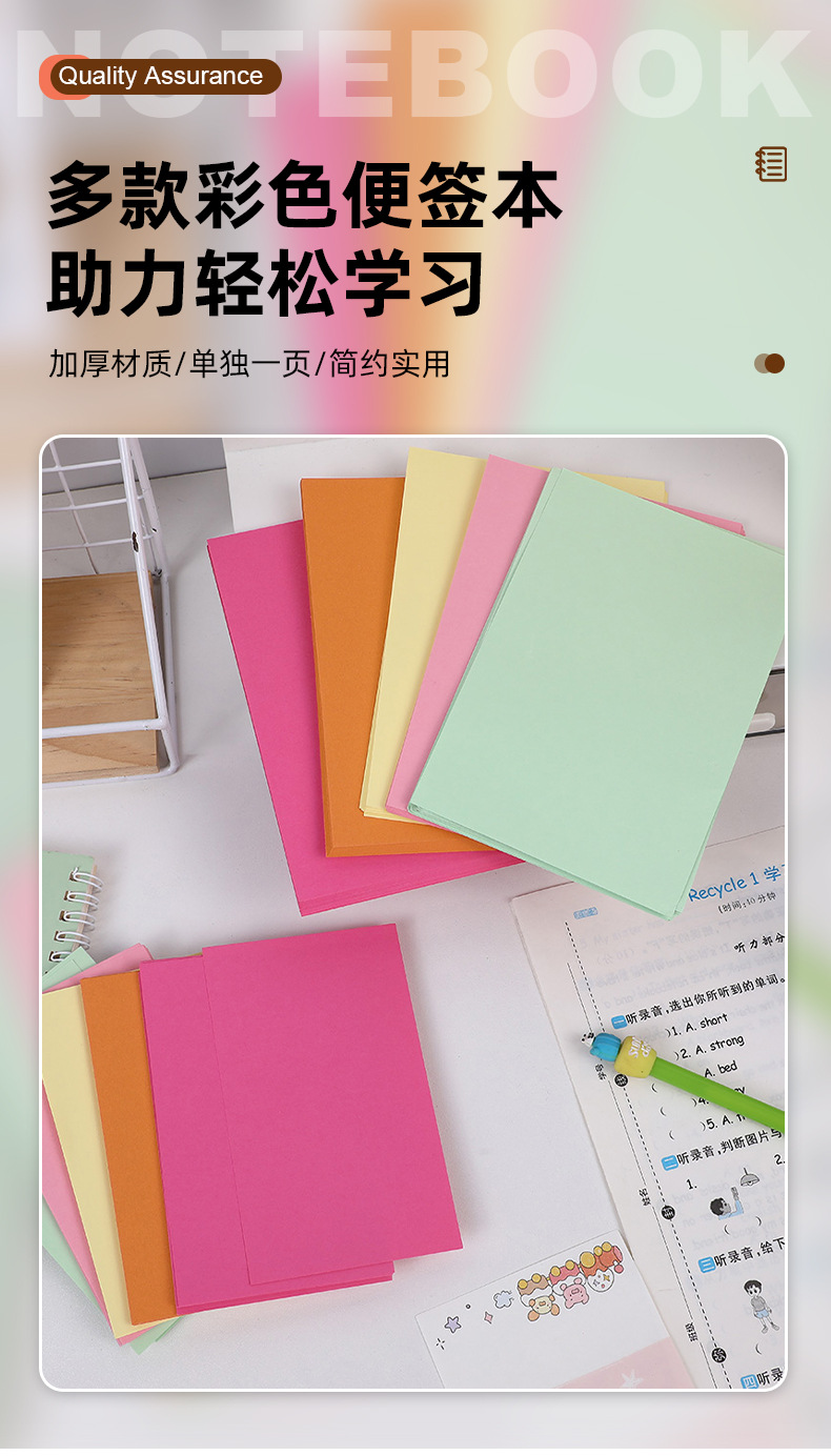 다채로운 메모 패드, 사무실용 간단한 스타일 메모 패드, 고급스러운 단색 학생 전용 메시지 메모 용지