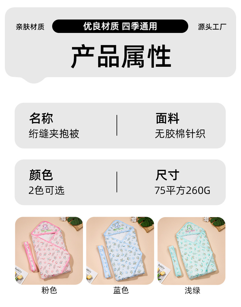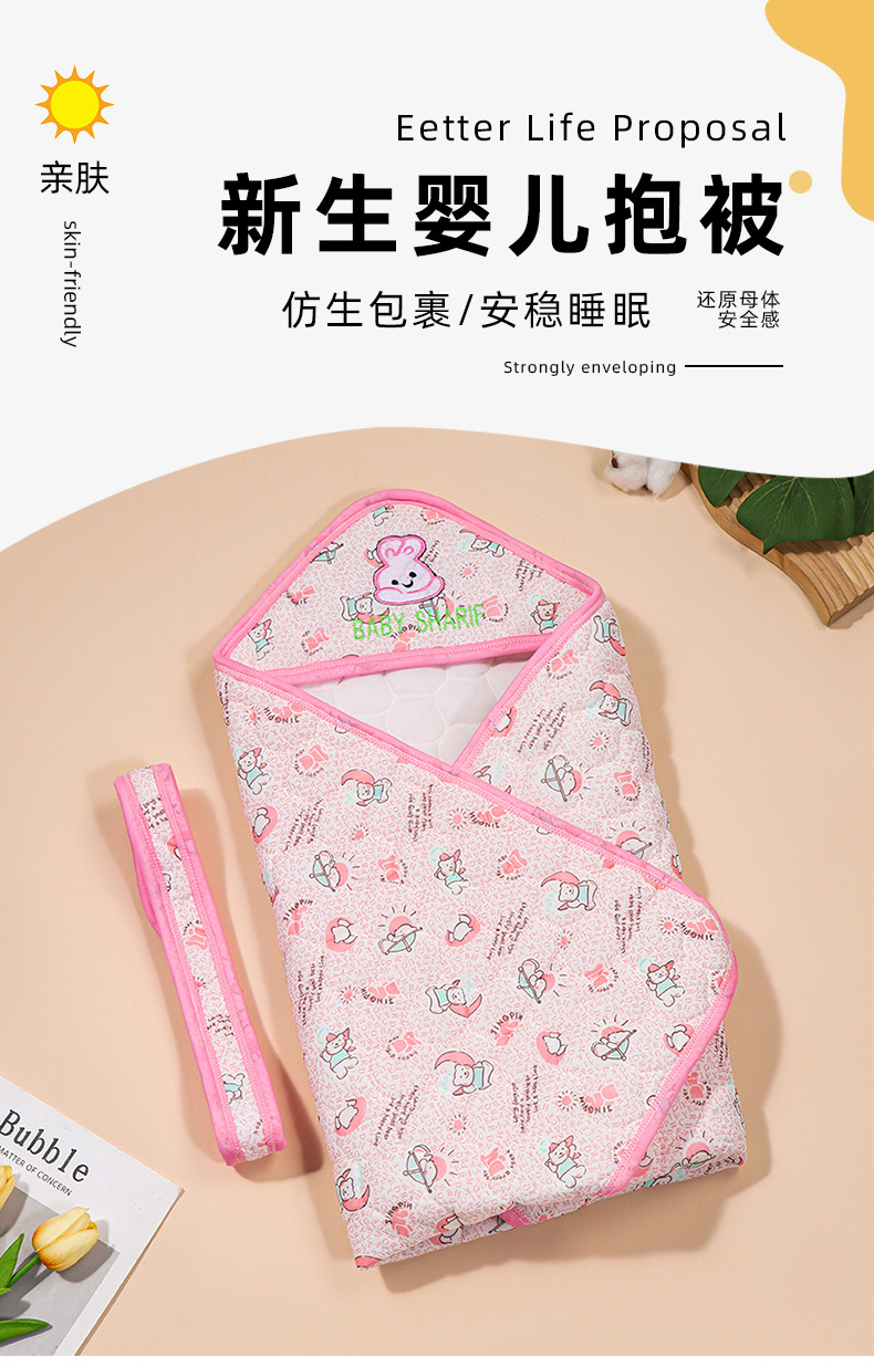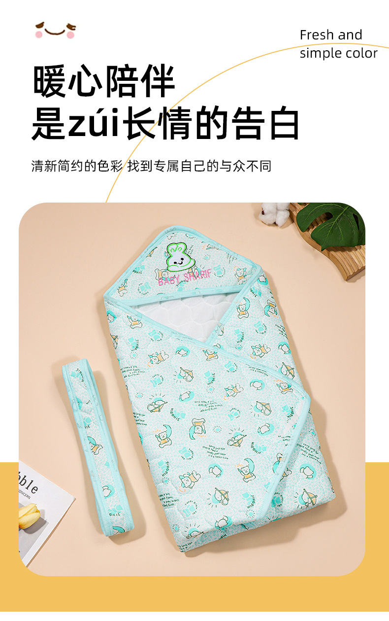 아기 이불, 누빔 처리된 무접착 솜, 신생아용 얇은 이불, 속싸개, 분만실 용품, 부드러운 소재