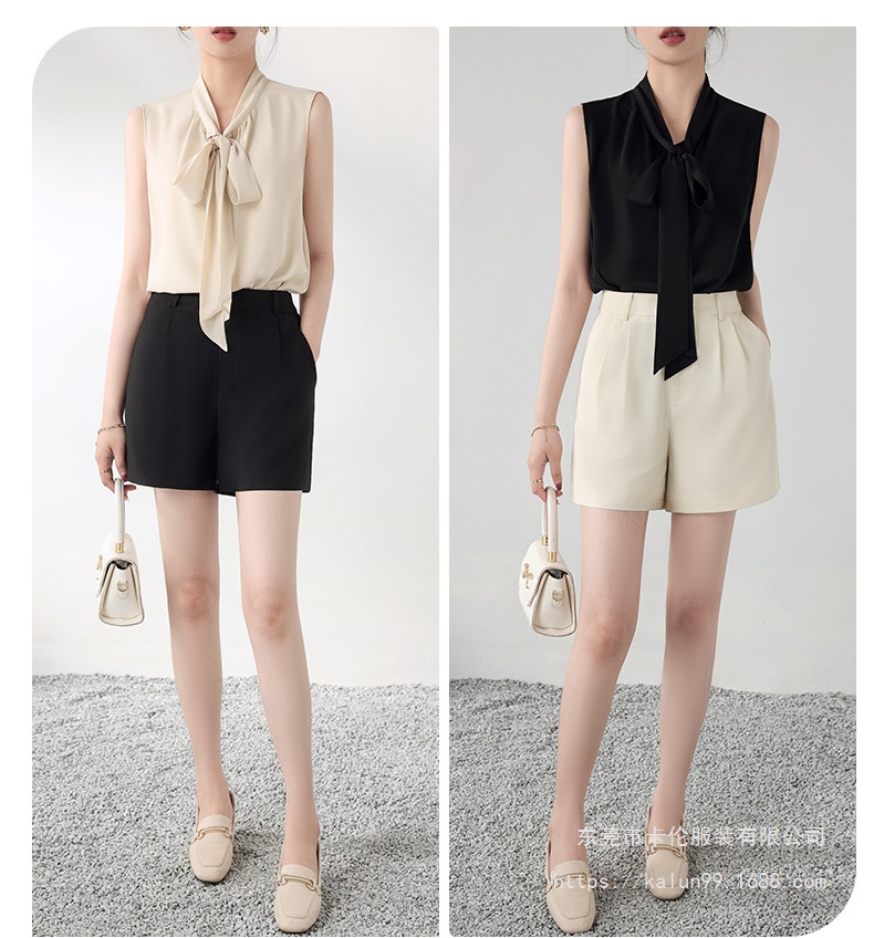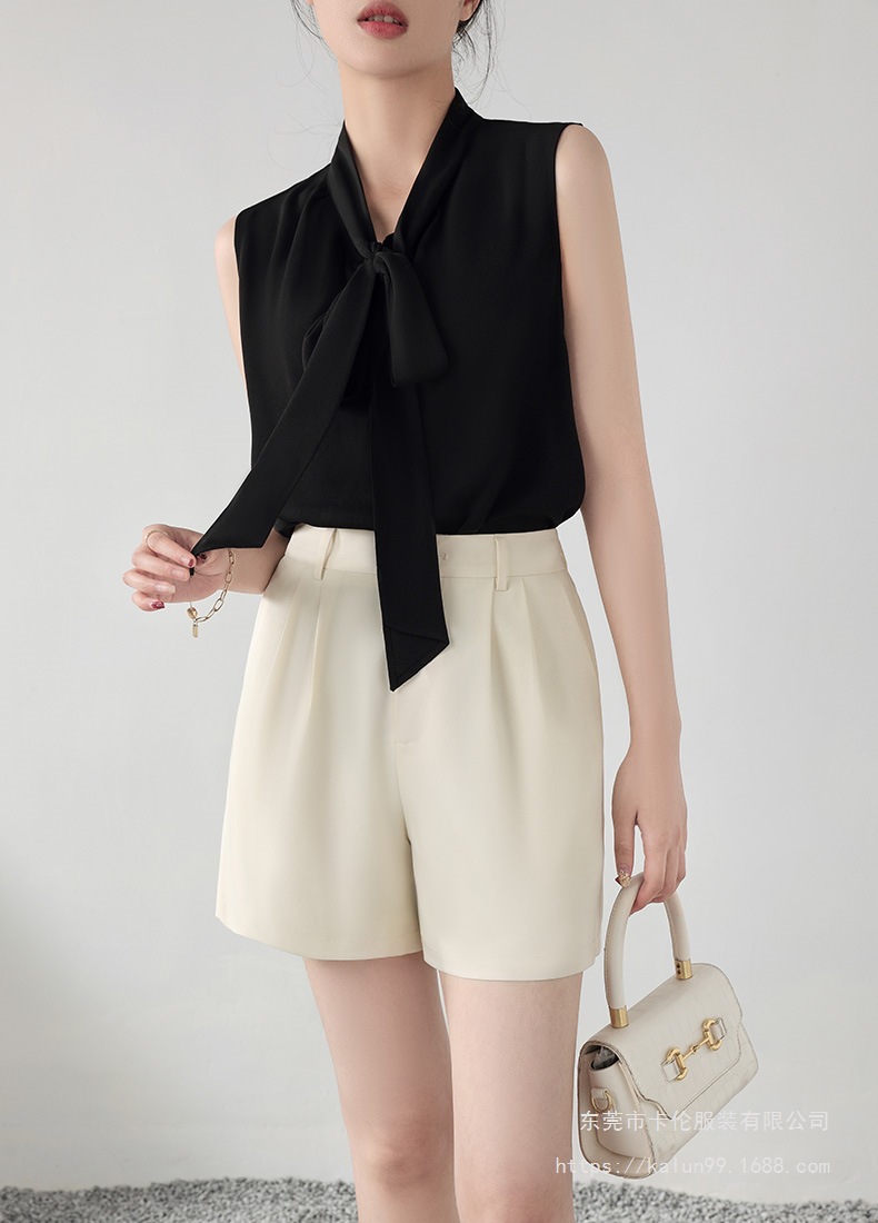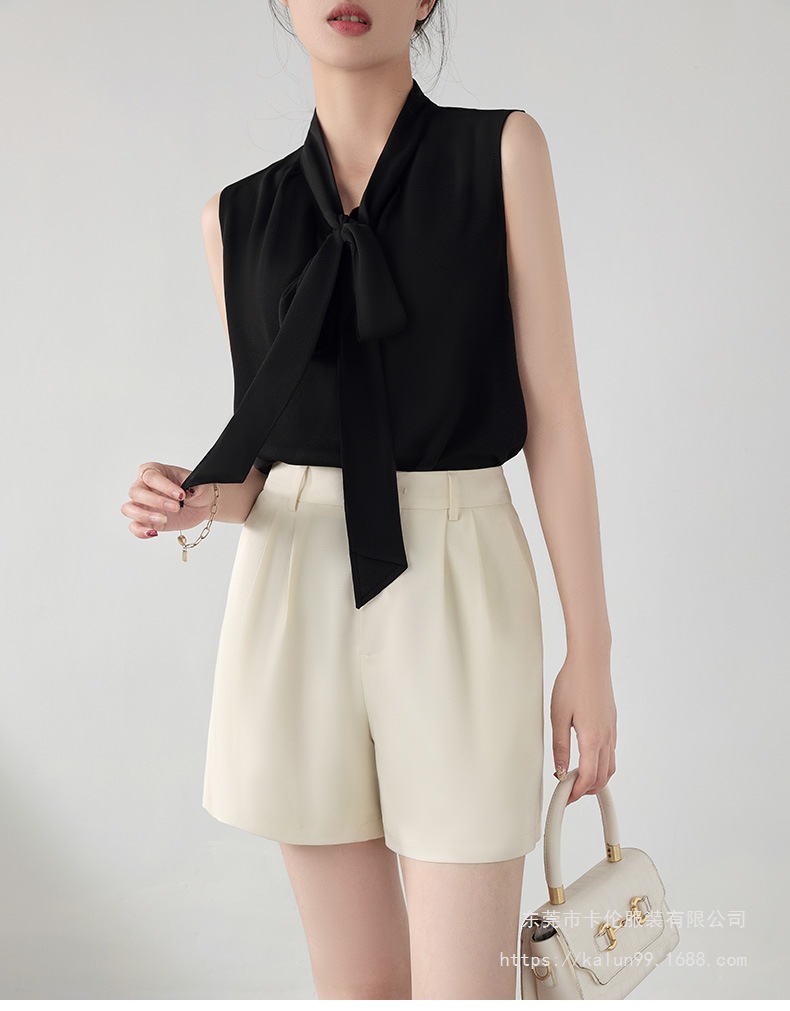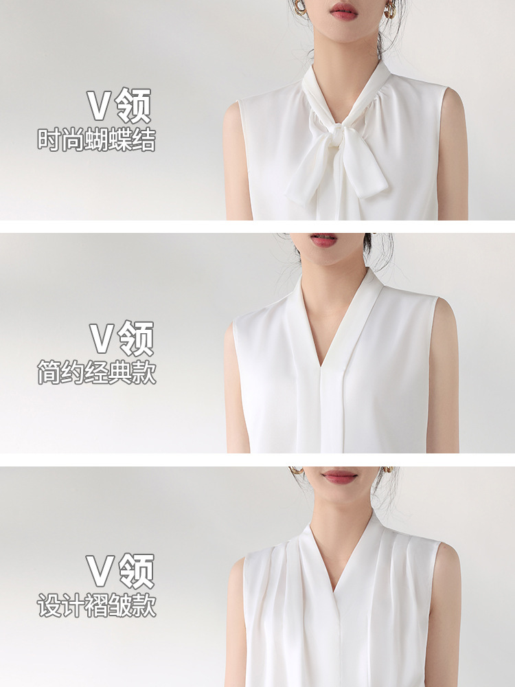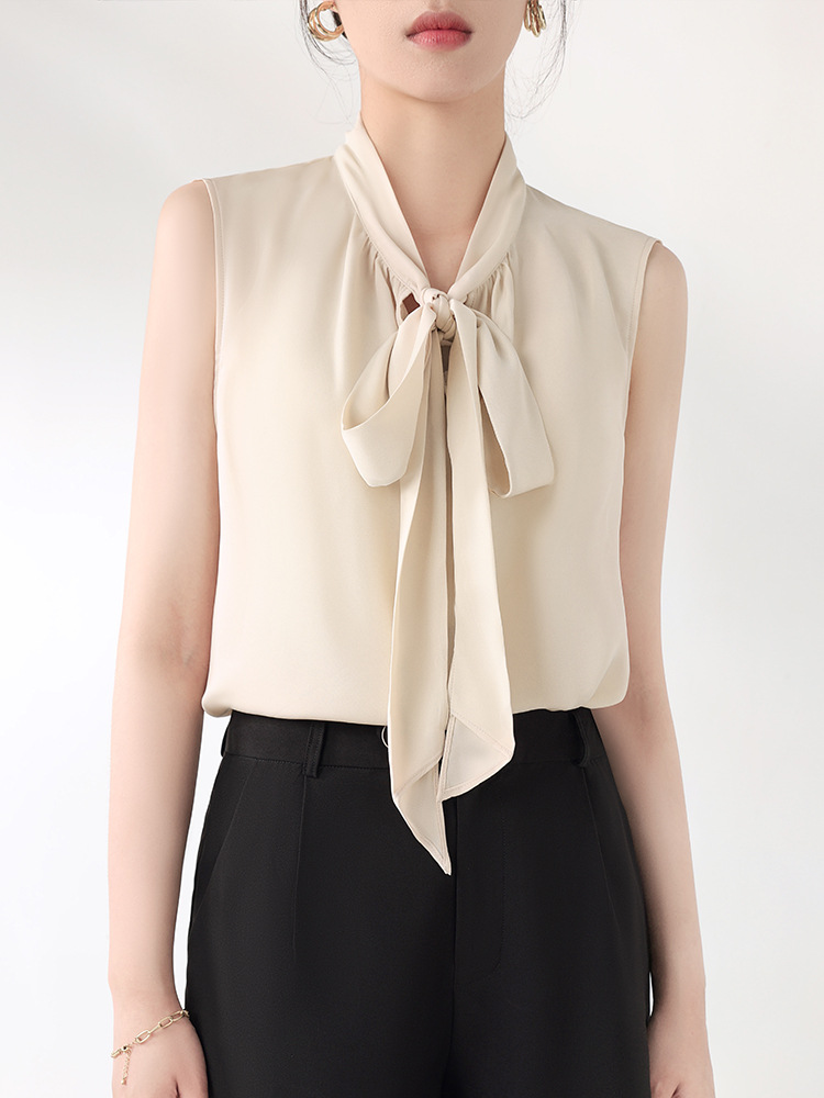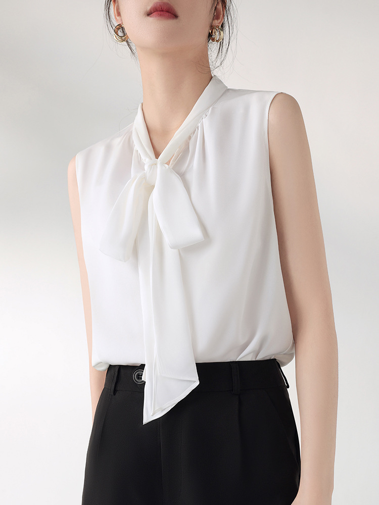 여름에 밖에서 입을 수 있는 여성용 화이트 민소매 조끼 보우 셔츠, 하이엔드 슈트, 베이스 레이어 셔츠 탑