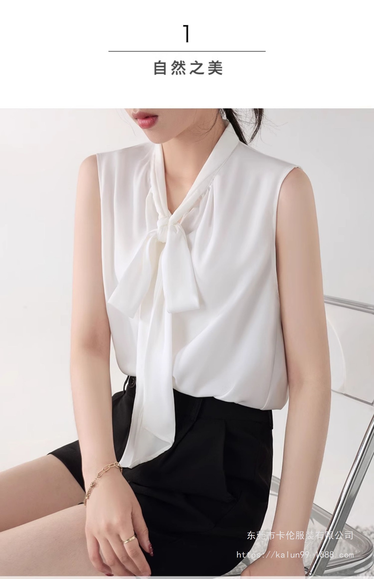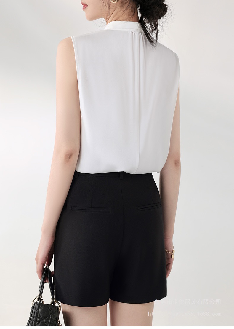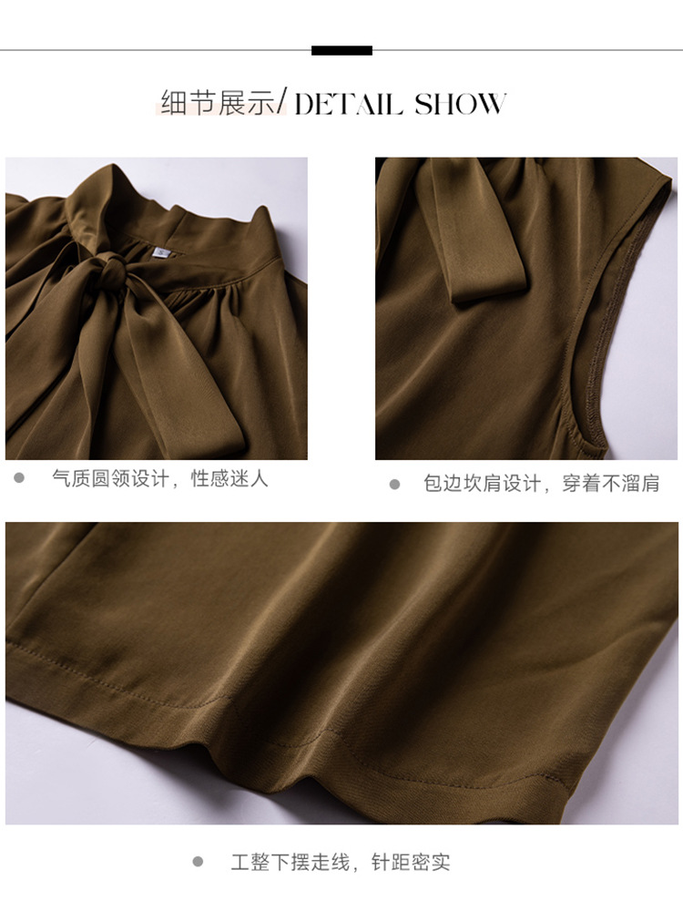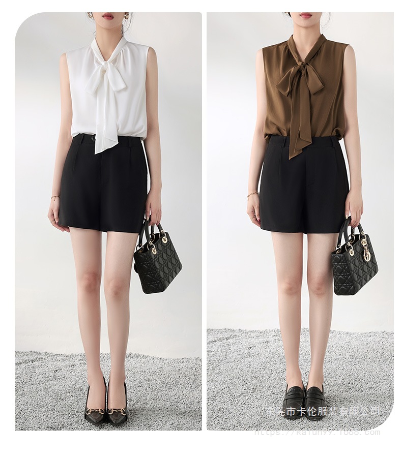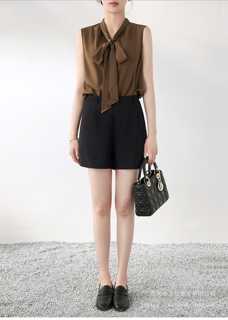여름에 밖에서 입을 수 있는 여성용 화이트 민소매 조끼 보우 셔츠, 하이엔드 슈트, 베이스 레이어 셔츠 탑