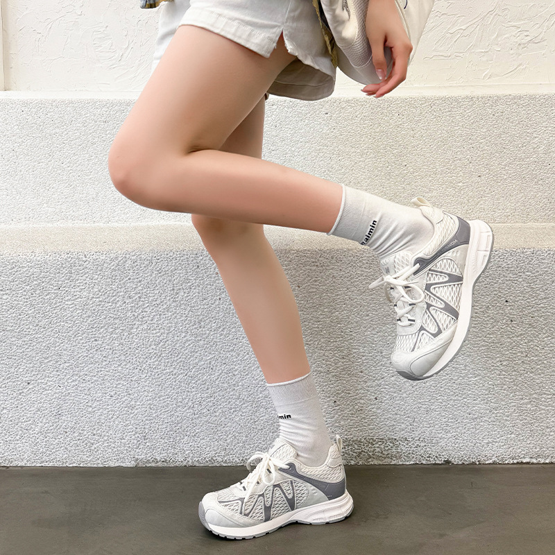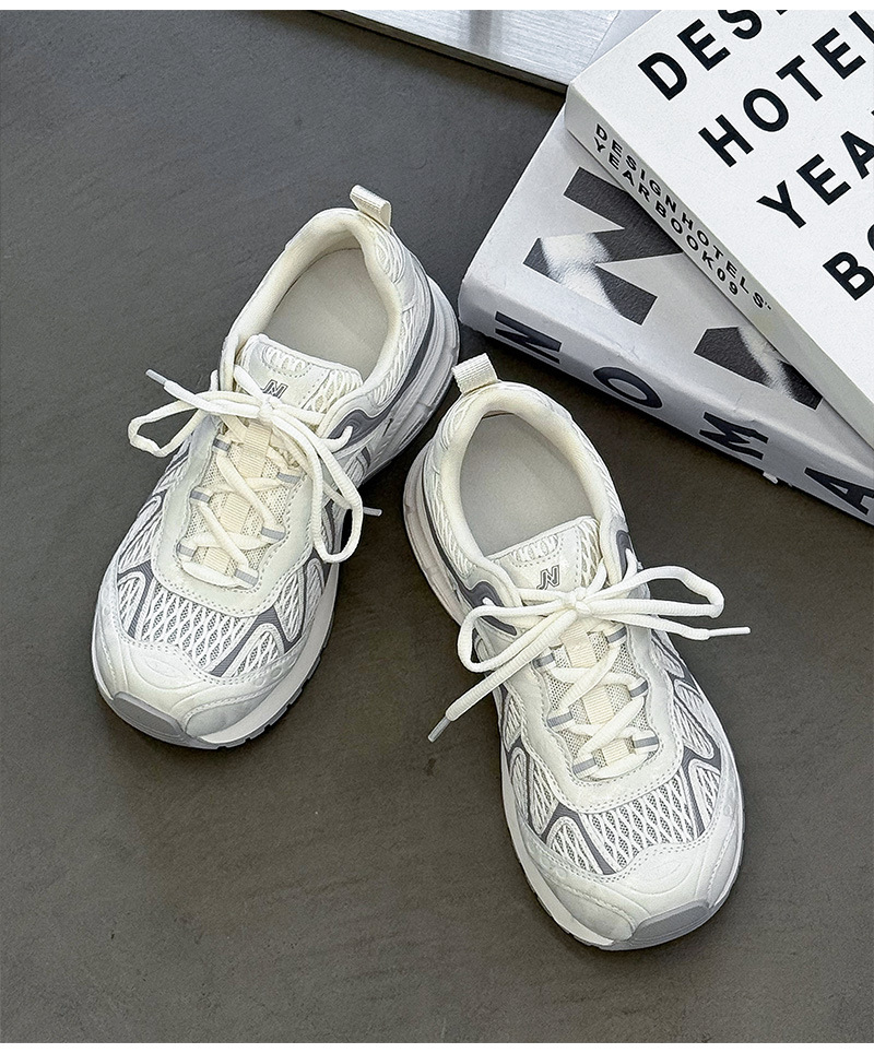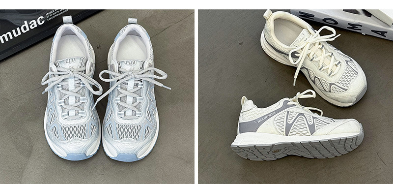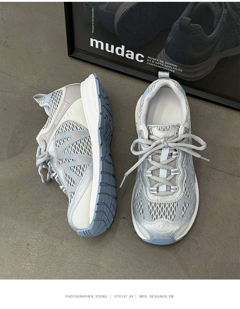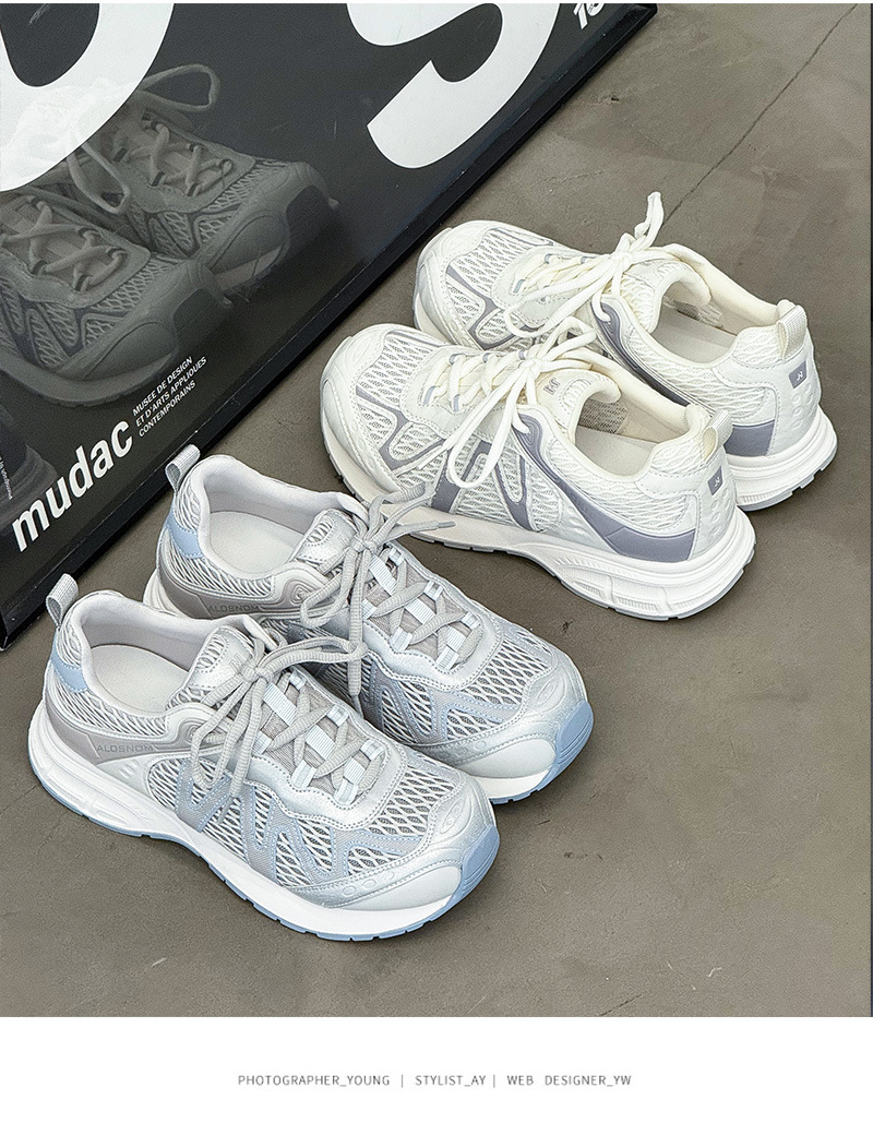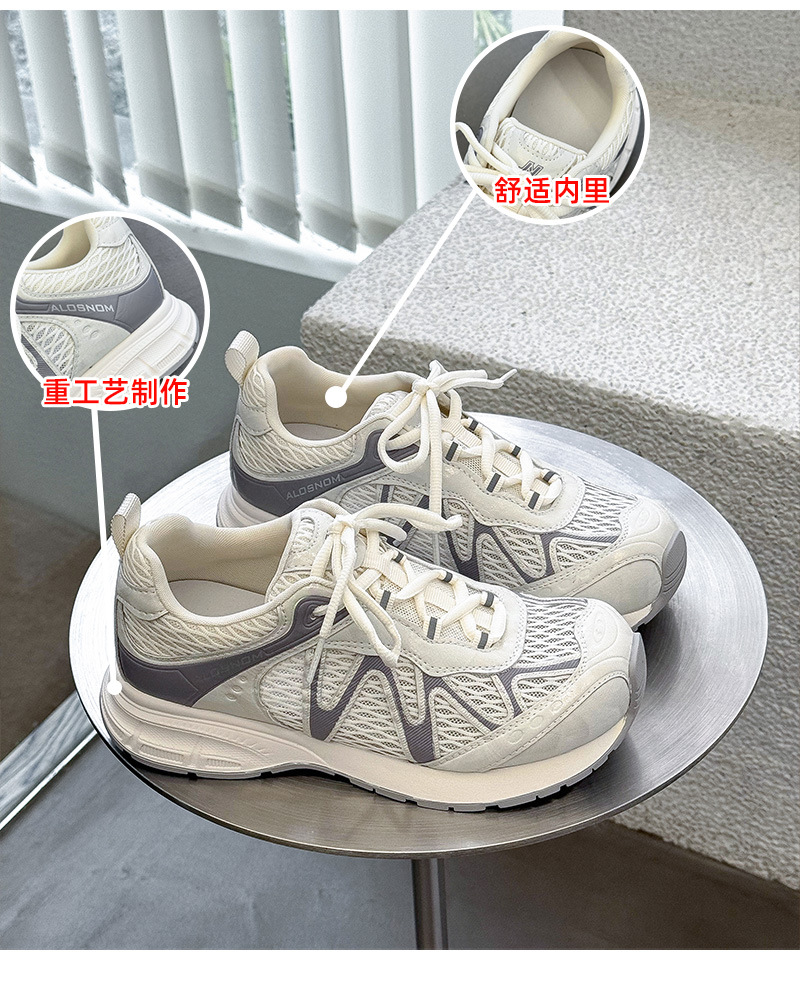 여성을위한 메쉬 통기성 아빠 신발 2025 여름 새로운 중공 캐주얼 스포츠 하이킹 신발 다목적 경량 조깅 신발
