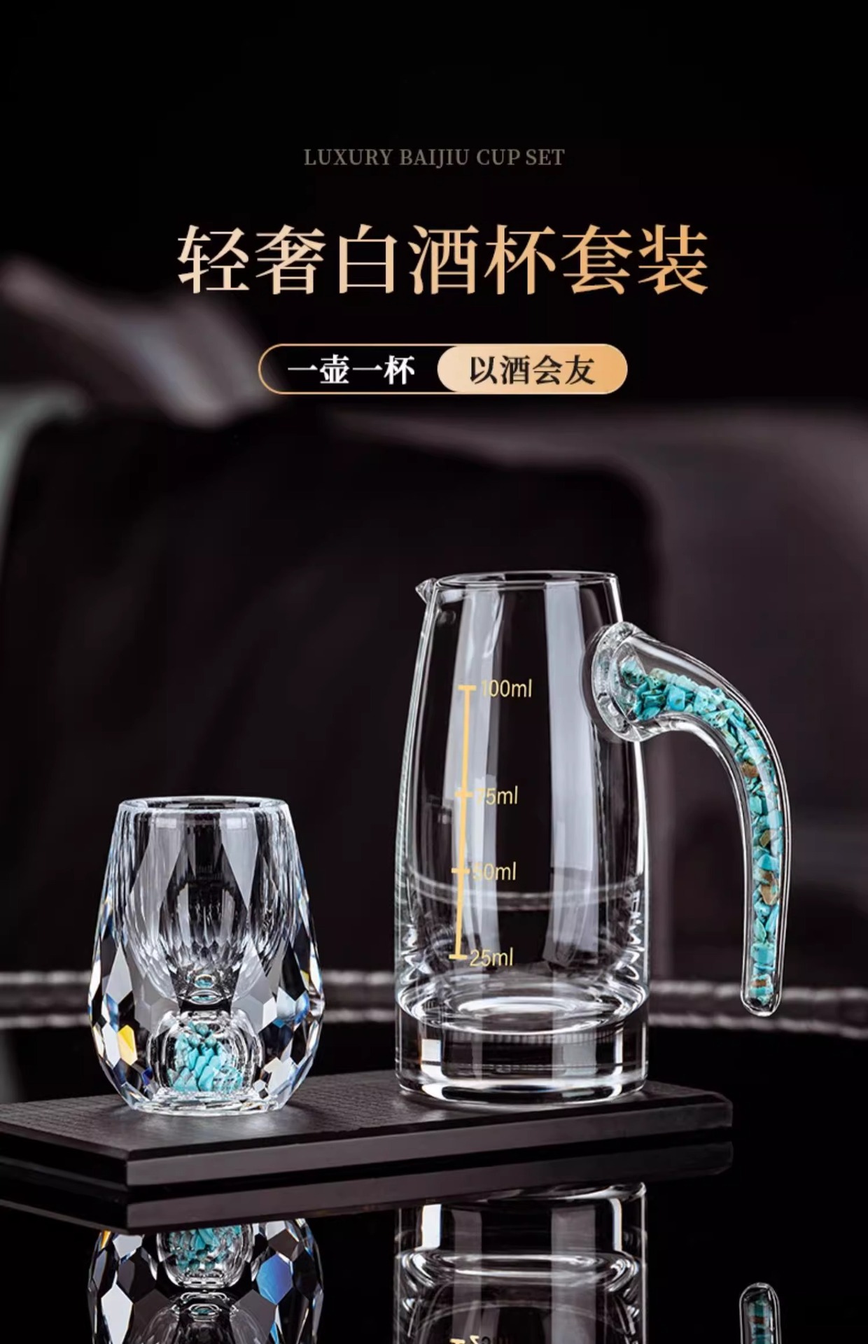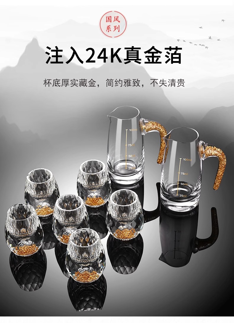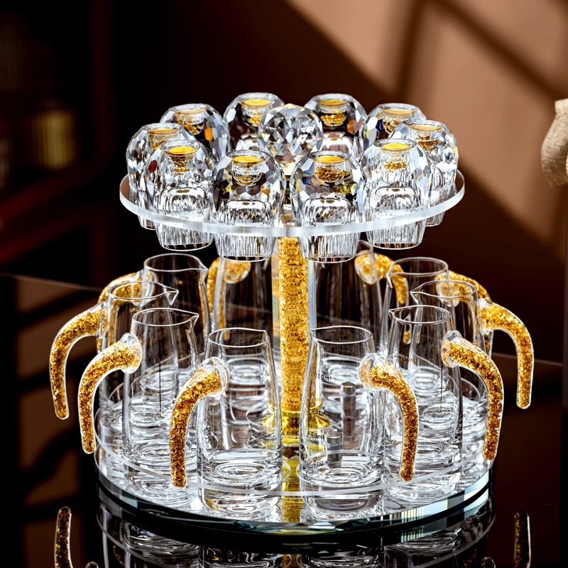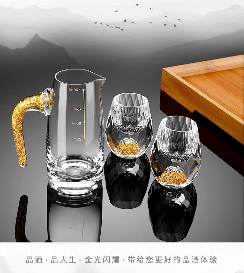고급 금박 두꺼운 주류 분배기, 백주잔, 크리스탈 유리잔, 가정용 눈금이 있는 작은 술잔, 중국식 술잔, 주류 용품