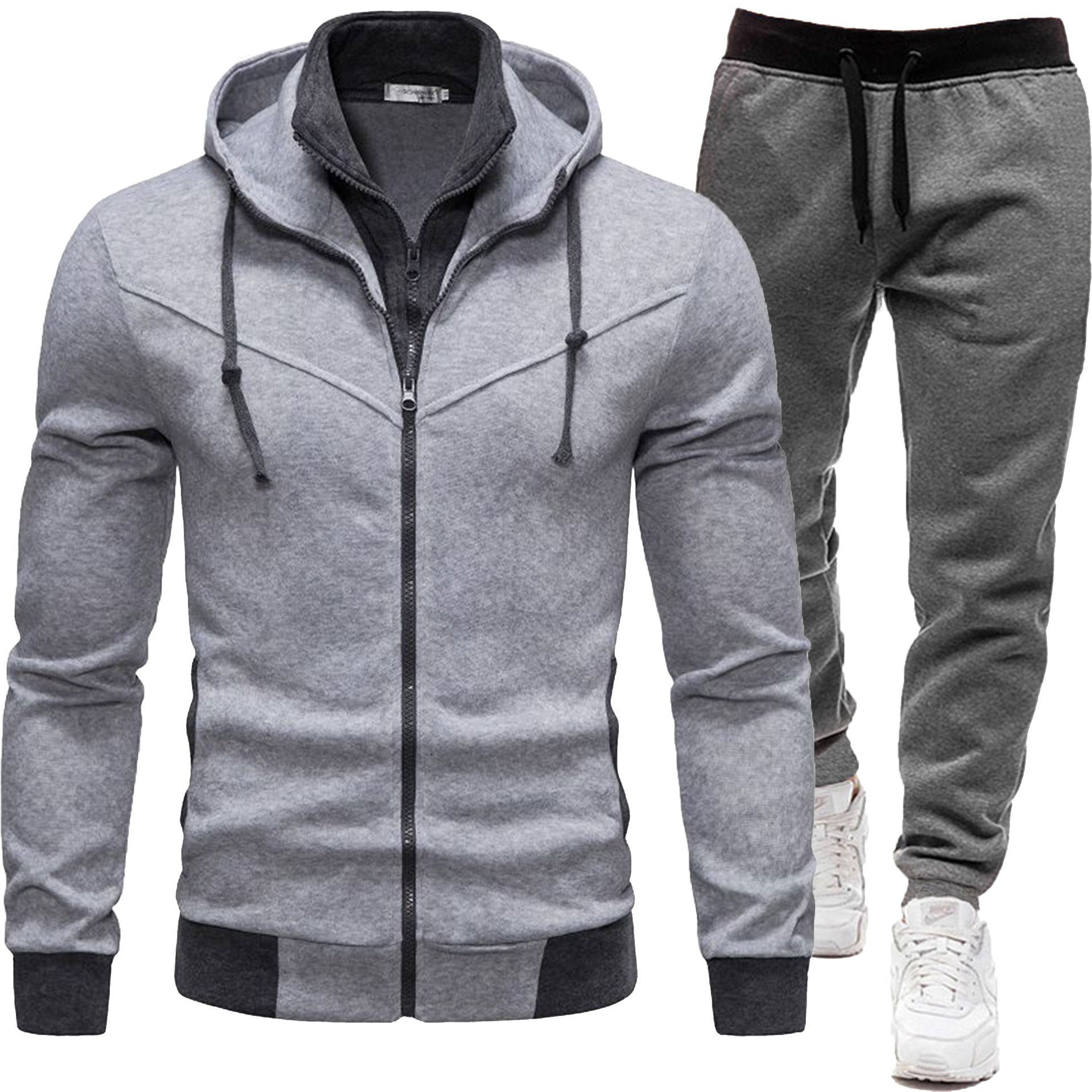 가을, 겨울 스포츠 스플 라이스 남성 자켓 캐주얼 긴팔 바지 후드 스포츠 남성 정장 투피스 세트