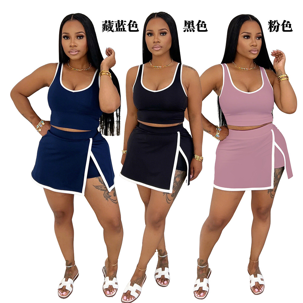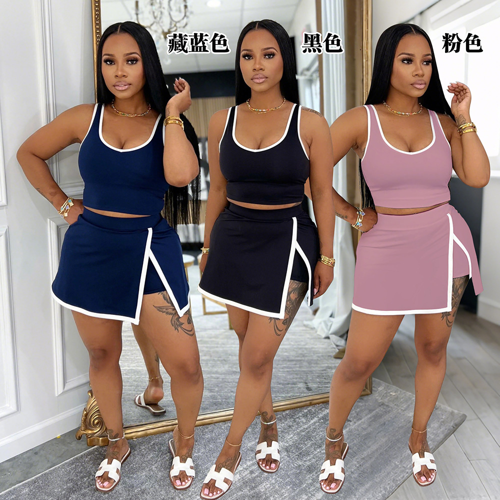 CY901864 유럽과 미국의 아마존 대외 무역 캐주얼 스포츠 정장 세련된 바지와 서스펜더 조끼 투피스 세트