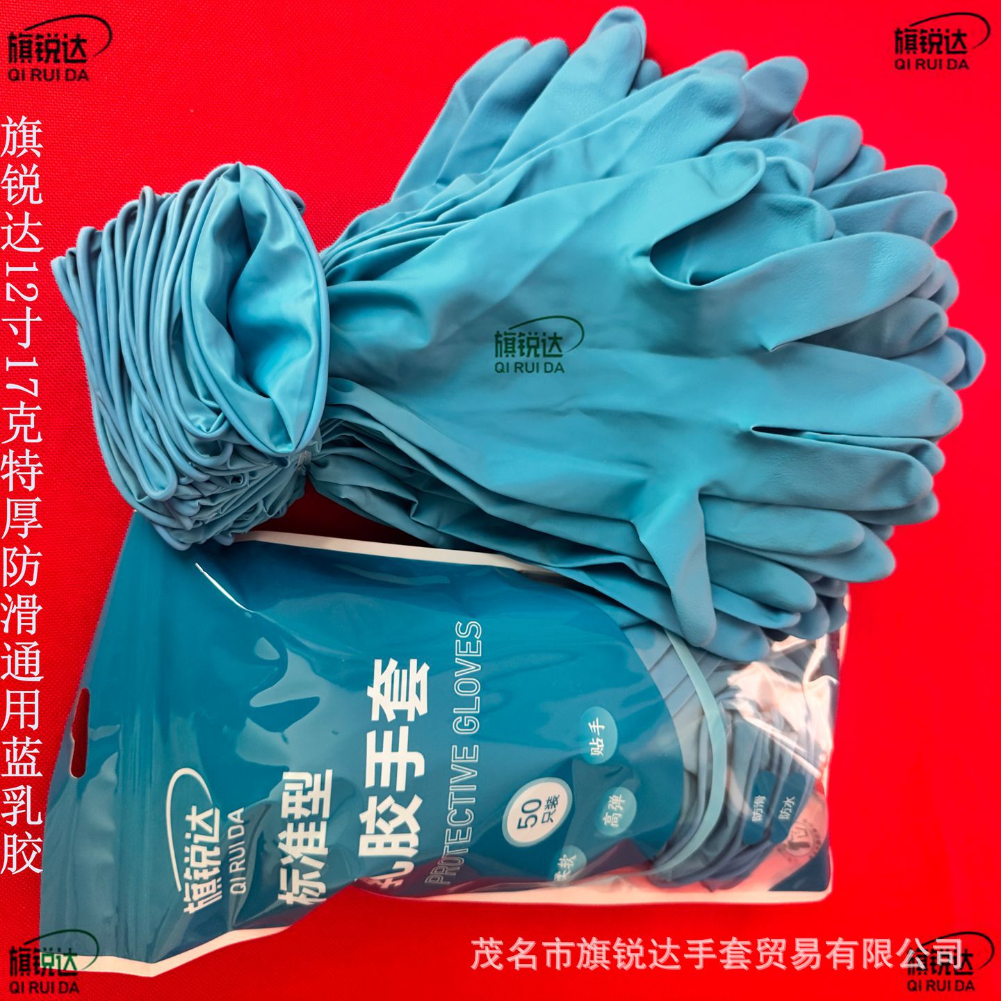 Qiruida (50개/XL 사이즈) 12inch 두꺼운 미끄럼 방지 범용 블루 라텍스