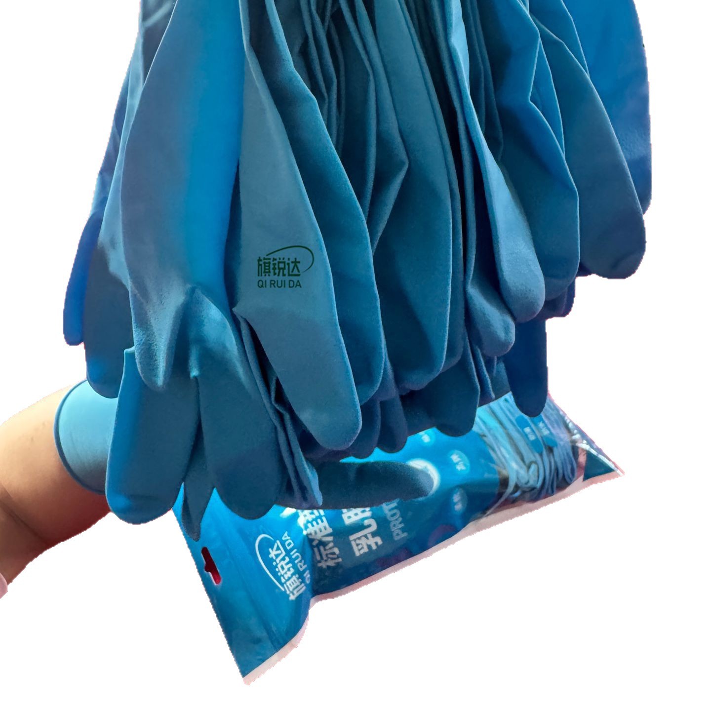 Qiruida (50개/L 사이즈) 12inch 두꺼운 미끄럼 방지 범용 블루 라텍스