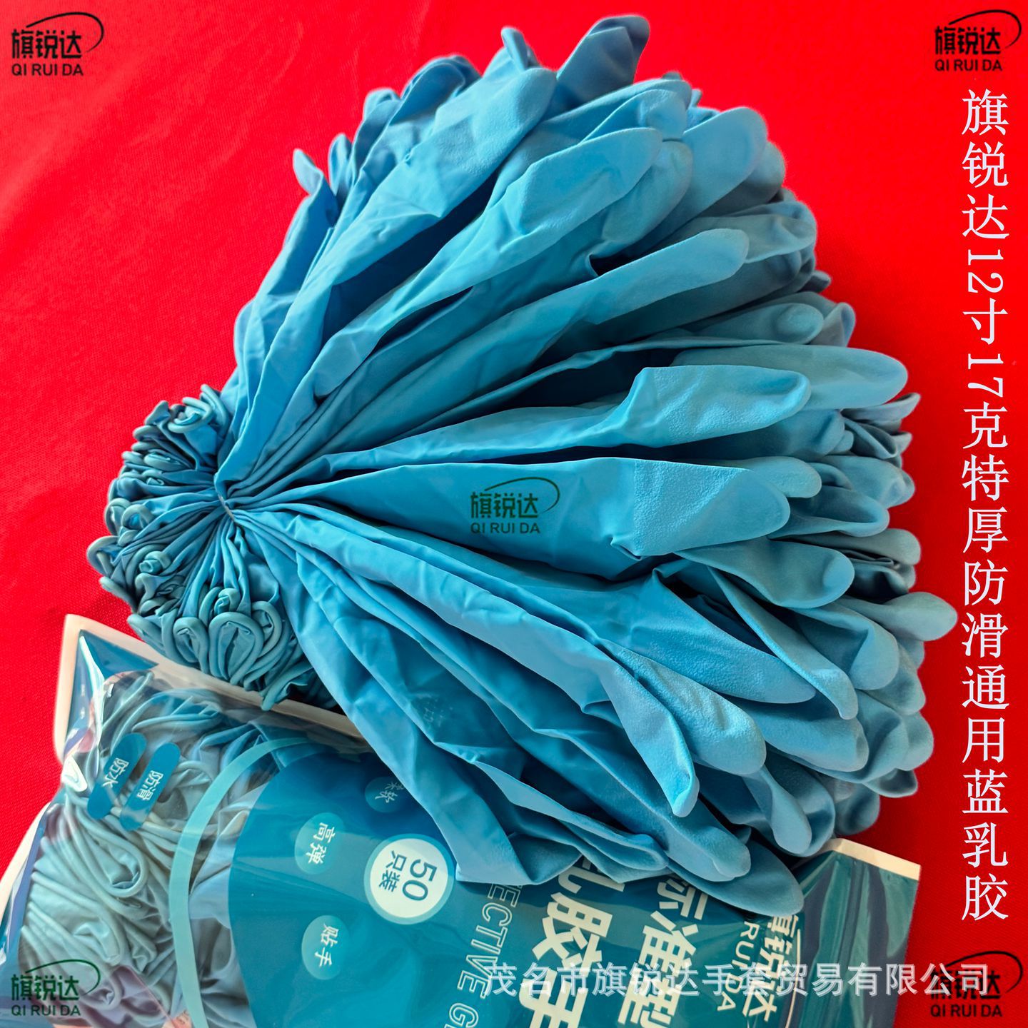 Qiruida (50개/M 사이즈) 12inch 두꺼운 미끄럼 방지 범용 블루 라텍스