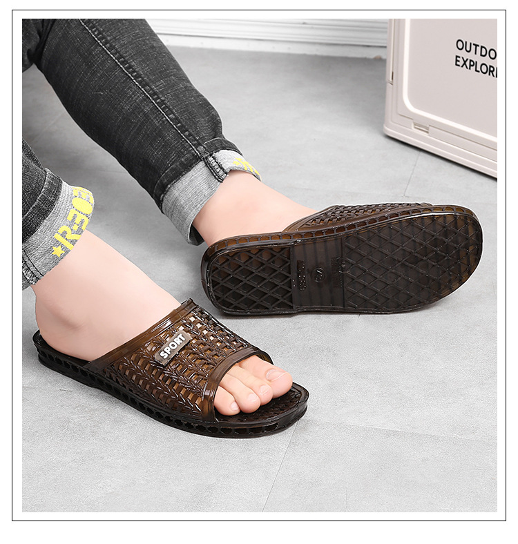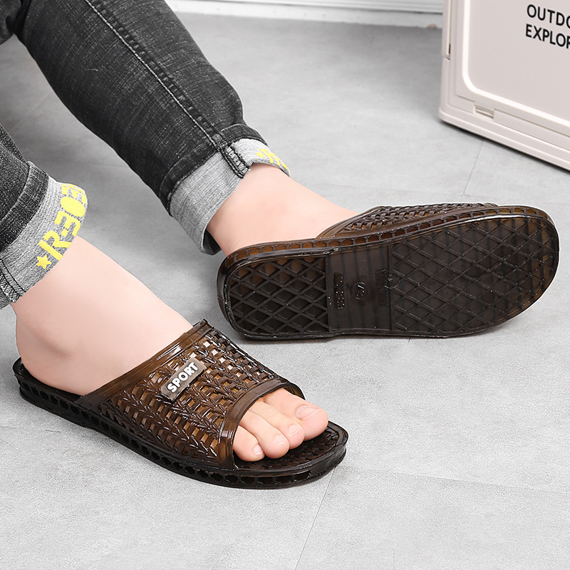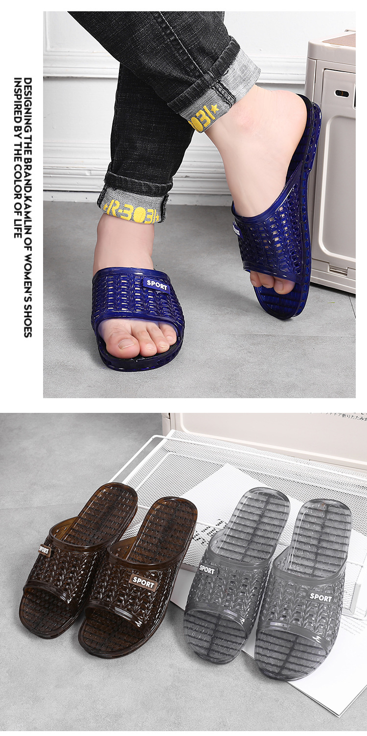 여름 남성용 크리스탈 슬리퍼, 다재다능하고 통기성이 뛰어나며 집에서 사용할 수 있는 복고풍 미끄럼 방지, 냄새 방지, 내마모성, 속건성 욕실 샤워 슬리퍼