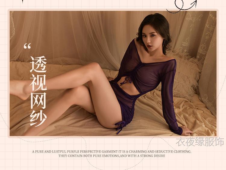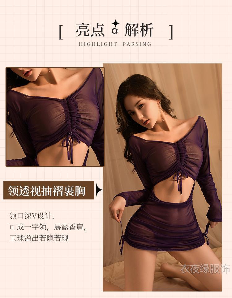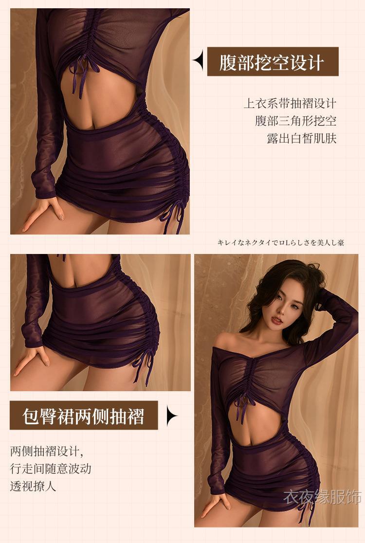 Yiyeyuan 섹시한 속옷, 긴팔 힙 커버 드레스, 열정적이고 섹시한 유니폼, 유혹적인 잠옷 세트