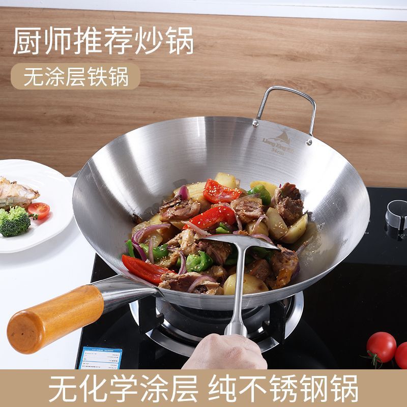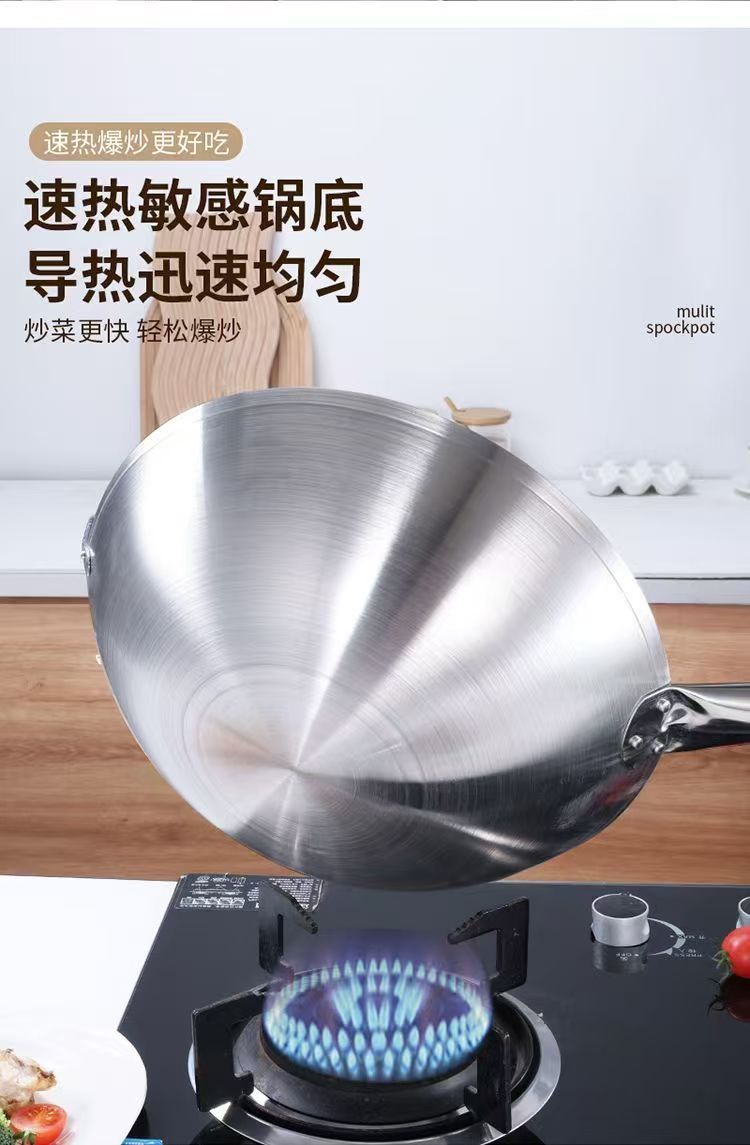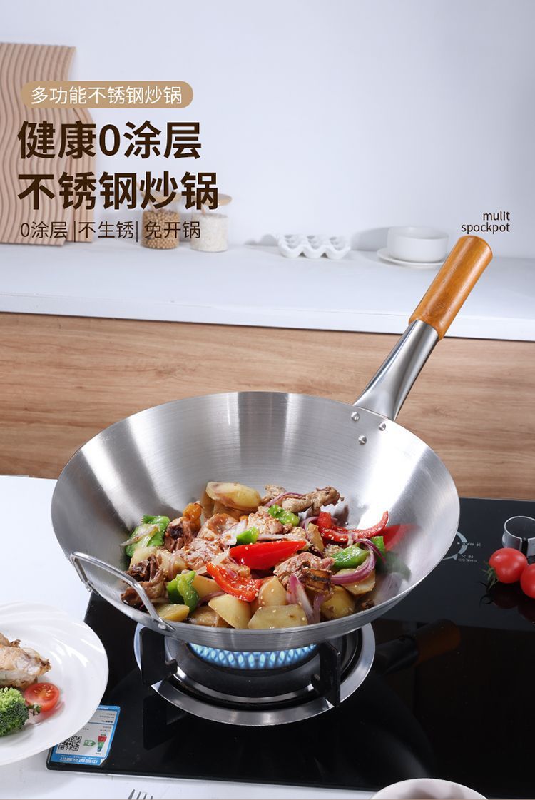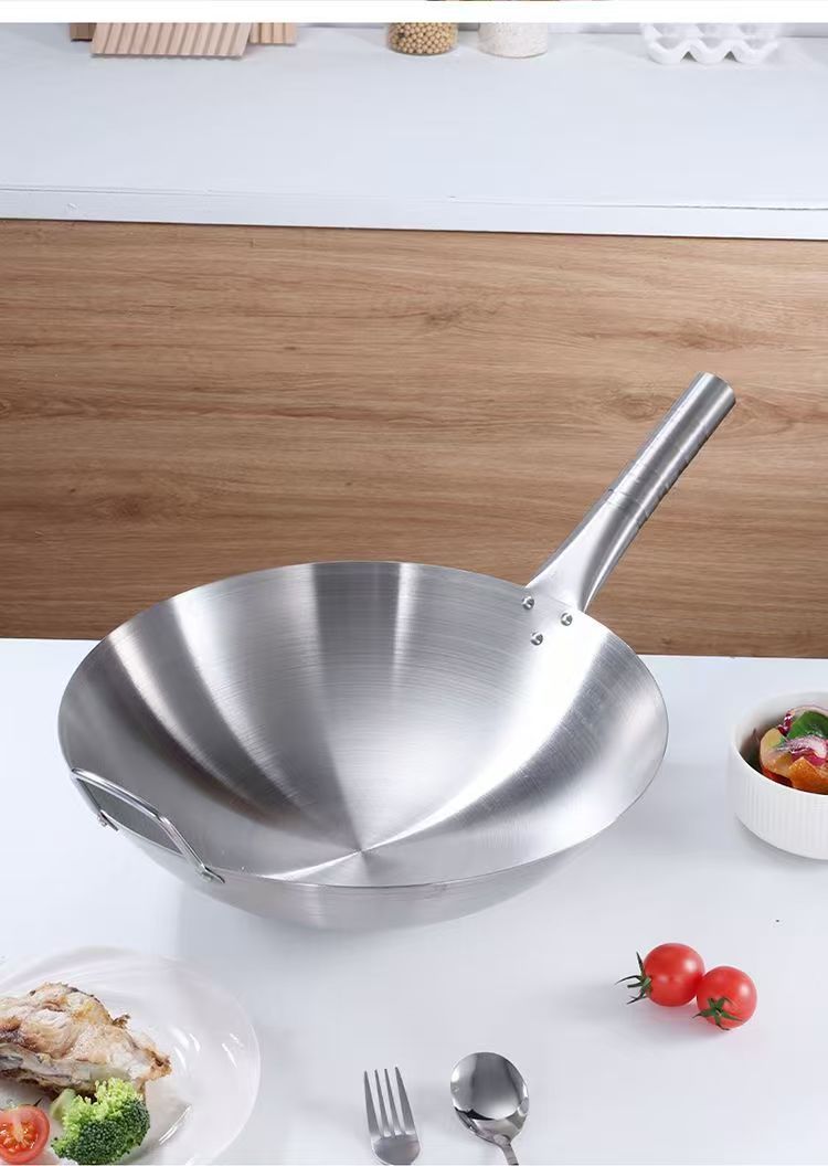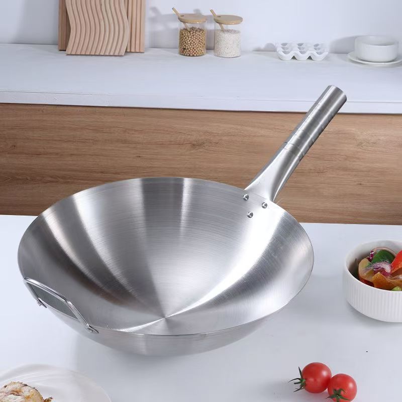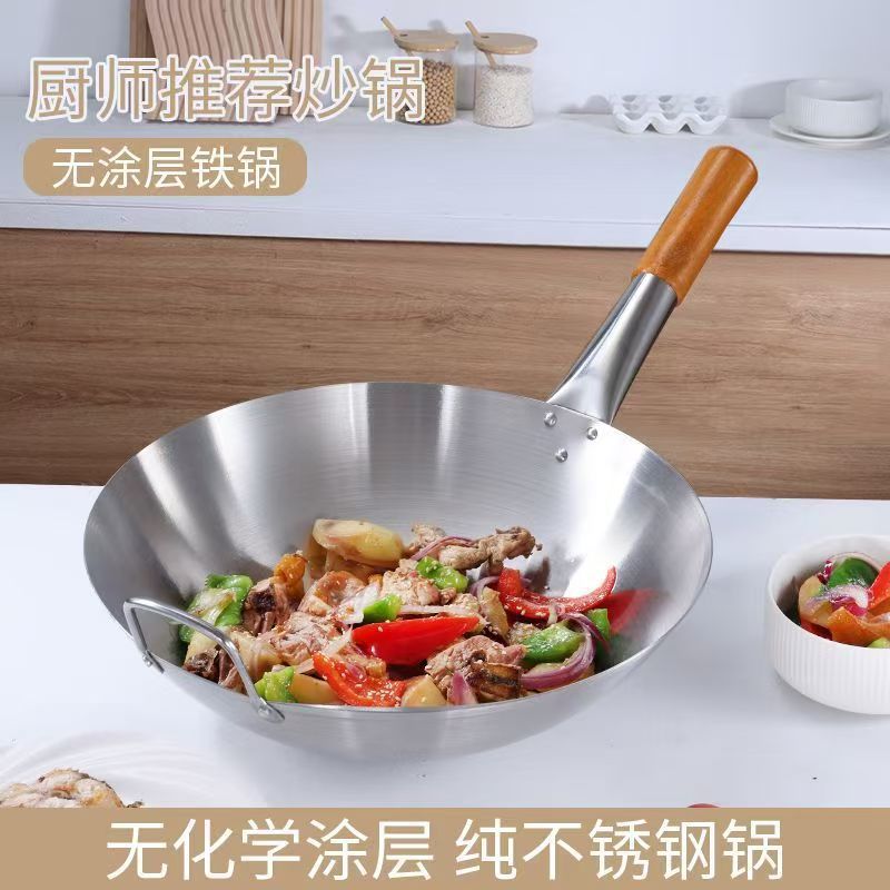 두꺼운 식품 등급 스테인레스 스틸 싱글 핸들 냄비 식품 등급 호텔 상업용 가정용 냄비 둥근 바닥 코팅되지 않은
