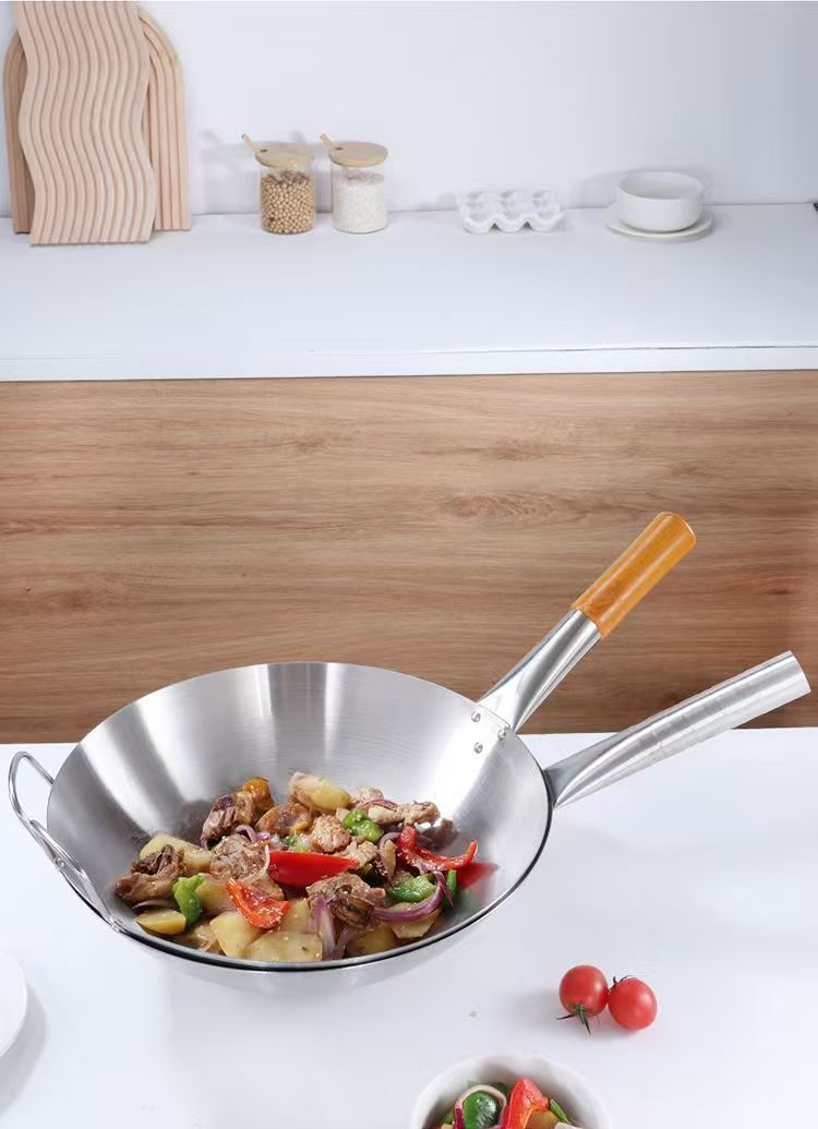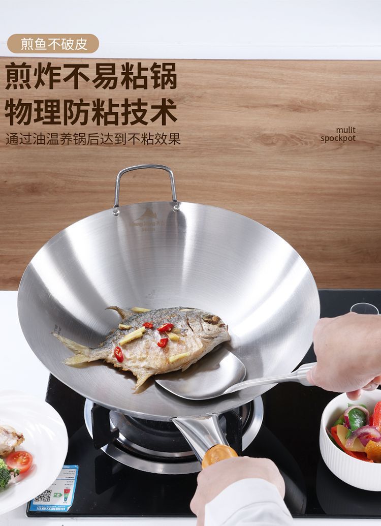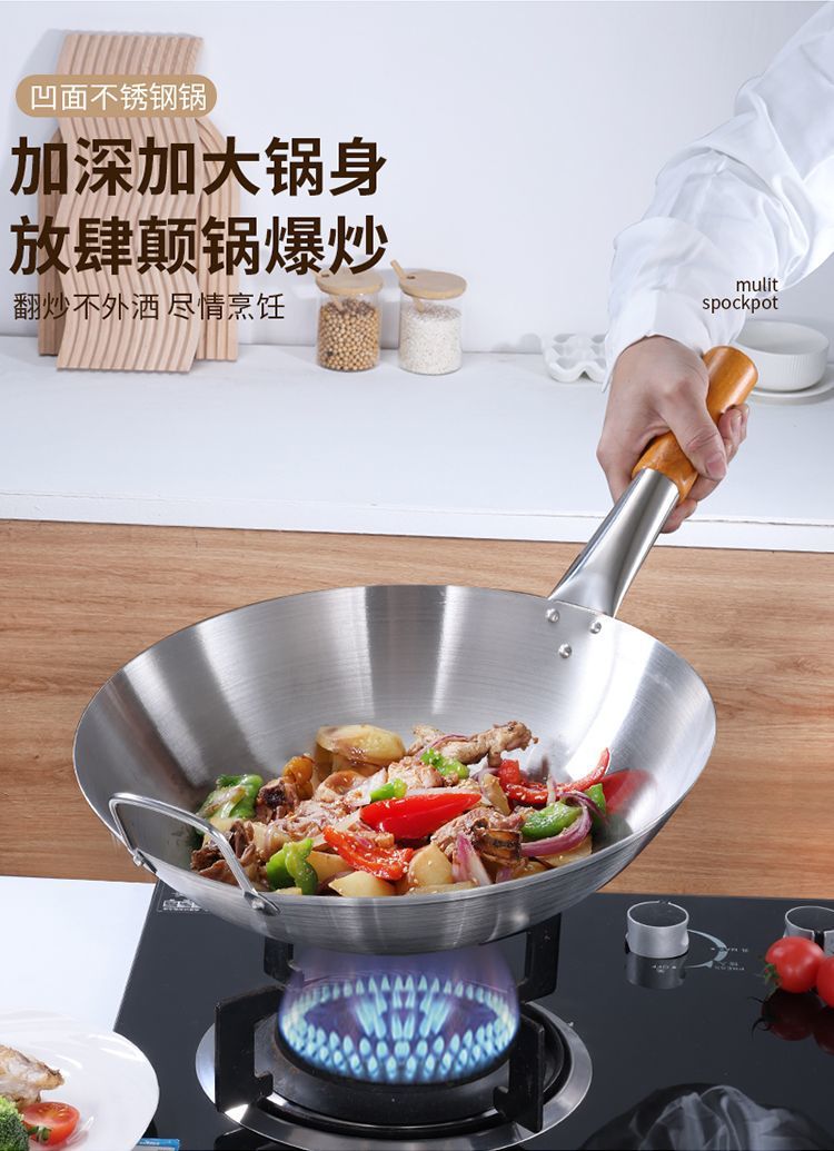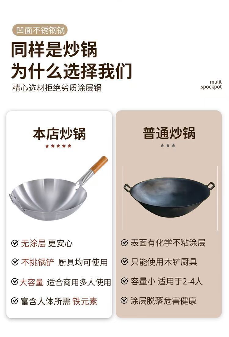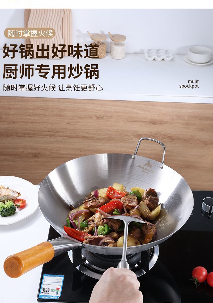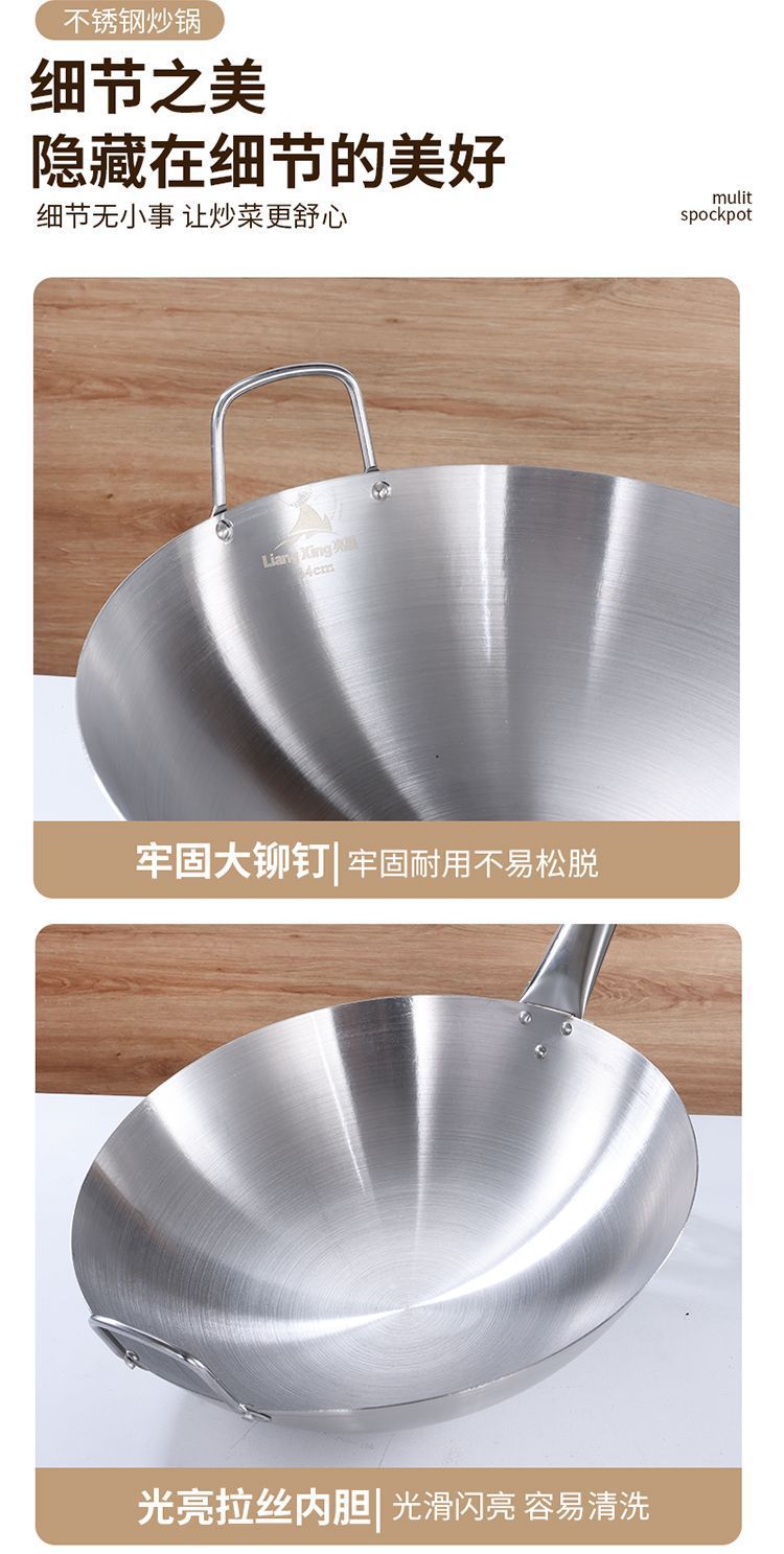 두꺼운 식품 등급 스테인레스 스틸 싱글 핸들 냄비 식품 등급 호텔 상업용 가정용 냄비 둥근 바닥 코팅되지 않은