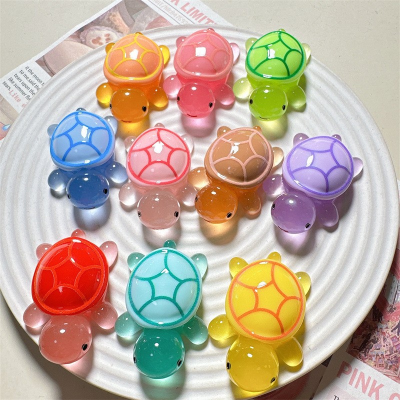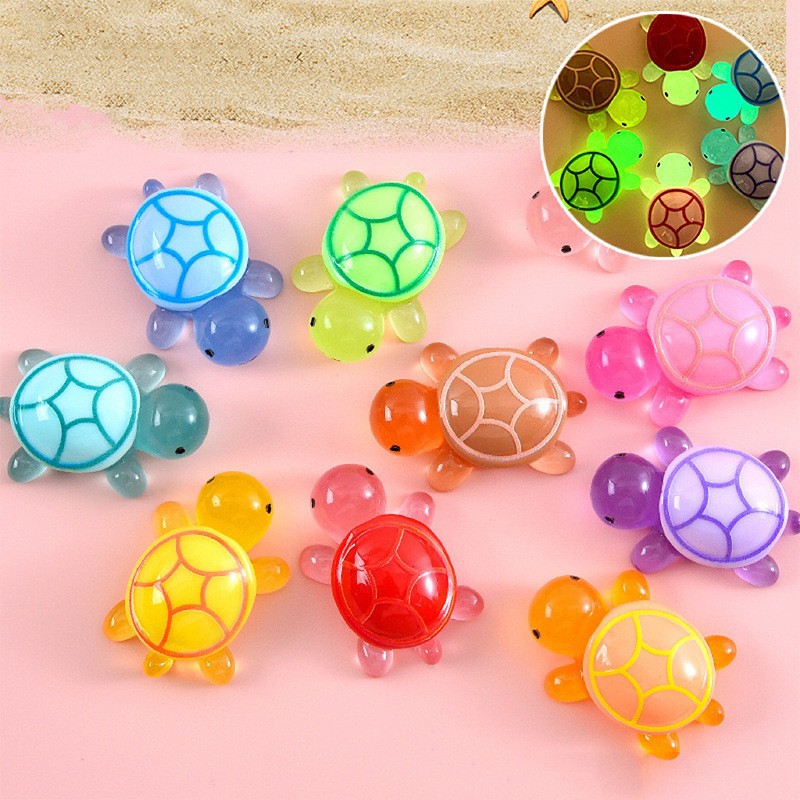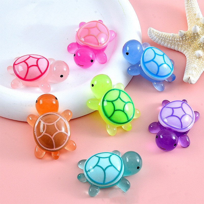 전미홍 샤오찬과 같은 스타일의 야광 거북이 레진 미니 장식품, 한 쌍의 거북이 장식품, 바다거북 장난감 선물