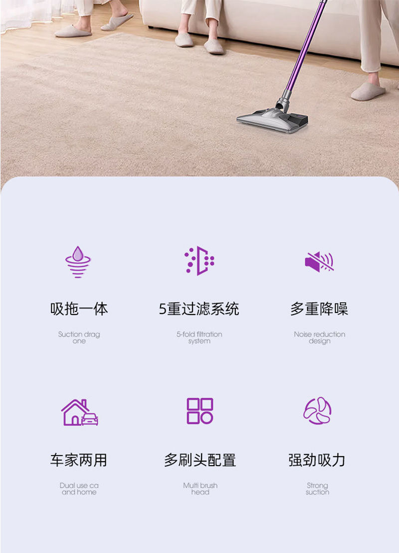 국경을 넘는 무선 차량용 가정용 진공청소기, 핸드헬드 흡입 및 걸레질 일체형, 강력한 흡입력, 고출력, 진드기 제거 및 애완동물 고양이 털 제거